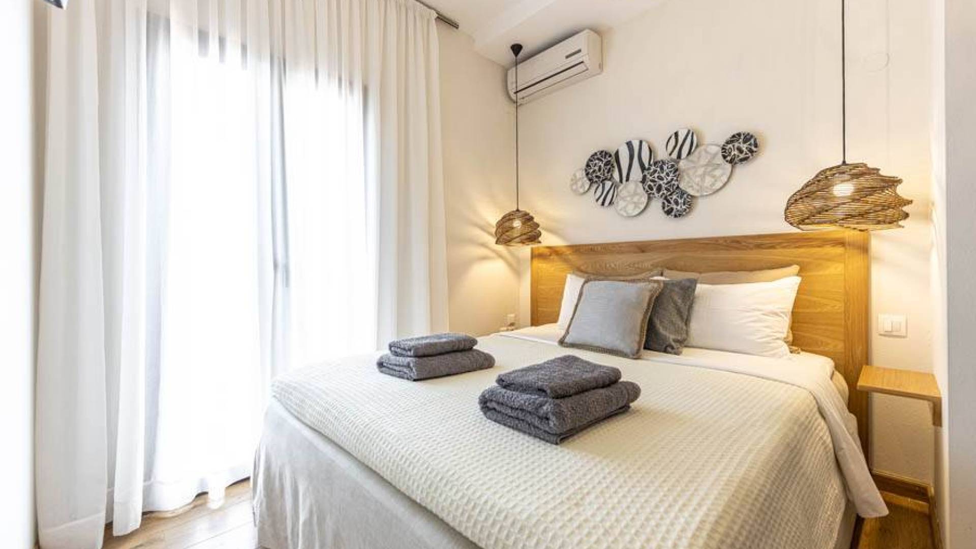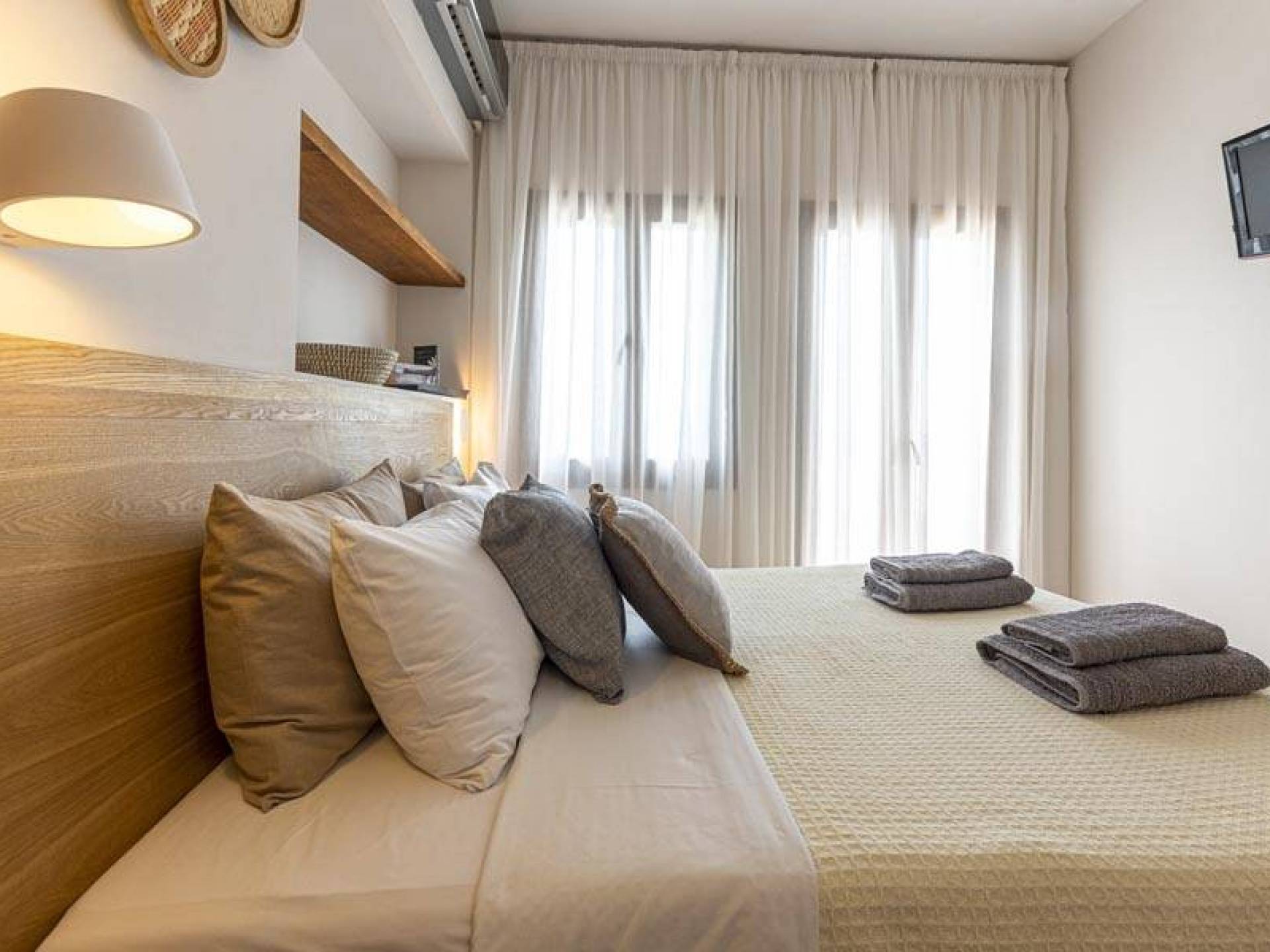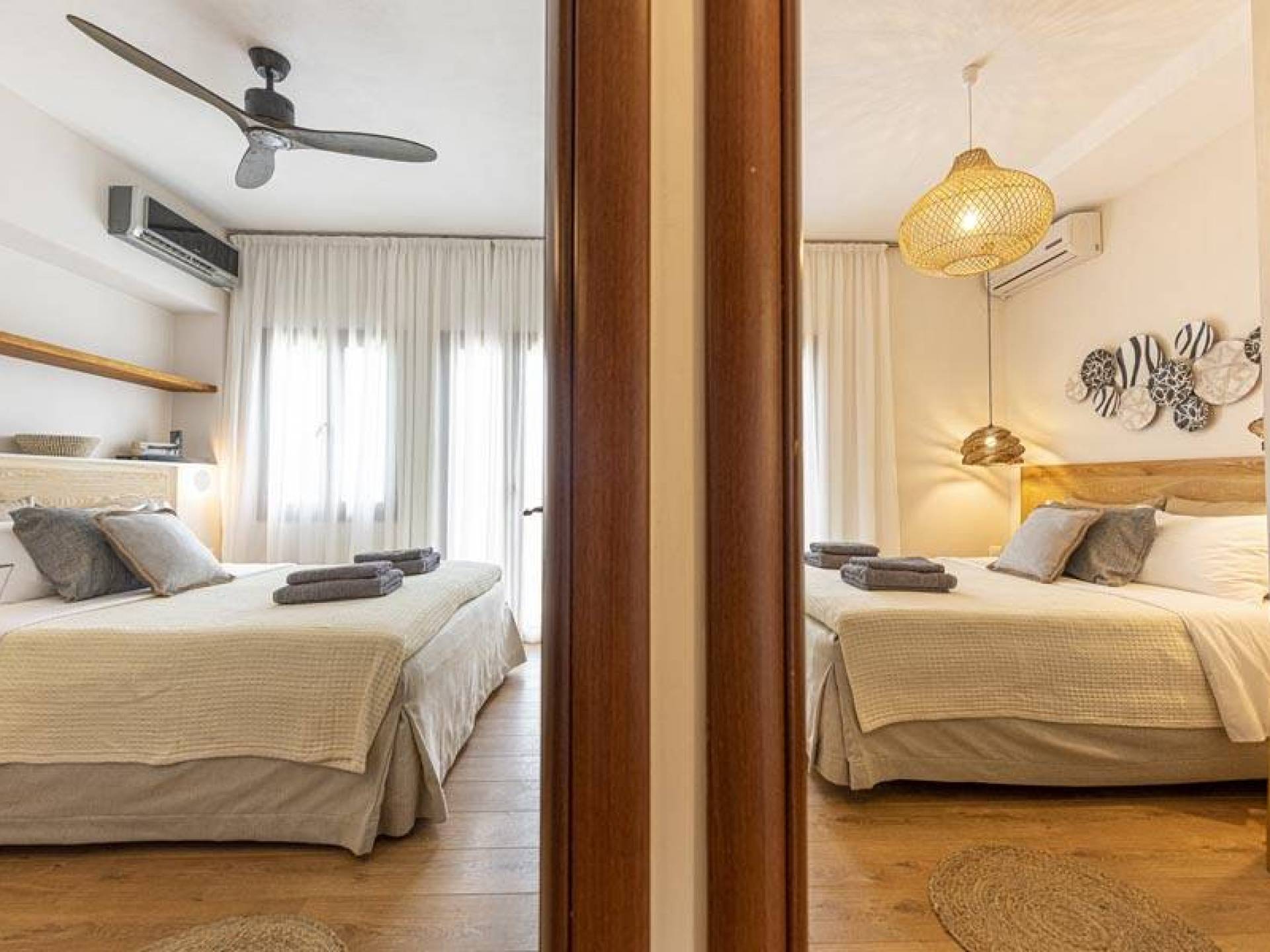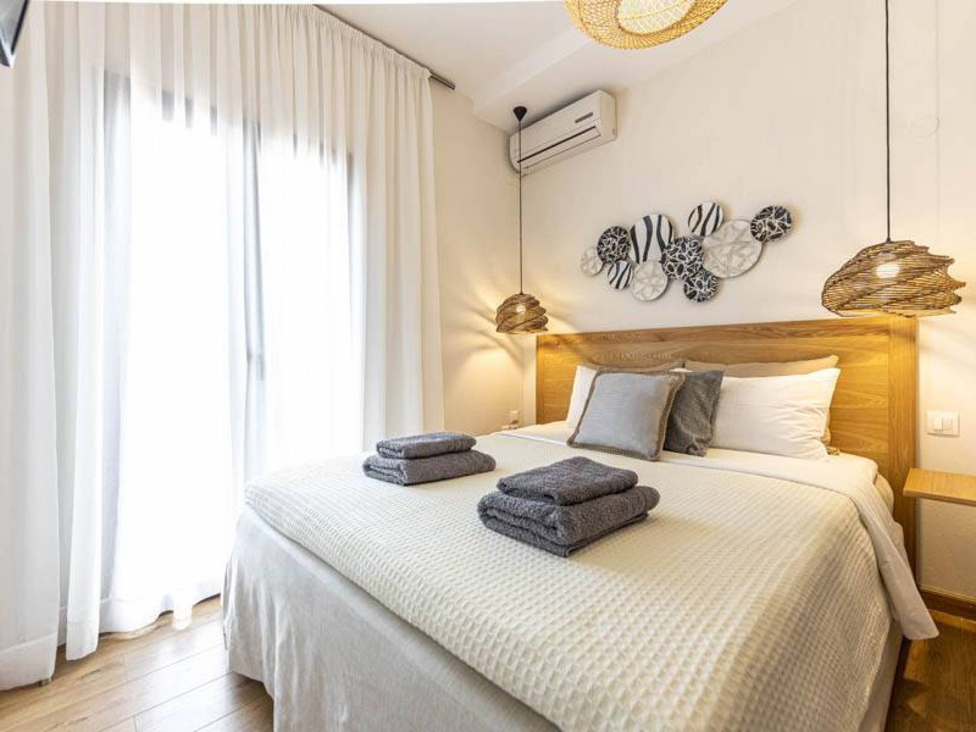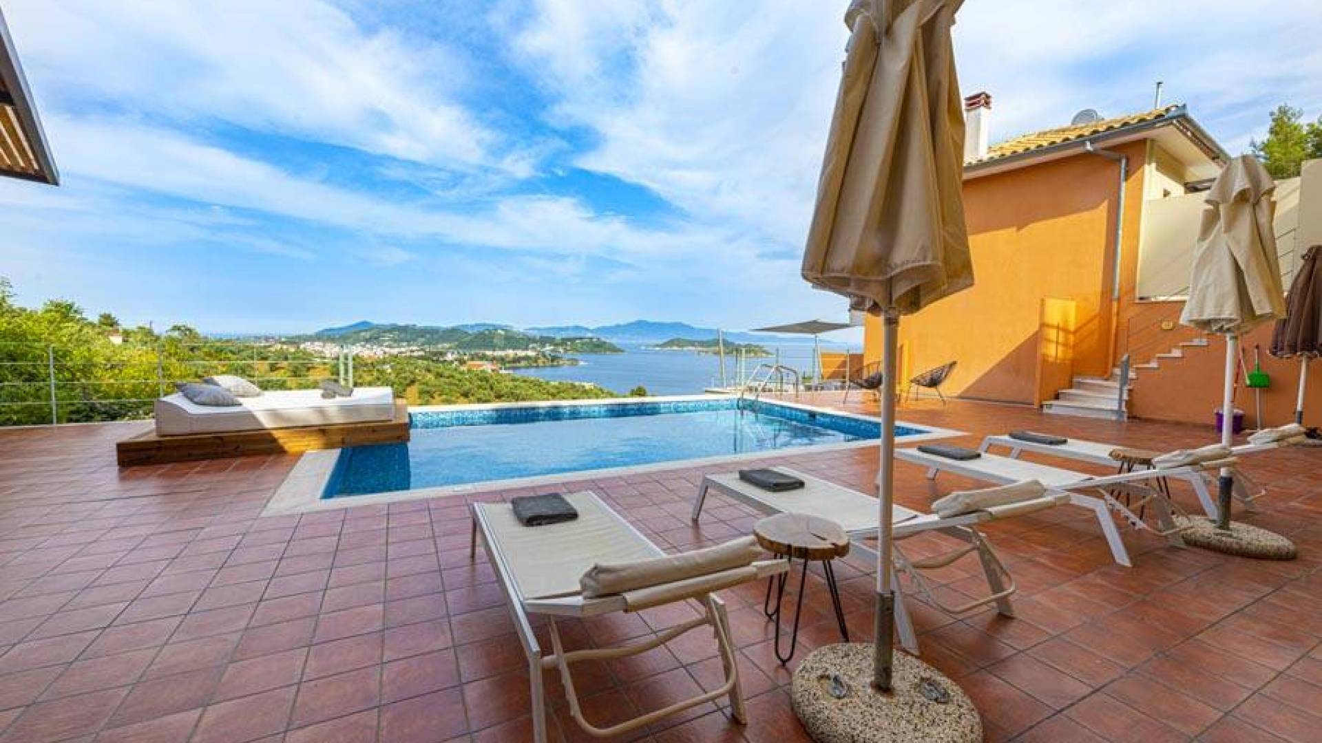 Villa Io Skiathos est une location de villa de luxe avec 2 chambres et une piscine privée. En entrant au dernier étage de la villa Io, le grand espace de 45 m² se compose de deux chambres séparées avec un lit double queen chacune avec une salle de bain entièrement équipée et un joli balcon face à la mer.