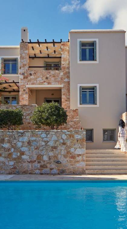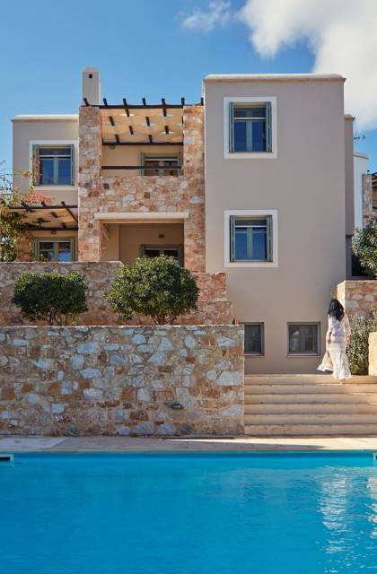 Au cœur de la mer Égée, sur l'île de Syros, dans le paisible village balnéaire de Foinikas, vous trouverez Plagia Villas. Une petite retraite, pour ceux qui recherchent le luxe, la qualité esthétique et un hébergement de haut standing. La longue plage de sable de Foinikas n'est qu'à quelques minutes à pied des villas. Protégé des vents du nord et avec une variété de tavernes le long de la promenade, c'est l'endroit idéal si vous souhaitez passer une journée parfaite à la plage. Vous trouverez des parasols sur la plage, cependant, il n'y a pas de transats disponibles.