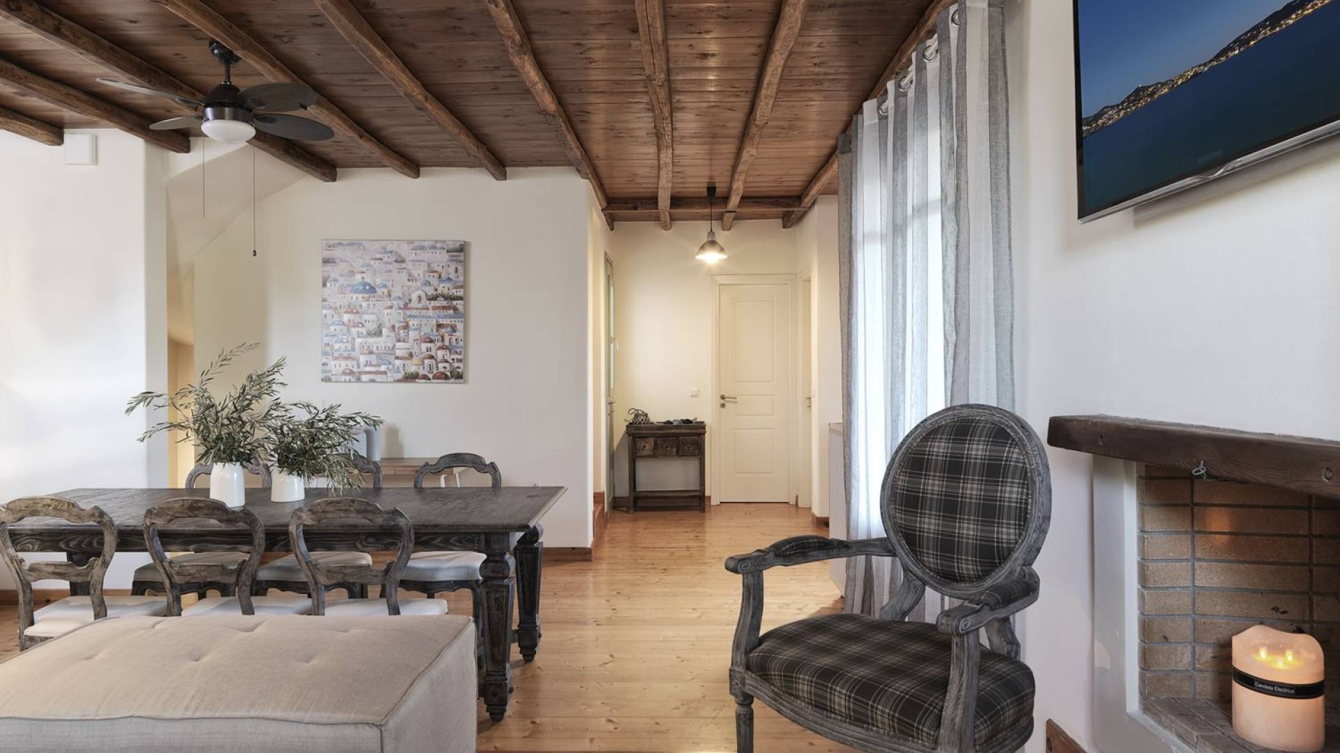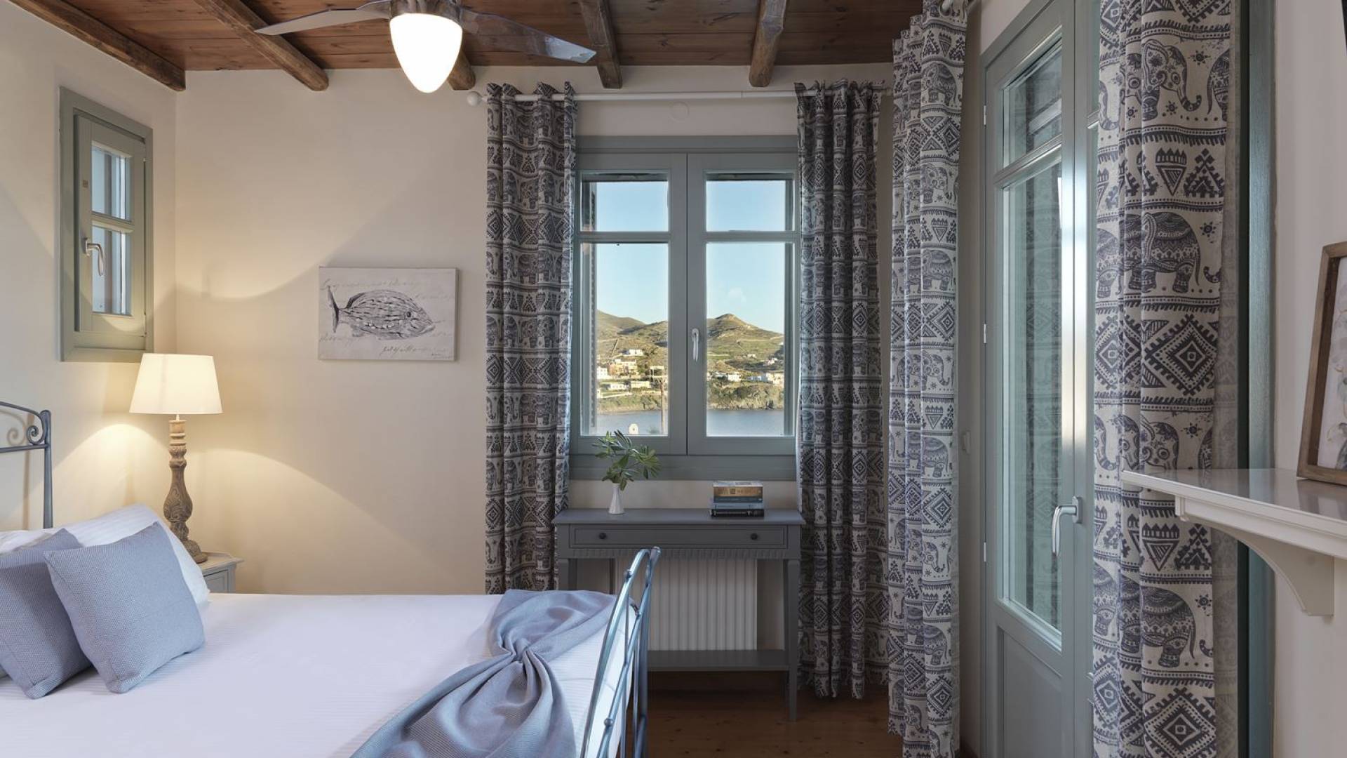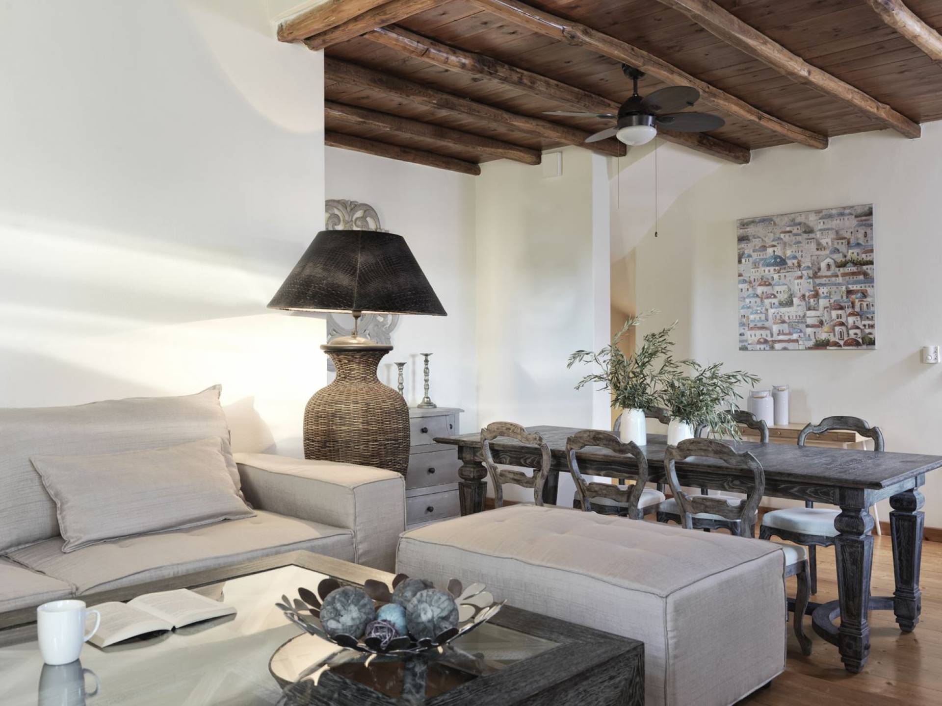 1er étage Comprend 3 chambres avec balcon offrant des vues panoramiques spectaculaires et air conditionné. La chambre principale dispose d'un lit queen-size, d'un placard, d'un plafond à poutres apparentes et d'une salle de bains privative. Les deux autres chambres sont desservies par une salle de bain commune entièrement équipée. La deuxième chambre dispose d'un lit queen-size et la troisième est équipée d'un lit simple. Les deux chambres comprennent des ventilateurs de plafond et toute la villa est équipée de la climatisation.