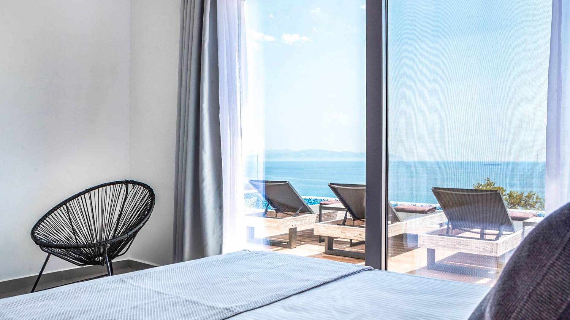 Cette luxueuse villa de 3 chambres est conçue pour offrir aux clients la tranquillité, à l'intérieur comme à l'extérieur. Il offre une vue imprenable sur la mer depuis le confort de sa terrasse avec piscine privée, tandis qu'à l'intérieur, l'ambiance entièrement climatisée des lignes épurées blanchies à la chaux et des motifs éclectiques est absolument apaisante.