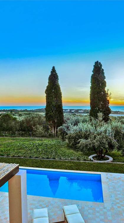 Les villas Elaia sont deux villas spacieuses situées à Céphalonie Villa Agrilia et Villa Koroni, chacune avec de superbes jardins et des couchers de soleil colorés. Ces villas de Céphalonie sont également dotées de superbes perspectives et de la proximité de la plage de Spasmata. Au milieu du jardin au-dessus de la piscine, une terrasse spacieuse avec des chaises longues confortables promet un bronzage chocolaté parfait. Elaia Villas est une excellente propriété pour les clients qui recherchent une maison élégante loin de chez eux avec des vues impressionnantes et des intérieurs inspirants. Quiconque cherche à louer une villa à Céphalonie et a de grandes attentes appréciera certainement l'expérience à Elaia Villas.