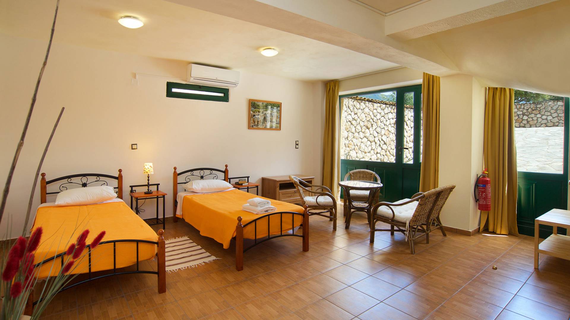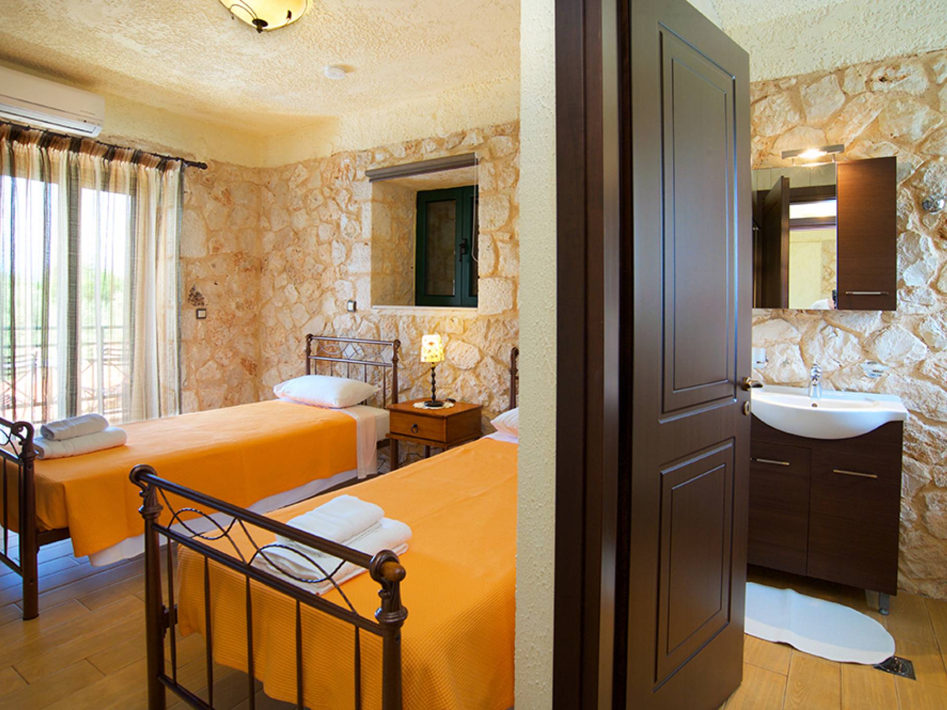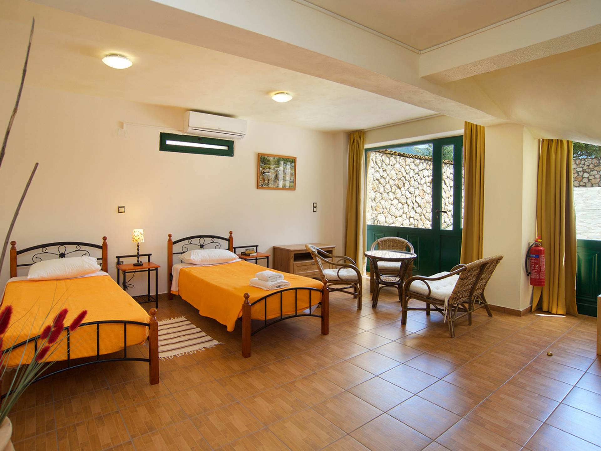 Les portes-fenêtres donnent sur la terrasse et la piscine. A l'étage, vous trouverez deux chambres, une double et une à deux lits avec salle de bain attenante. Les balcons donnant sur la chambre donnent sur la piscine et offrent une vue sur les montagnes. Le rez-de-chaussée inférieur dispose d'une chambre/studio à lits jumeaux qui bénéficie de son propre coin salon et est idéal pour les enfants plus âgés qui voudraient un peu plus d'indépendance mais qui sont toujours dans la maison principale.