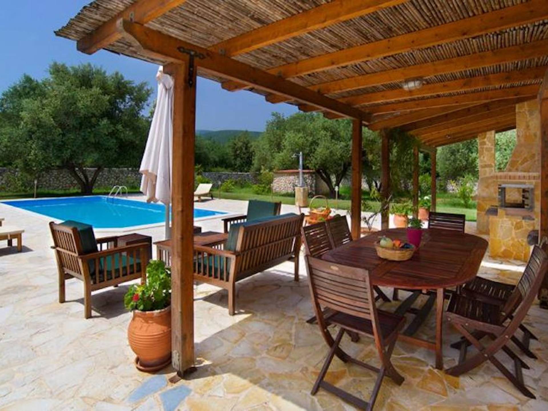 L'oliveraie autour des maisons est remplie de beaux arbres produisant les olives, qui sont utilisées pour fabriquer la délicieuse huile d'olive extra-vierge biologique de l'Olive Garden Villa. Chaque année en novembre, les olives sont cueillies à la main et acheminées vers un pressoir à olives traditionnel en pierre à Troianata, Céphalonie.