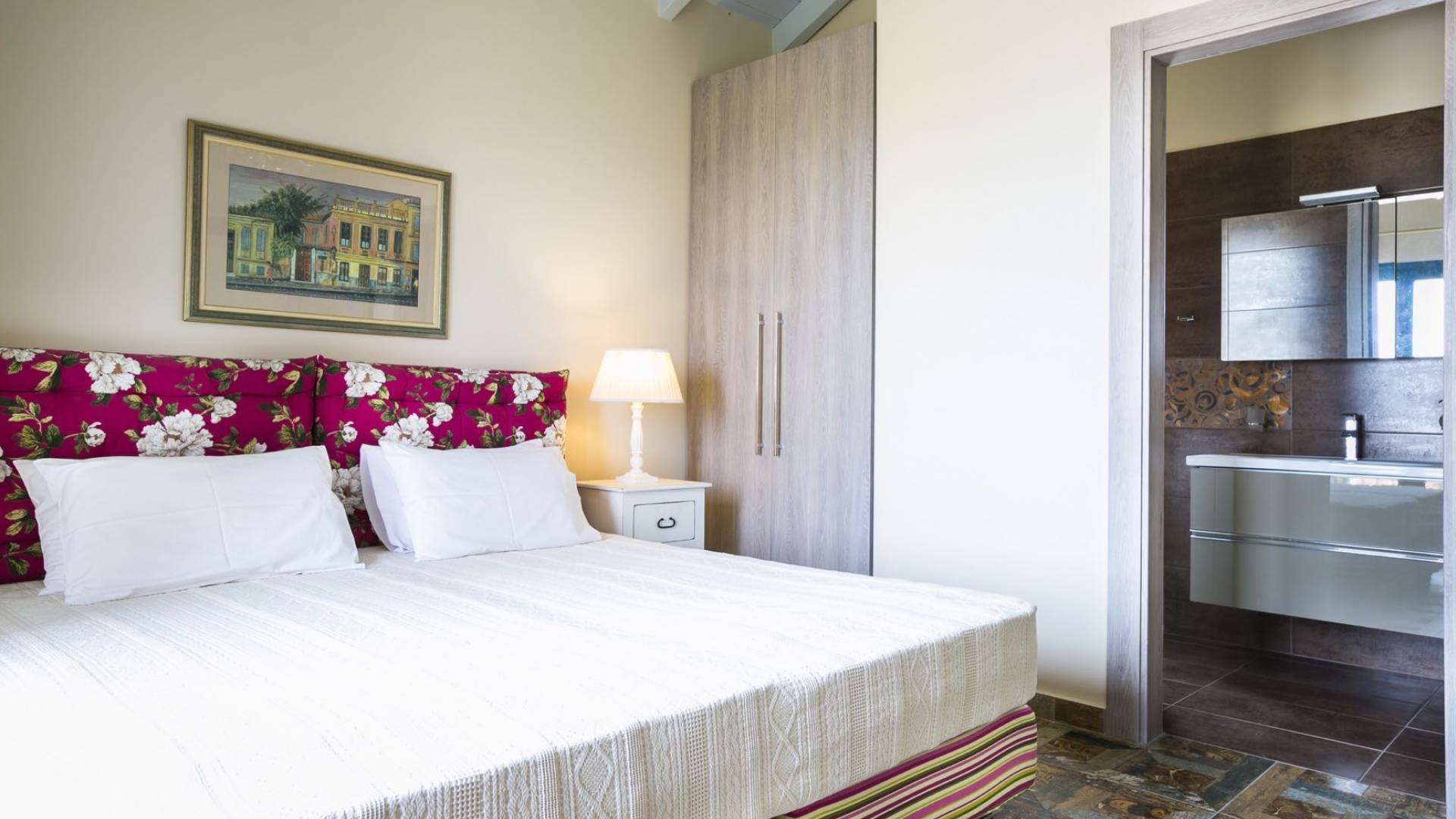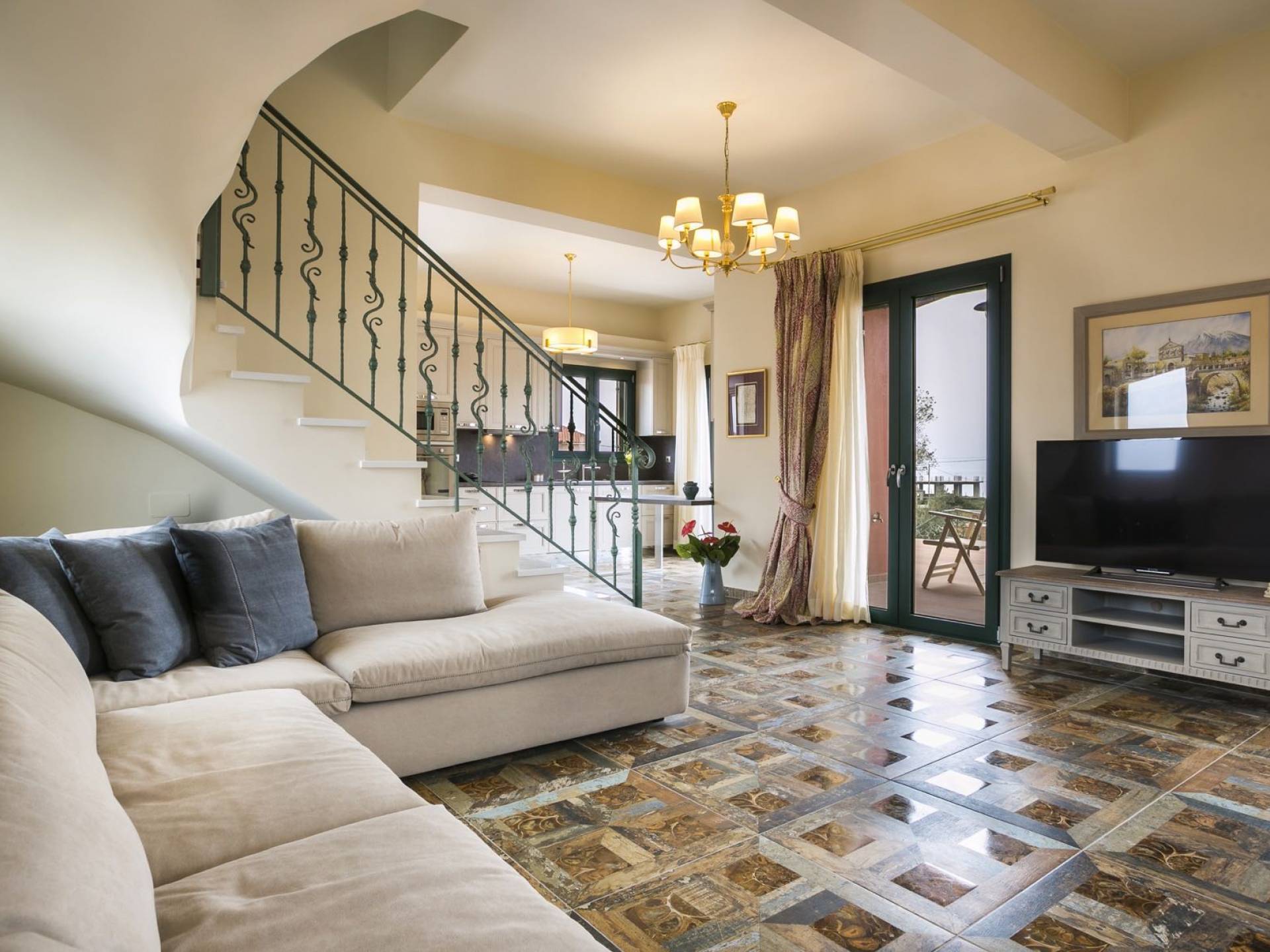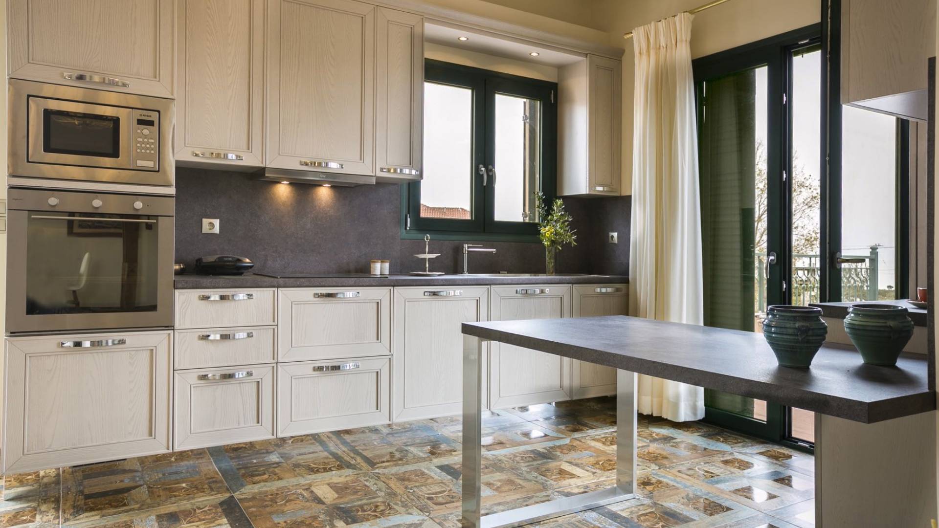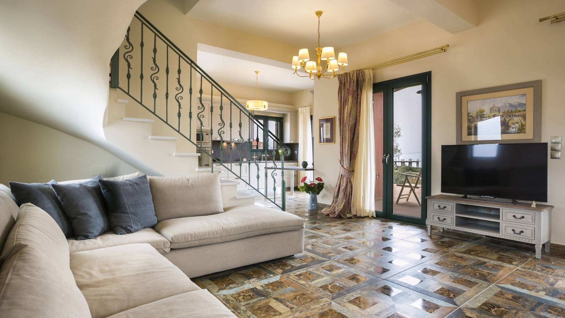 Pleiades Villa est conçue dans un style authentique de Céphalonie, avec des intérieurs en bois riche, en pierre, en draps impeccables et une combinaison d'imprimés et de couleurs terreux et audacieux. De beaux meubles ornent la salle à manger et la cuisine, tandis que les carreaux, les peintures et les tissus d'ameublement ajoutent des touches de couleur florale. Dans le salon, vous pourrez vous détendre sur un immense canapé, et les chefs amateurs et professionnels seront attirés par les appareils haut de gamme de la cuisine gastronomique.