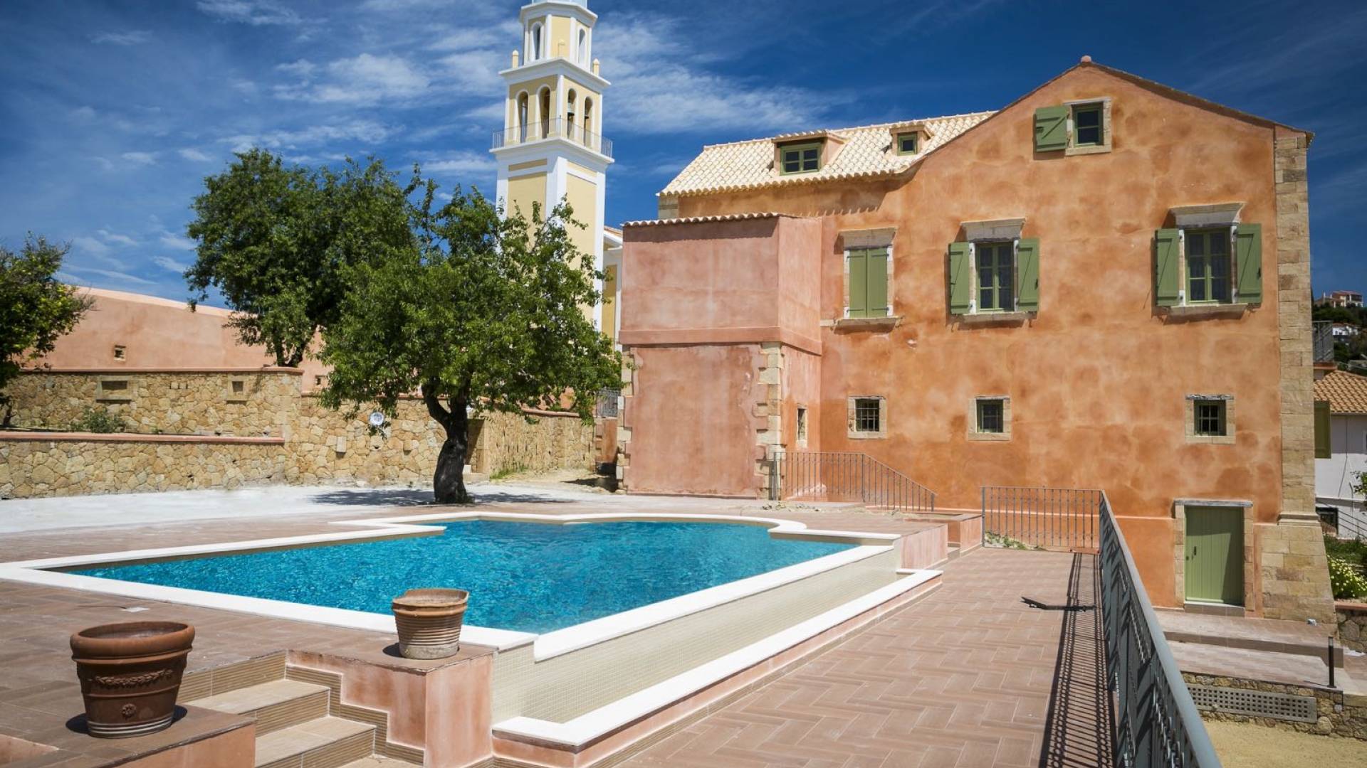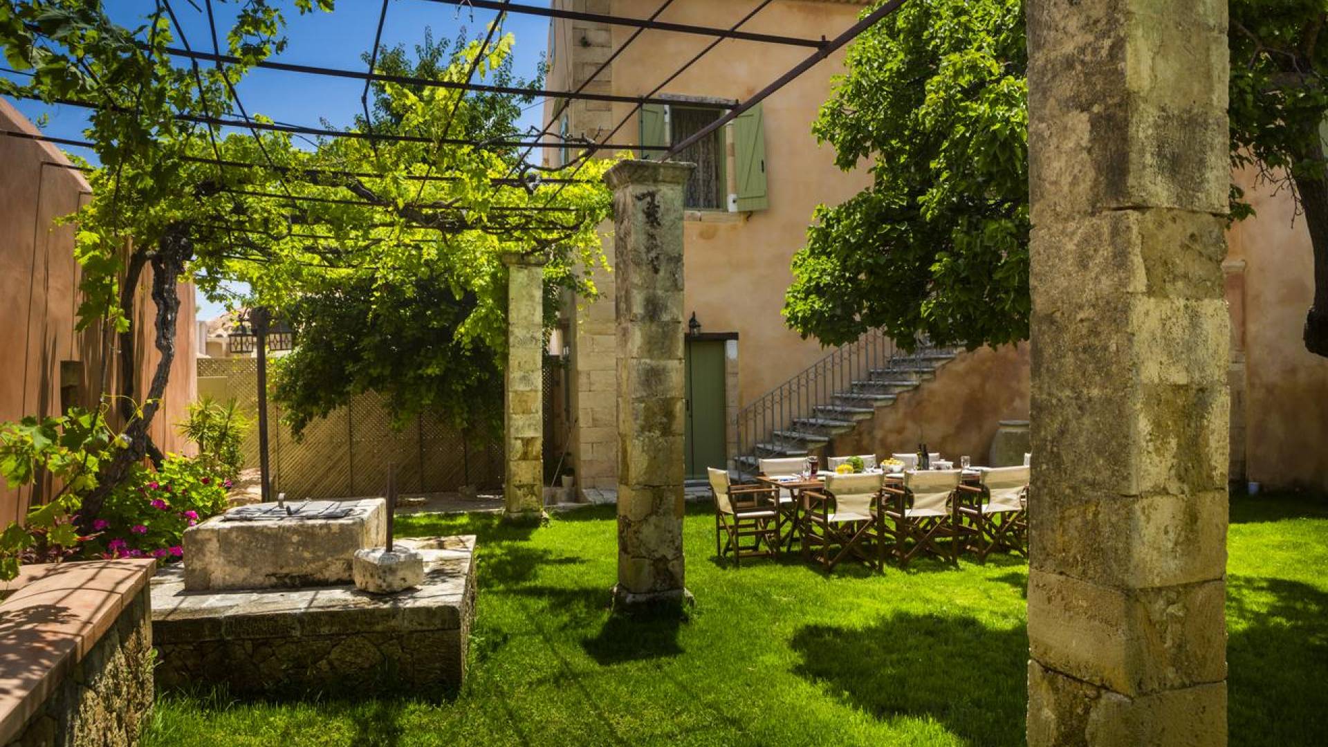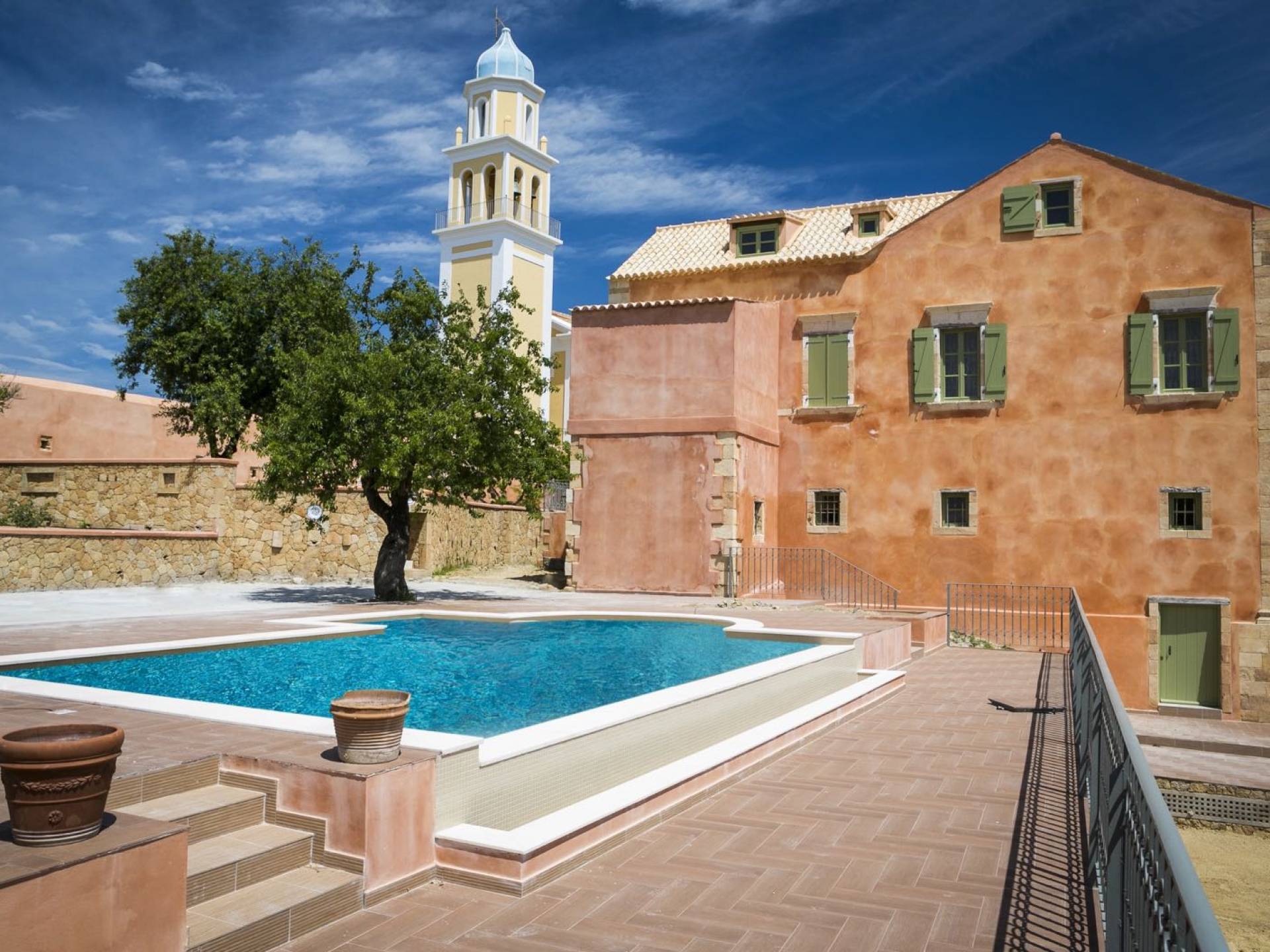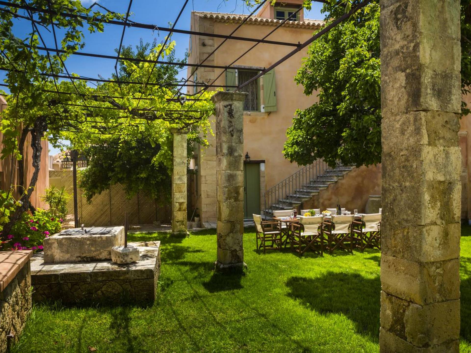 Dans le respect absolu du caractère du bâtiment, et dans le respect de toutes les exigences modernes, le domaine a été reconstruit à la fois intérieurement et extérieurement et est prêt à vous accueillir pour vivre une expérience unique. Villa Casa Maravillosa Kefalonia a deux étages avec un loft et un jardin entouré d'un jardin luxuriant et coloré de deux acres.
