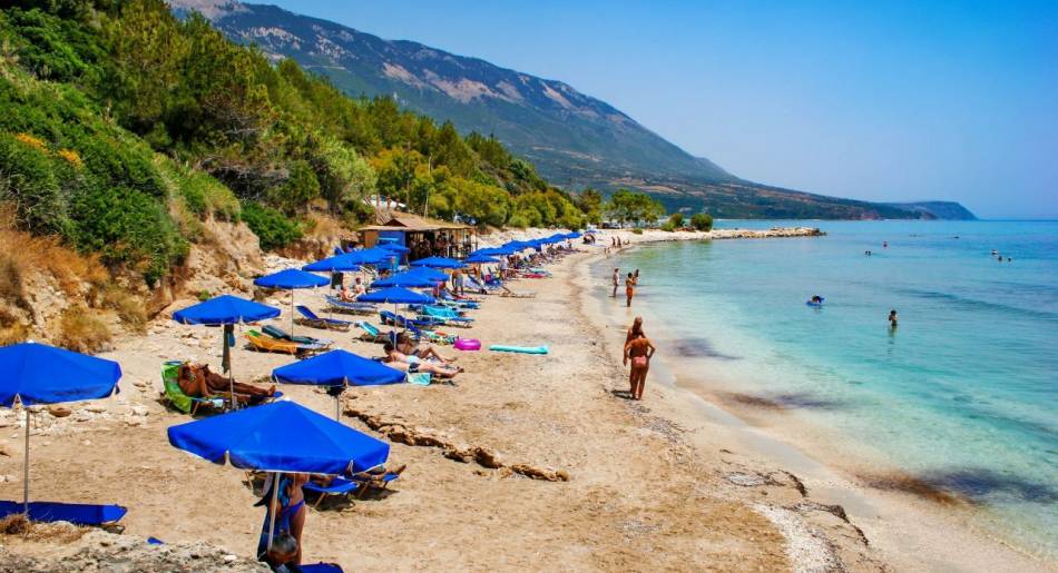 Trapezaki est une belle plage située à 15 km au sud-est d'Argostoli, capitale de Céphalonie. La plage est vierge et son paysage majestueux enchante tous les visiteurs. À proximité de Trapezaki, vous trouverez des équipements de base comme une supérette et une taverne. La plage de Trapezaki comprend des endroits pour la détente ainsi qu'une atmosphère plus animée dans certaines parties. La longue plage de sable est très appréciée pour…Trapezaki est une belle plage située à 15 km au sud-est d'Argostoli, capitale de Céphalonie. La plage est vierge et son paysage majestueux enchante tous les visiteurs. À proximité de Trapezaki, vous trouverez des équipements de base comme une supérette et une taverne. La plage de Trapezaki comprend des endroits pour la détente ainsi qu'une atmosphère plus animée dans certaines parties. La longue plage de sable est très appréciée pour…
