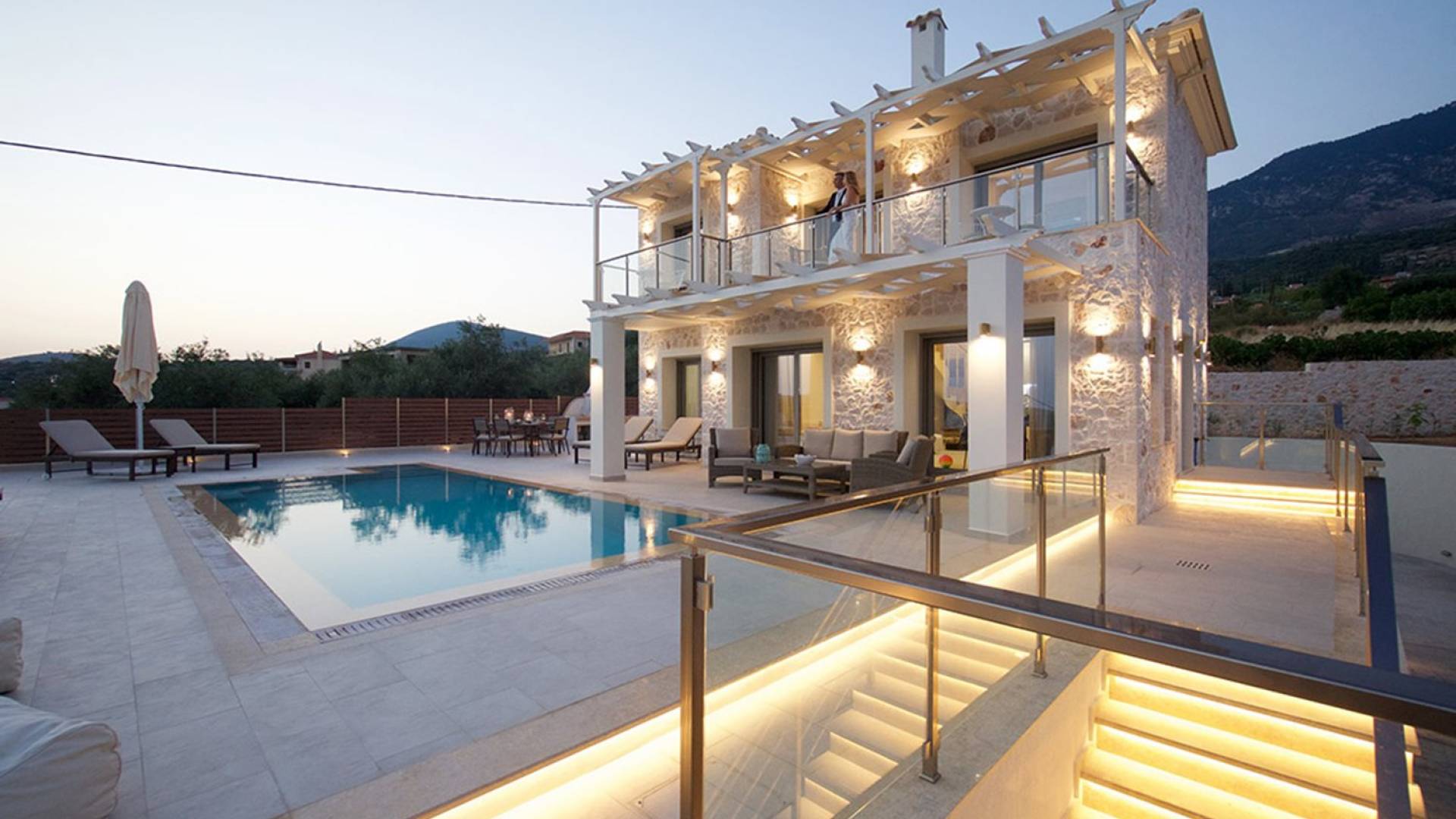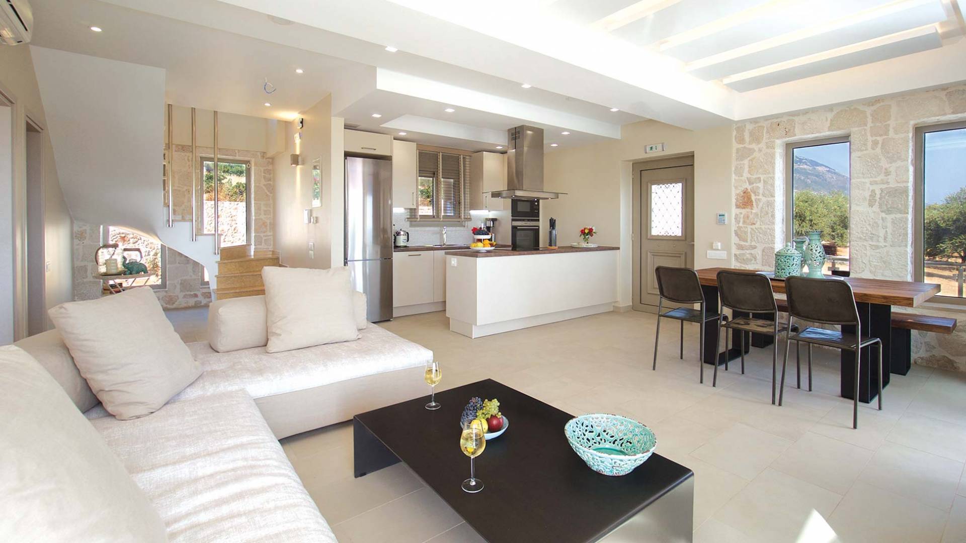 Villa Ion à Pangea Villas Kefalonia est une location de villa de luxe avec 3 chambres et une piscine privée. La magnifique Villa Ion est idéalement située loin des distractions et est conçue selon les normes les plus élevées de la vie moderne avec des commodités ultramodernes, des services d'accueil exceptionnels et des panoramas impressionnants sur les eaux cristallines de la baie de Trapezaki. Cette villa de trois chambres sur deux étages est une merveilleuse retraite avec une grande piscine privée, un espace extérieur isolé avec un barbecue et une terrasse ensoleillée entourée d'oliviers et de vignes luxuriantes et un parking privé. Les espaces extérieurs et les jardins accueillants, associés à l'intérieur élégant de la villa, exceptionnellement décorés avec des matériaux sélectionnés et des équipements de villégiature de luxe 5 étoiles, créent le cadre idéal pour des vacances inoubliables.