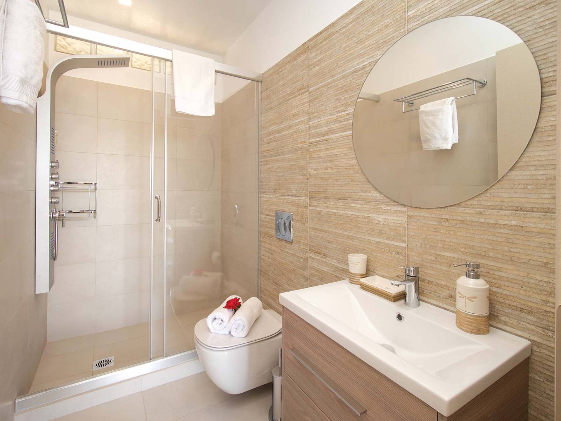Le rez-de-chaussée comprend un grand salon ouvert sur une salle à manger et une cuisine équipée selon les normes les plus élevées. Il y a une grande salle de bain avec une machine à laver et une chambre avec un lit queen au rez-de-chaussée. Dehors, il y a une belle piscine cristalline avec transats et parasols où vous pourrez vous détendre, profiter du soleil et du magnifique environnement. Le barbecue à côté d'une grande table à manger et le confortable coin salon à l'ombre d'une pergola sont idéaux pour les repas en plein air ou simplement pour se détendre et profiter du coucher de soleil.