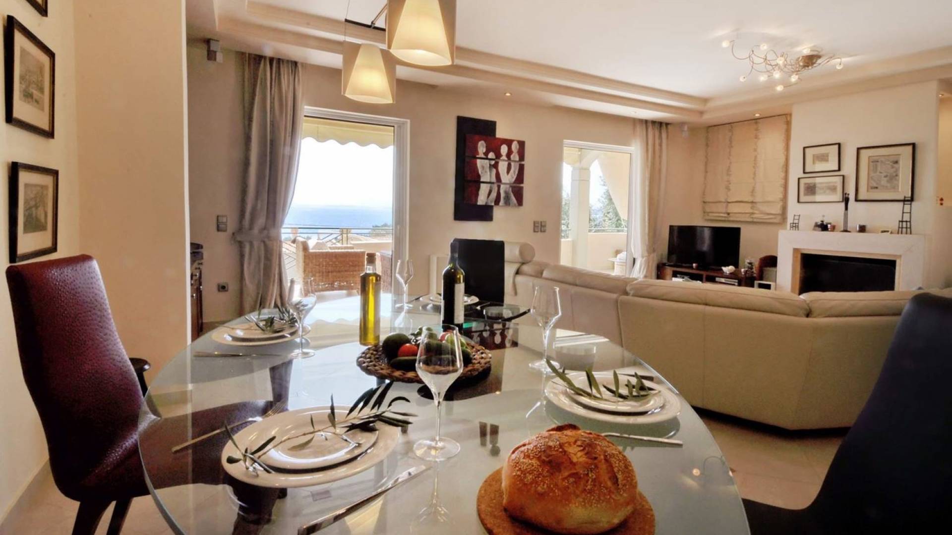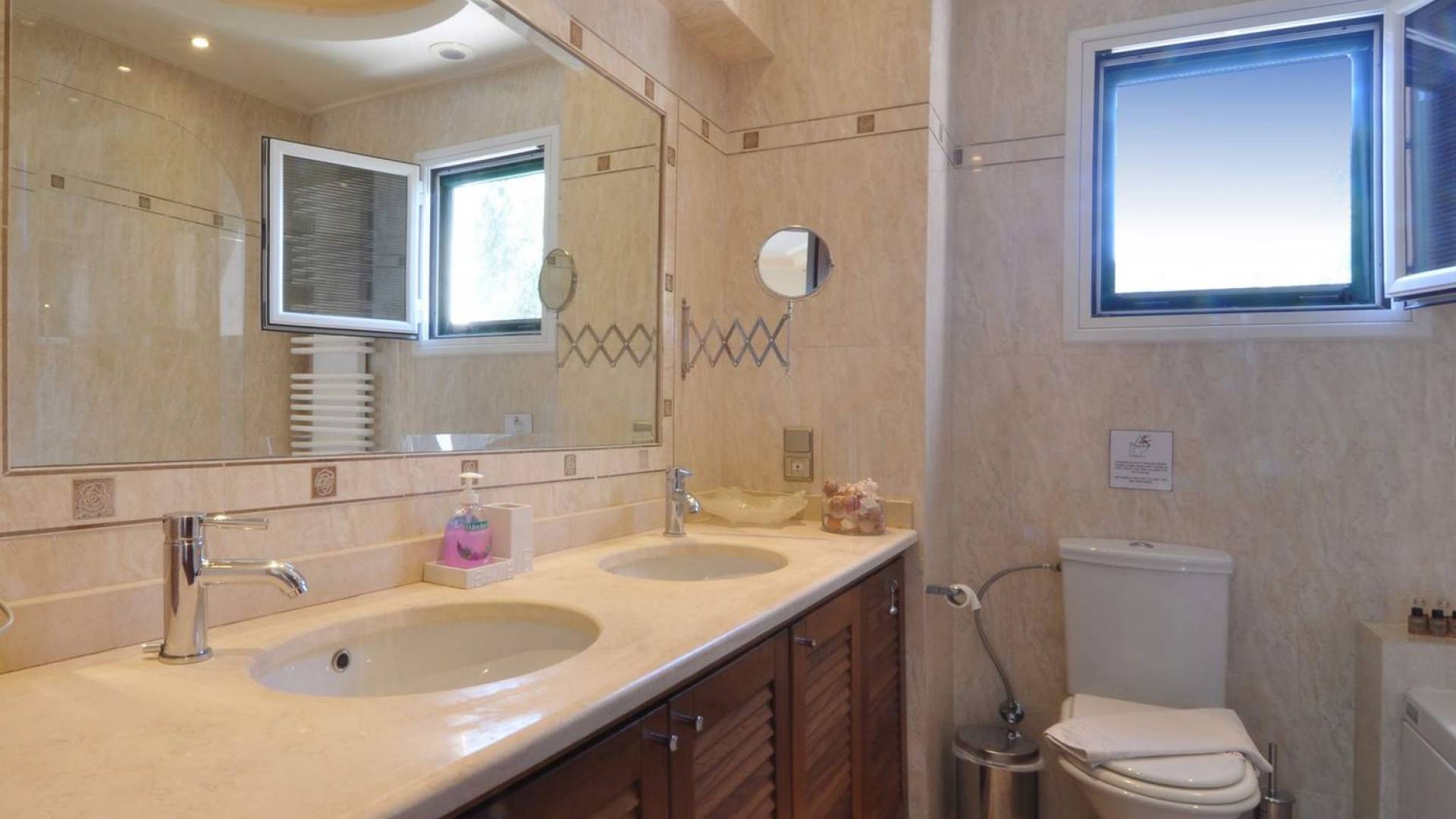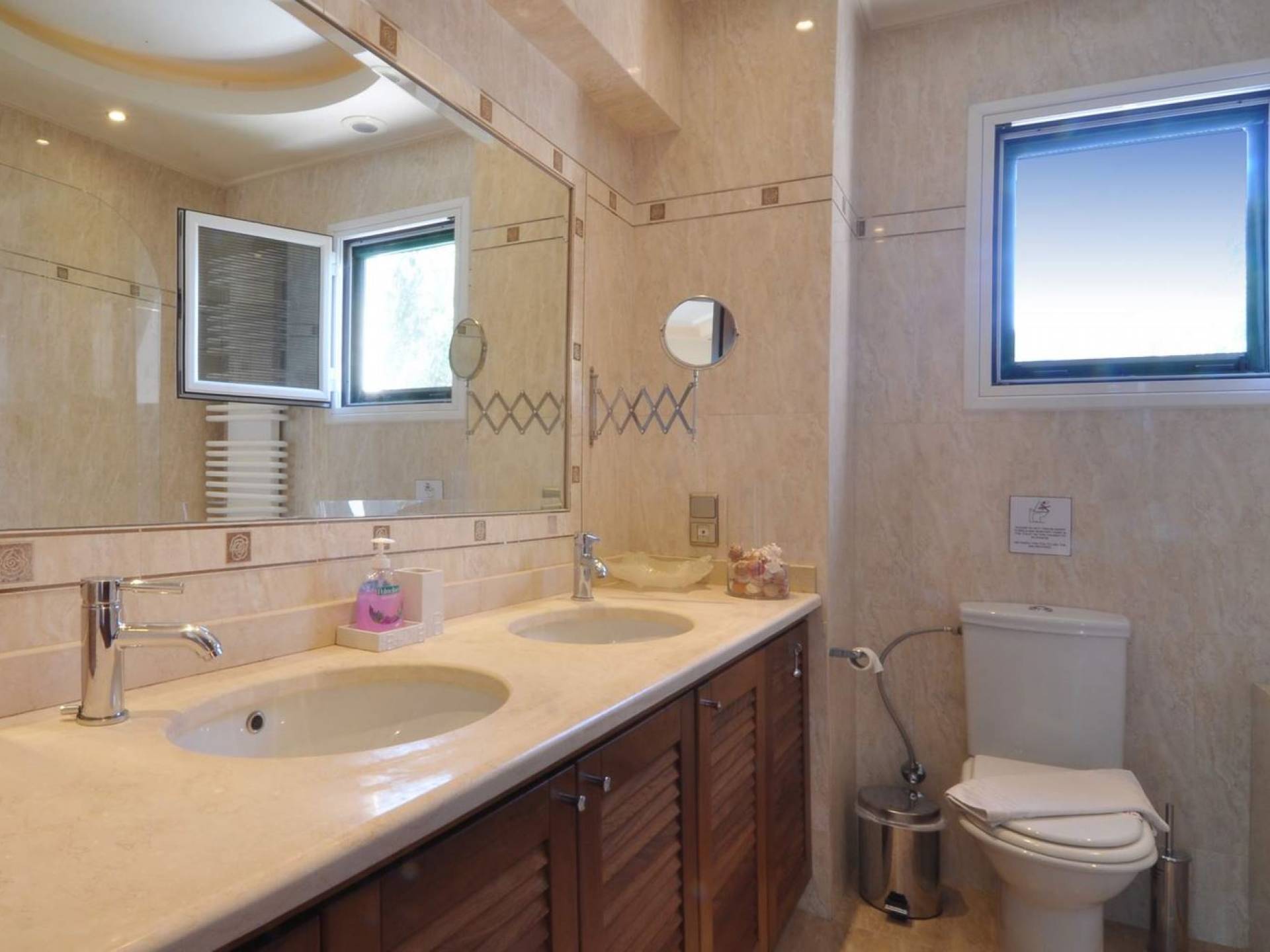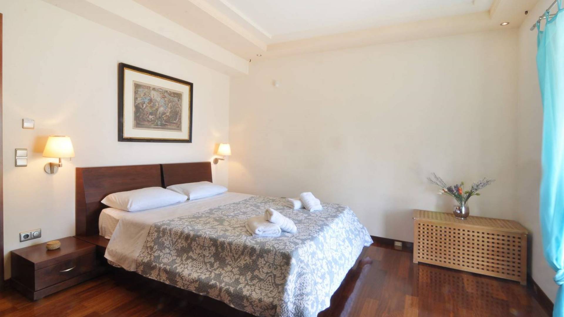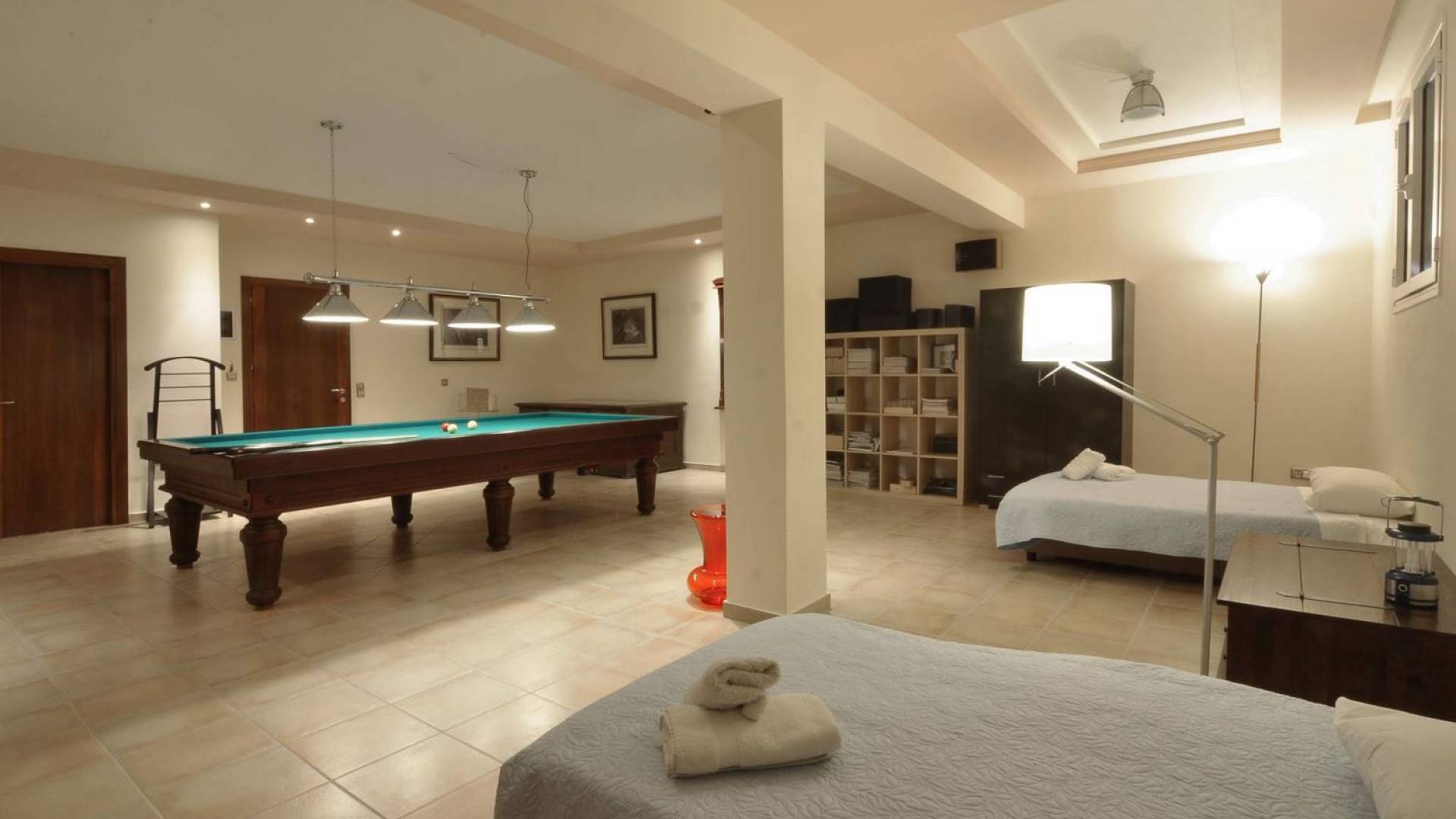 La chambre principale dispose d'un lit double king-size et d'une salle de bains privative (avec une baignoire spa jacuzzi et une douche séparée avec fonction massage/douche à jets), surplombant la mer depuis son balcon privé. Une chambre à deux lits avec une salle de douche attenante, idéale pour les enfants, elle est adjacente à la chambre principale. En passant la nuit à la Villa Iris, vous aurez la chance de dormir au son apaisant des vagues de la mer, en vivant une expérience inoubliable de détente ultime !