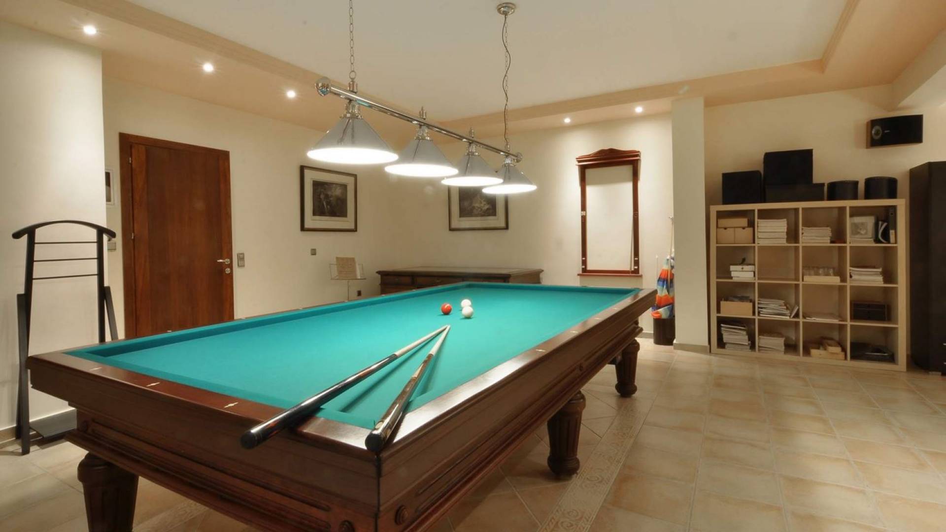 Entraînez-vous au billard dans la salle de jeux spacieuse à la table de billard de type carambole ! Une buanderie supplémentaire est située au niveau inférieur, comprenant une machine à laver avec lessive et adoucissant, planche et fer à repasser. Il y a aussi une salle de douche supplémentaire.