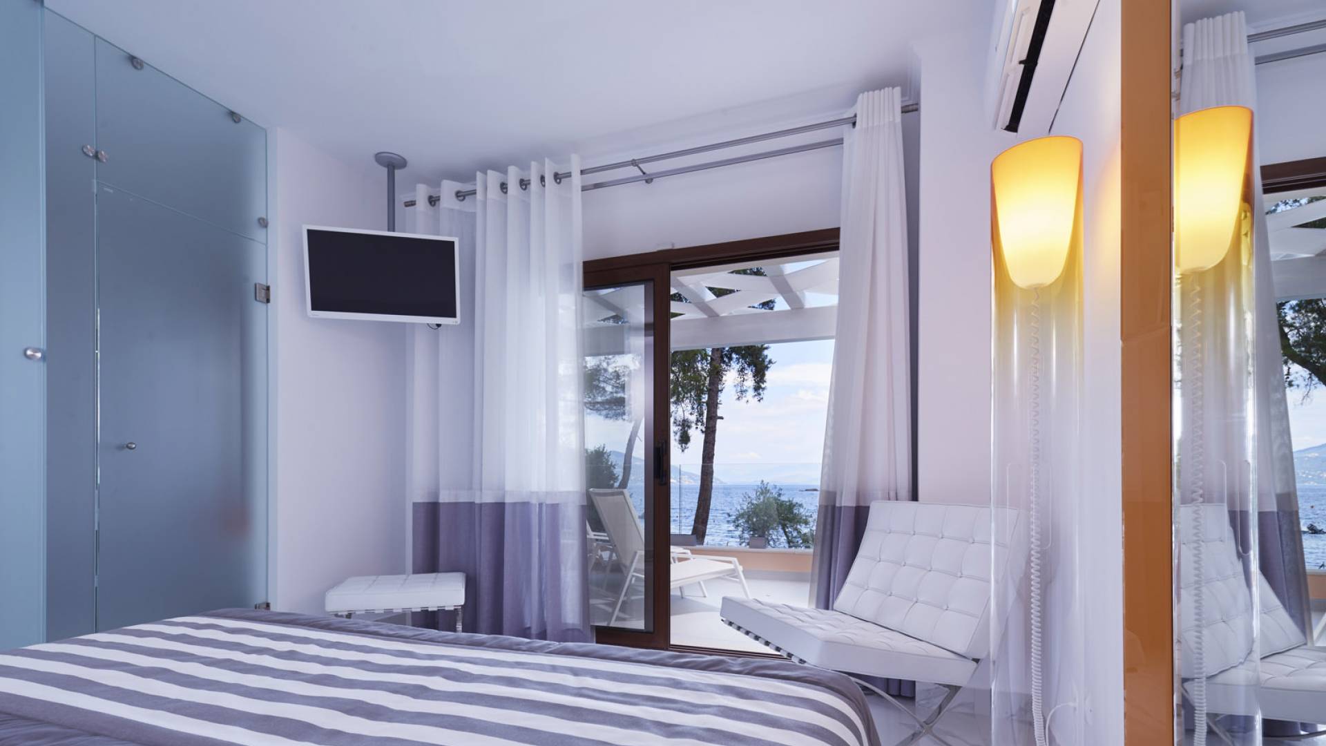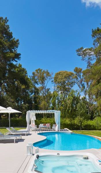 Villa Olympia Corfu est une location de villa de luxe en bord de mer avec 3 chambres et une piscine privée. La villa de trois chambres est située dans un grand jardin clos avec son propre jacuzzi et sa piscine et a un accès direct à la plage par un portail privé. La Villa Olympia Corfu, comme toutes les villas S&O, a été conçue et décorée par l'architecte grec Dimitris Tsitsos. Les lignes modernes et le luxe et le confort à la pointe de la technologie prédominent. La résidence climatisée est disponible toute l'année.
