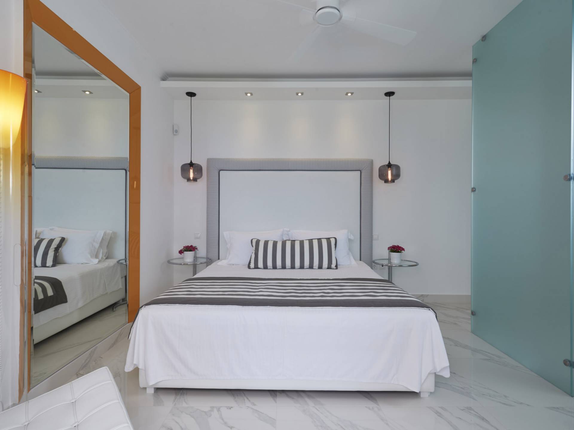 Au rez-de-chaussée : cuisine entièrement équipée avec lave-vaisselle, micro-ondes, machine à expresso, coin repas et salon décloisonné, chambre supplémentaire avec salle de bain attenante, terrasse en bois ombragée menant à la piscine, gazebo de jardin et espace barbecue, extérieur salle à manger pour 6, buanderie avec machine à laver et toutes les commodités. Deux autres chambres avec balcons vue mer et salles de bains privatives, dont une avec balcon extérieur Jacuzzi, sont situées au deuxième niveau. Il y a une télévision à écran plat dans chaque chambre, avec chaînes satellite et lecteur DVD, une ligne téléphonique directe, un coffre-fort électronique et une connexion Wi-Fi gratuite.