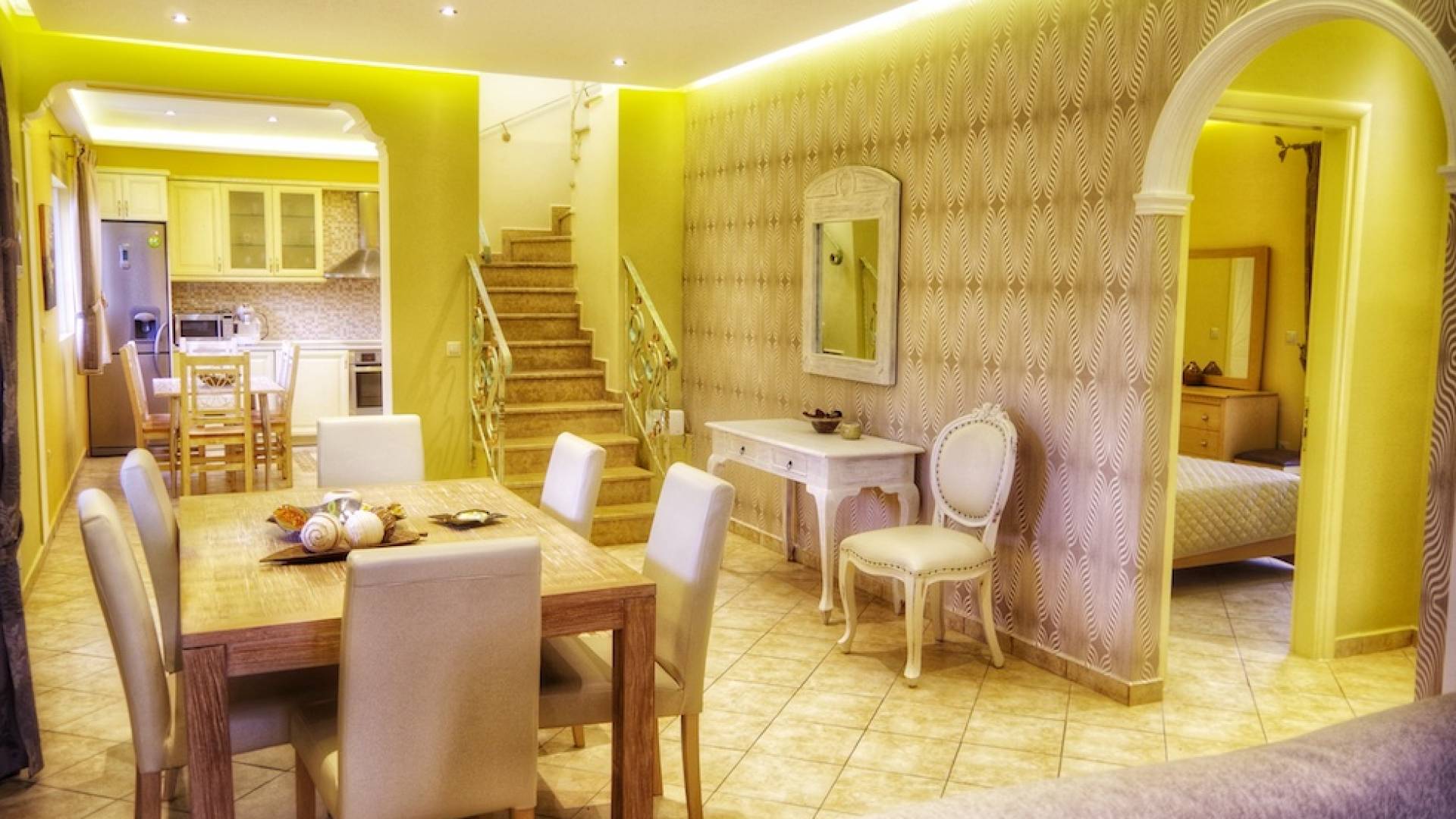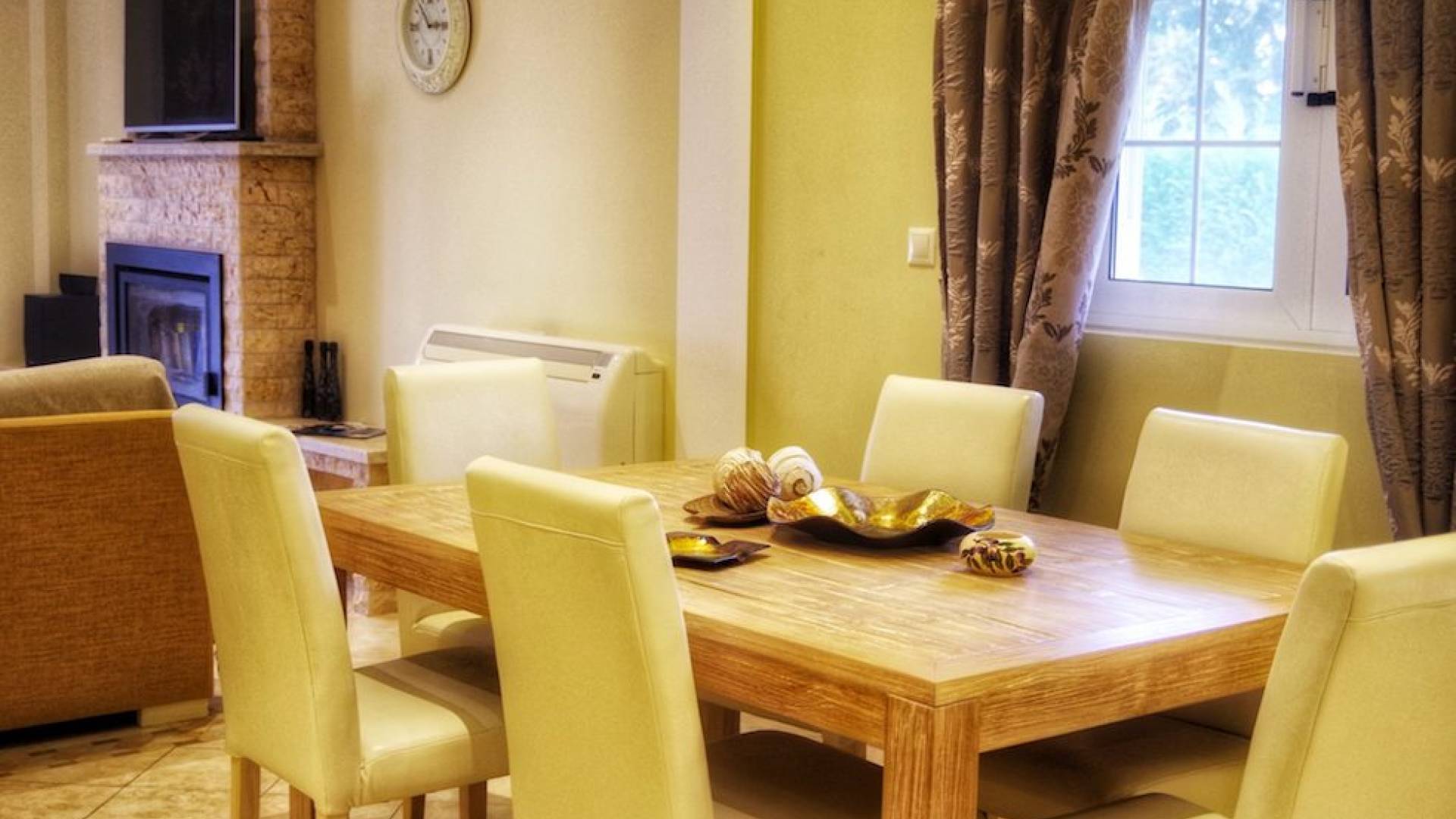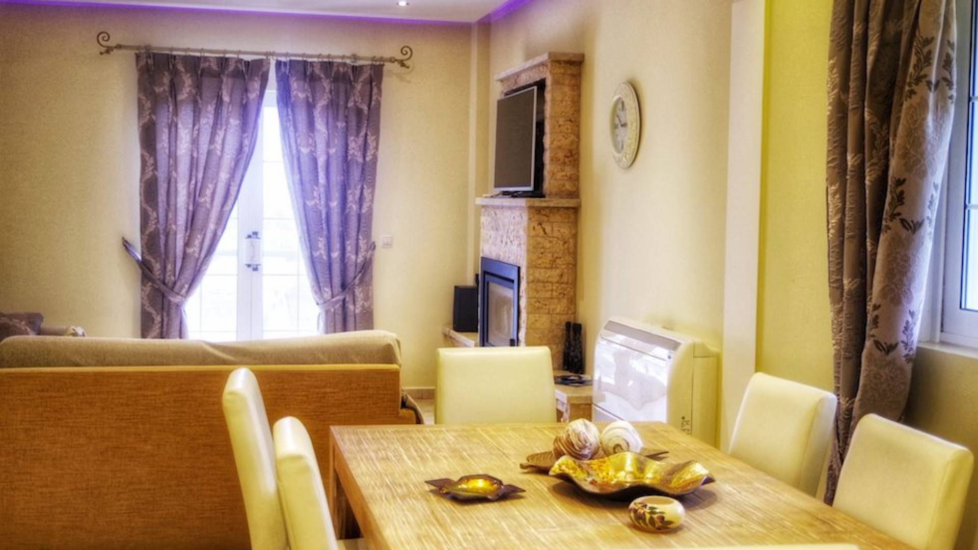 Au rez-de-chaussée, il y a une cuisine victorienne entièrement équipée avec réfrigérateur, congélateur, four, micro-ondes, expresso - cafetière française, bouilloire, shaker, lave-vaisselle et lave-linge. Chaque chambre dispose de deux lits simples ou matrimoniaux, d'une télévision par satellite, d'une salle de bain intérieure entièrement climatisée (2 avec jacuzzi) et d'un sèche-cheveux. Dans la chambre à l'étage supérieur se trouve un bureau avec un ordinateur de bureau et un accès Internet, ainsi qu'un lecteur DVD / CD. Dans la propriété est inclus un appartement secondaire pouvant accueillir jusqu'à 2 personnes supplémentaires. Les villas Elthea sont nouvellement construites selon des normes élevées, ont été construites et conçues en pensant aux vacanciers pour un hébergement supérieur et luxueux.