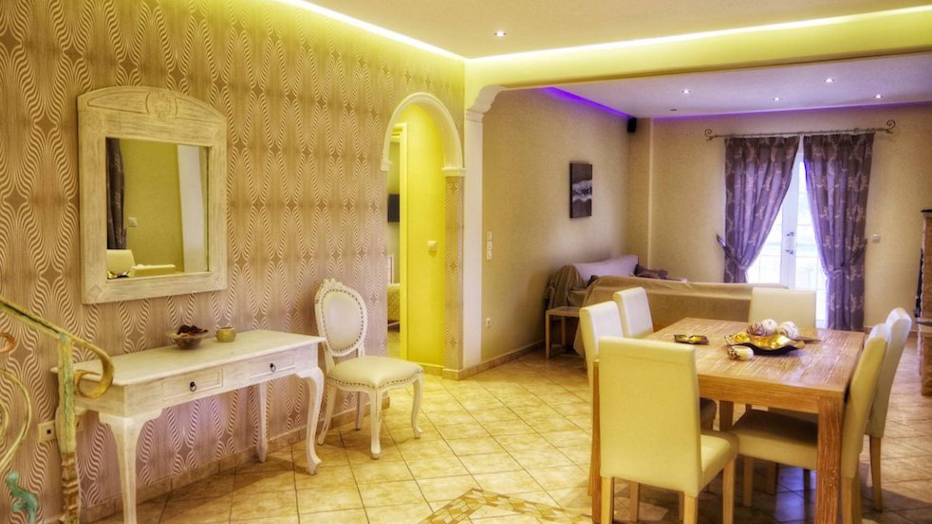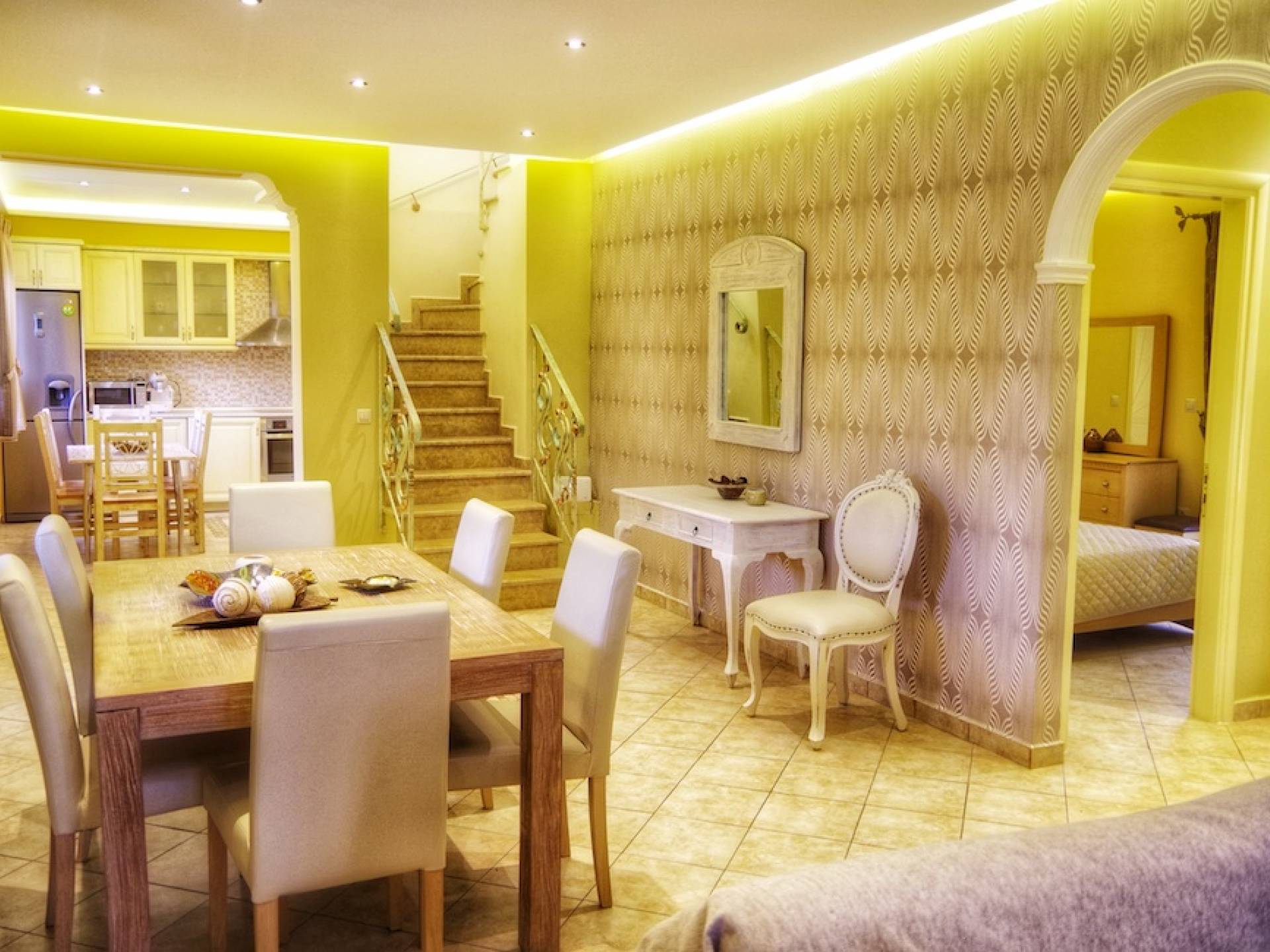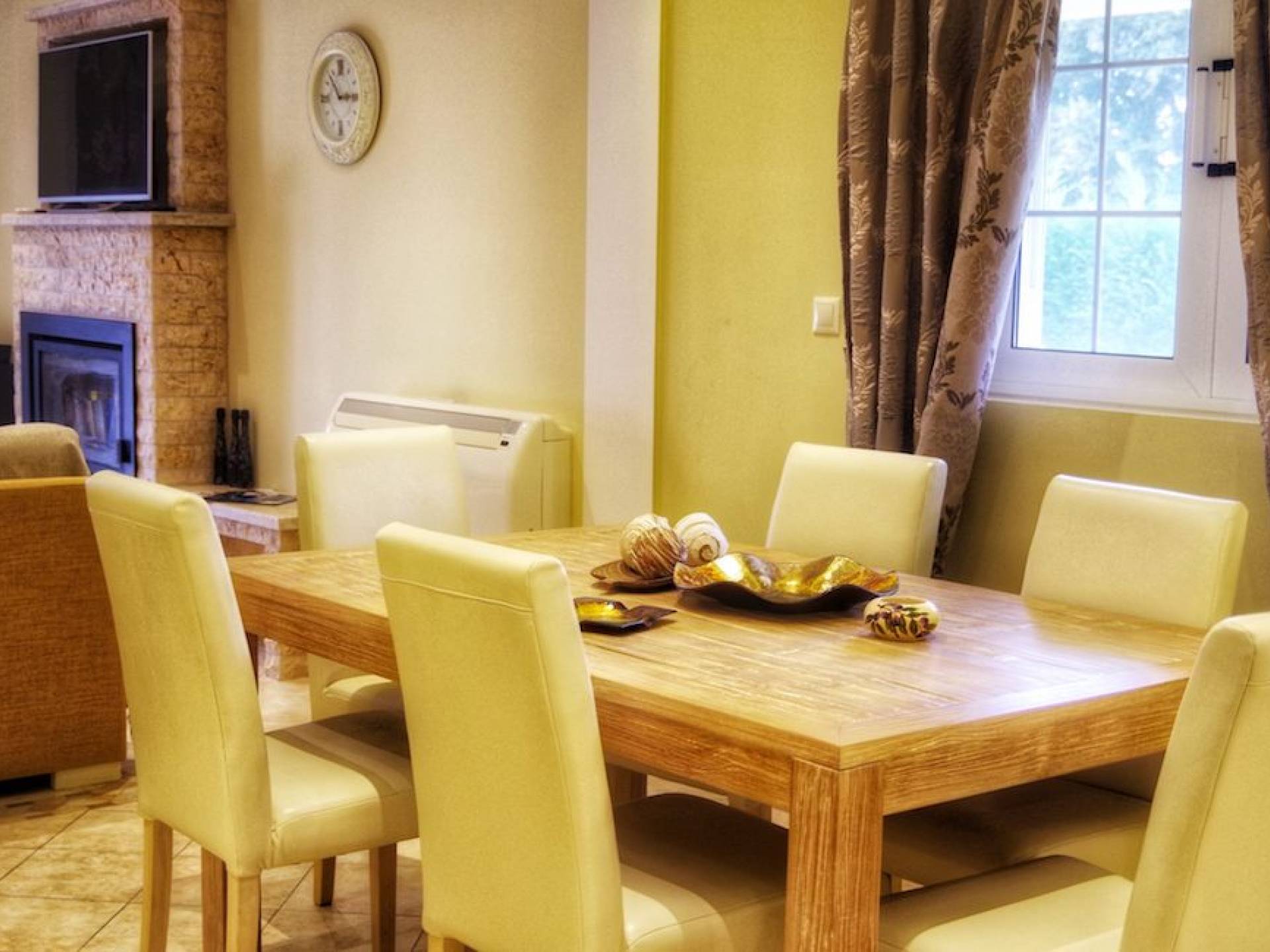 Au rez-de-chaussée, il y a une cuisine victorienne entièrement équipée avec réfrigérateur, congélateur, four, micro-ondes, expresso - cafetière française, bouilloire, shaker, lave-vaisselle et lave-linge. Chaque chambre dispose de deux lits simples ou matrimoniaux, d'une télévision par satellite, d'une salle de bain intérieure entièrement climatisée (2 avec jacuzzi) et d'un sèche-cheveux. Dans la chambre à l'étage supérieur se trouve un bureau avec un ordinateur de bureau et un accès Internet, ainsi qu'un lecteur DVD / CD. Dans la propriété est inclus un appartement secondaire pouvant accueillir jusqu'à 2 personnes supplémentaires. Les villas Elthea sont nouvellement construites selon des normes élevées, ont été construites et conçues en pensant aux vacanciers pour un hébergement supérieur et luxueux.