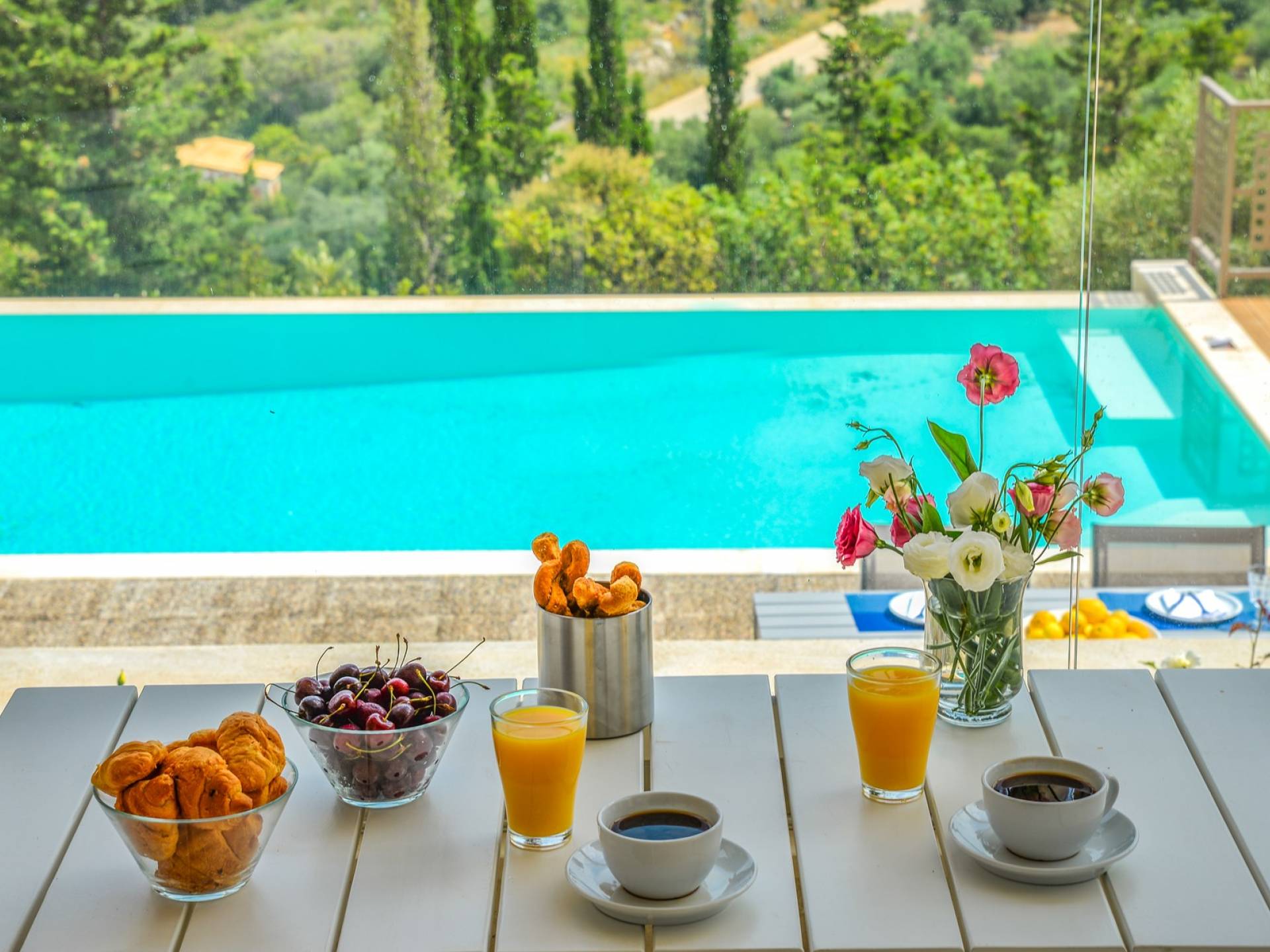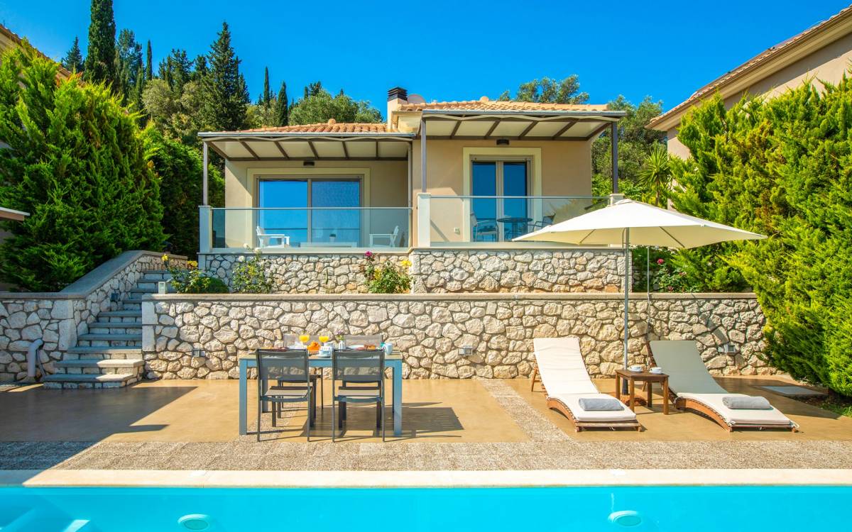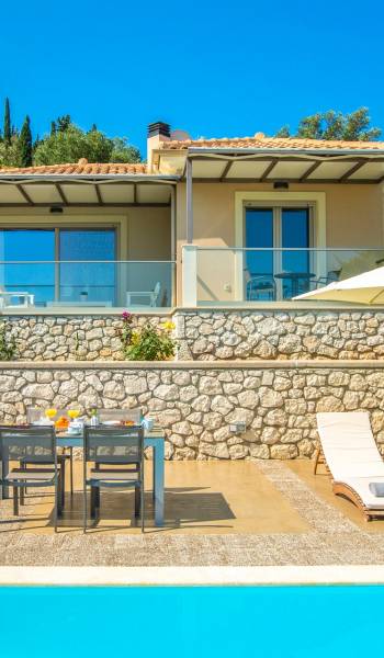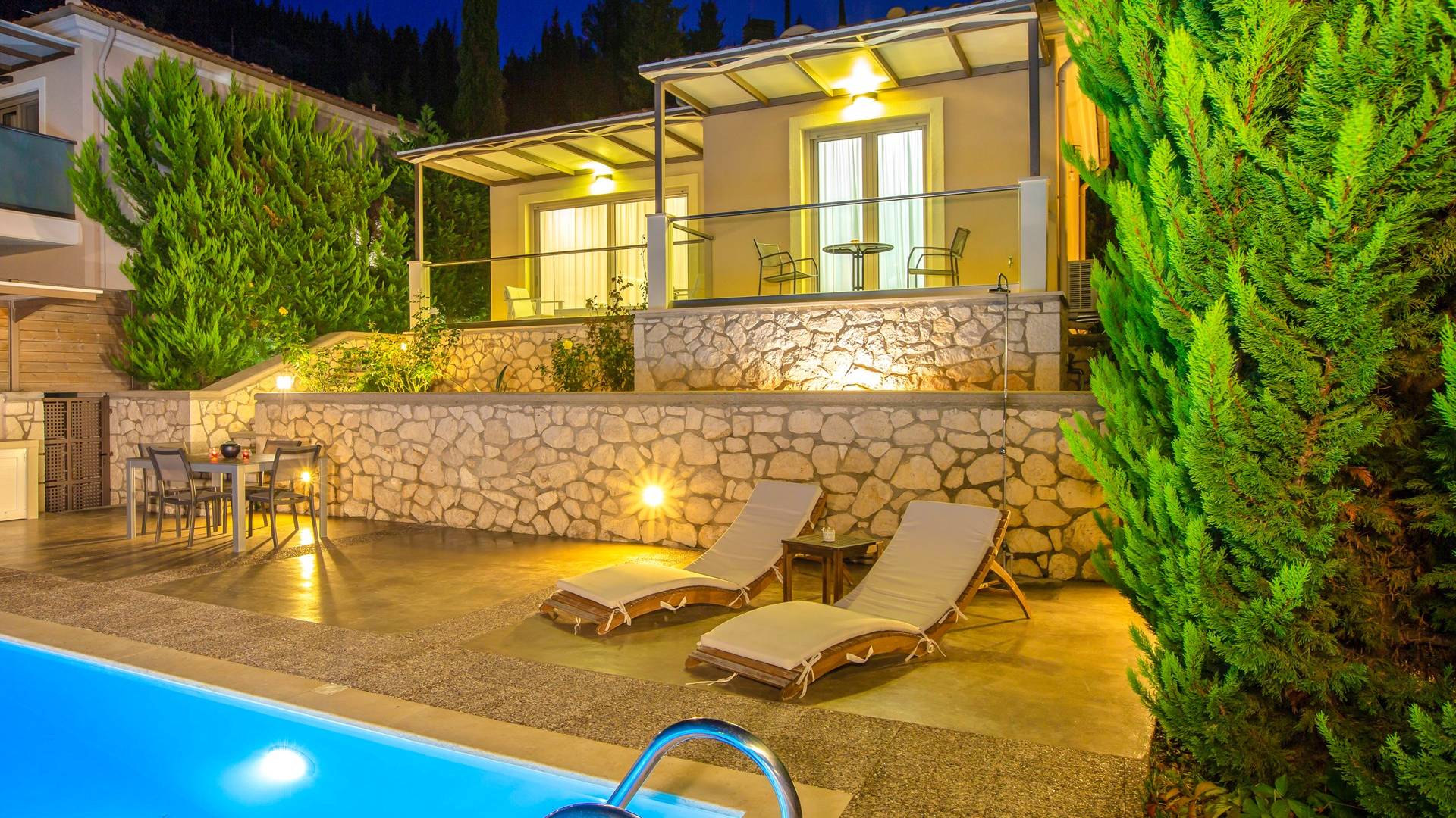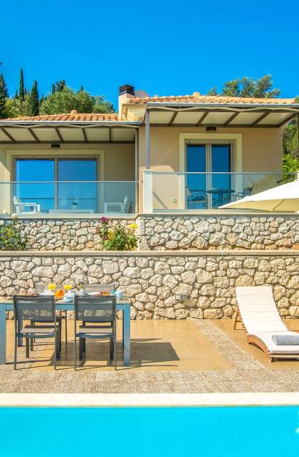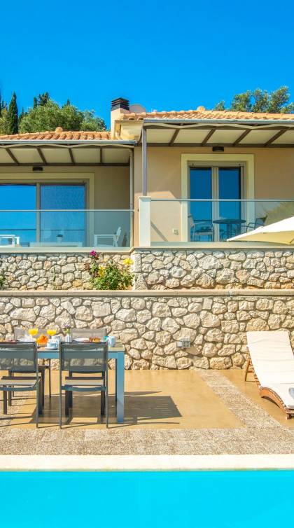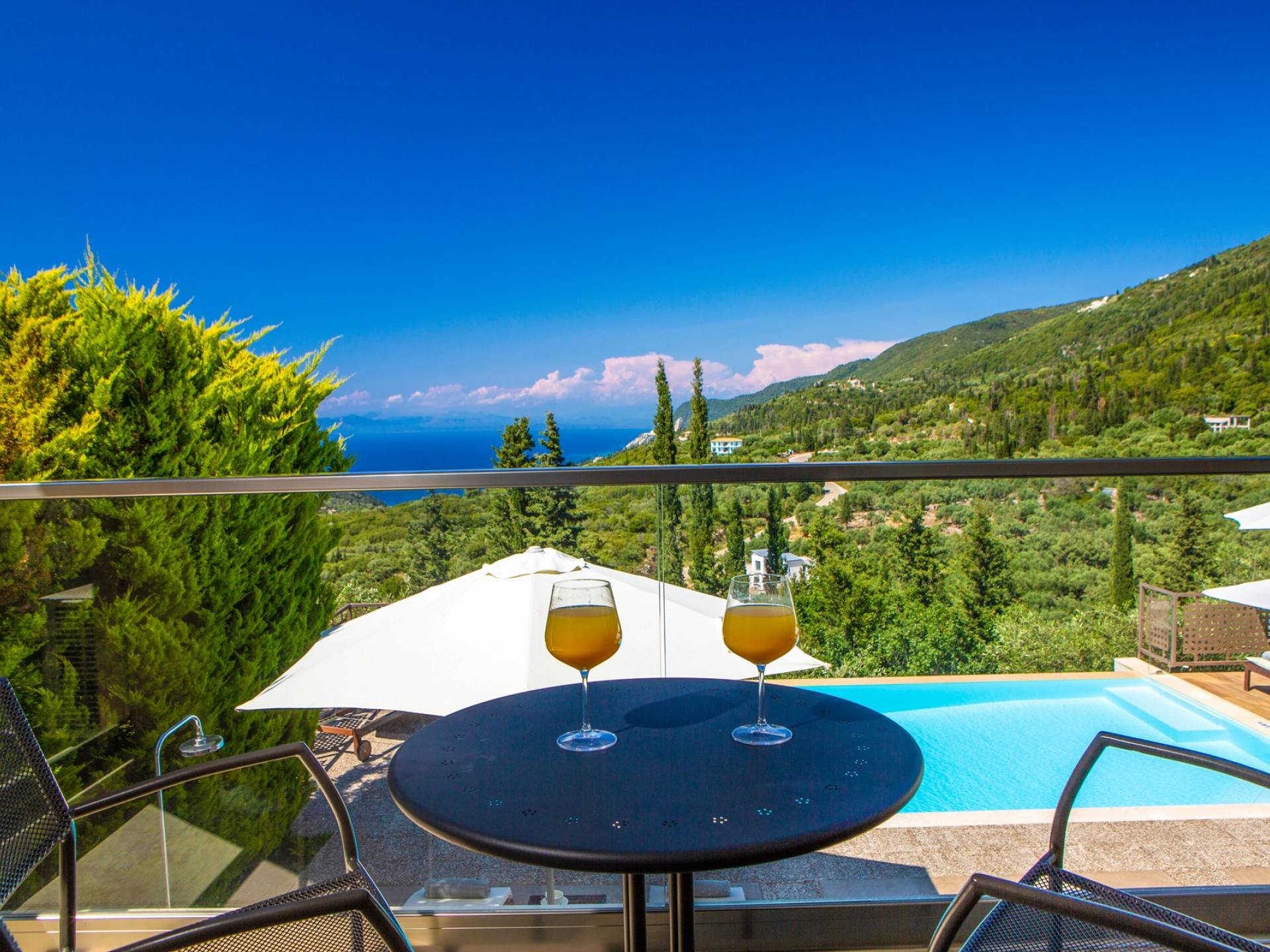 L'élégante et moderne Villa Feria de Drimonari Villas Lefkada peut répondre à vos meilleures attentes et vous offrir des moments de bonheur ultime au début de votre nouvelle vie. Pour vous accueillir, nous vous offrons une bouteille de champagne bien fraîche et une boîte de chocolats à la lueur des bougies au bord de votre piscine privée.