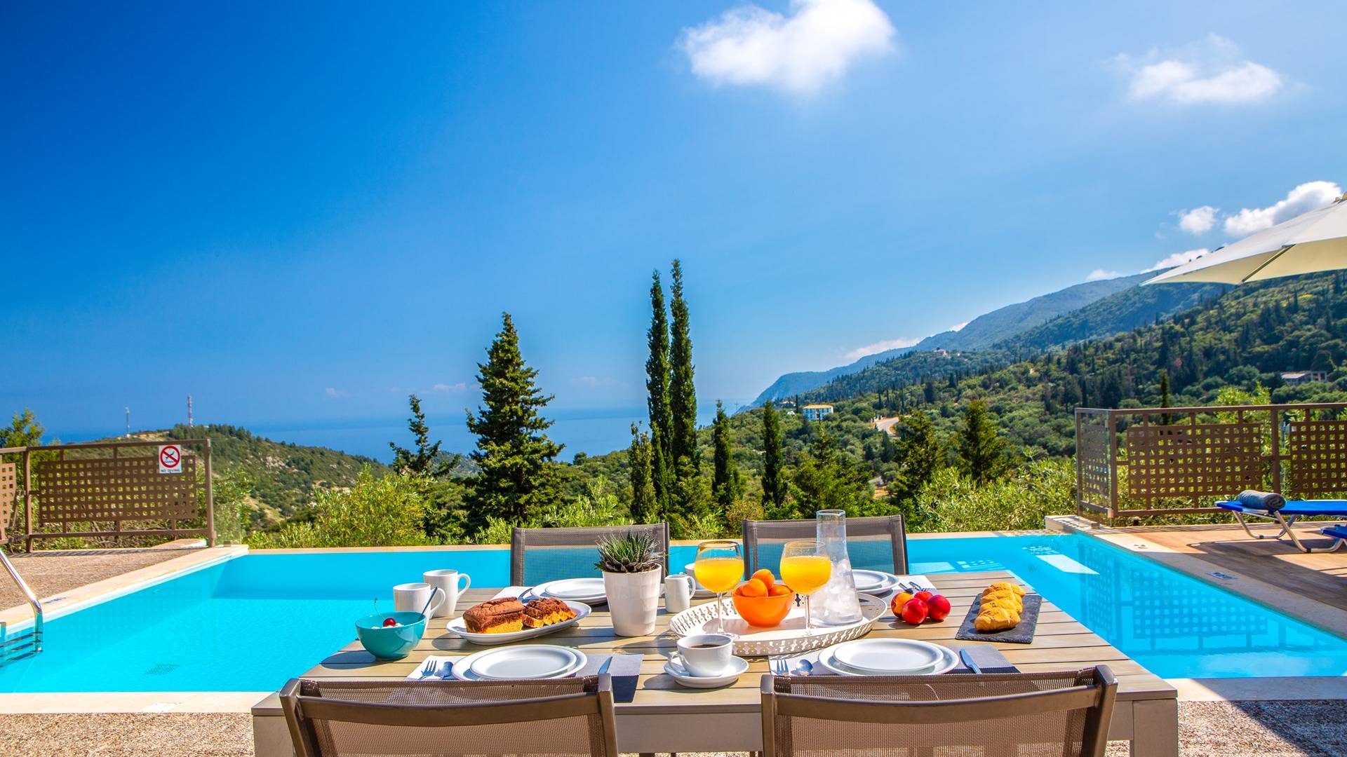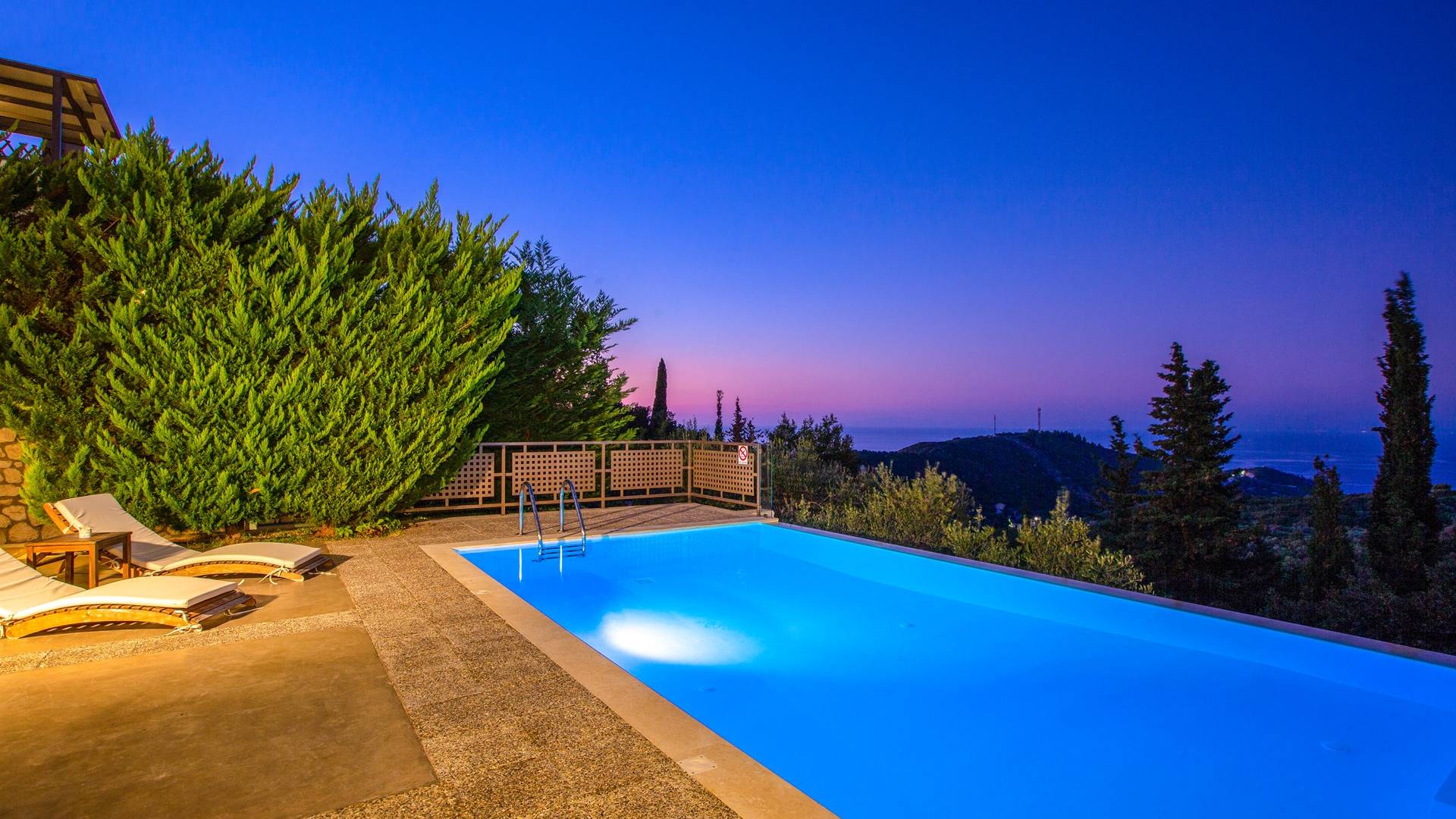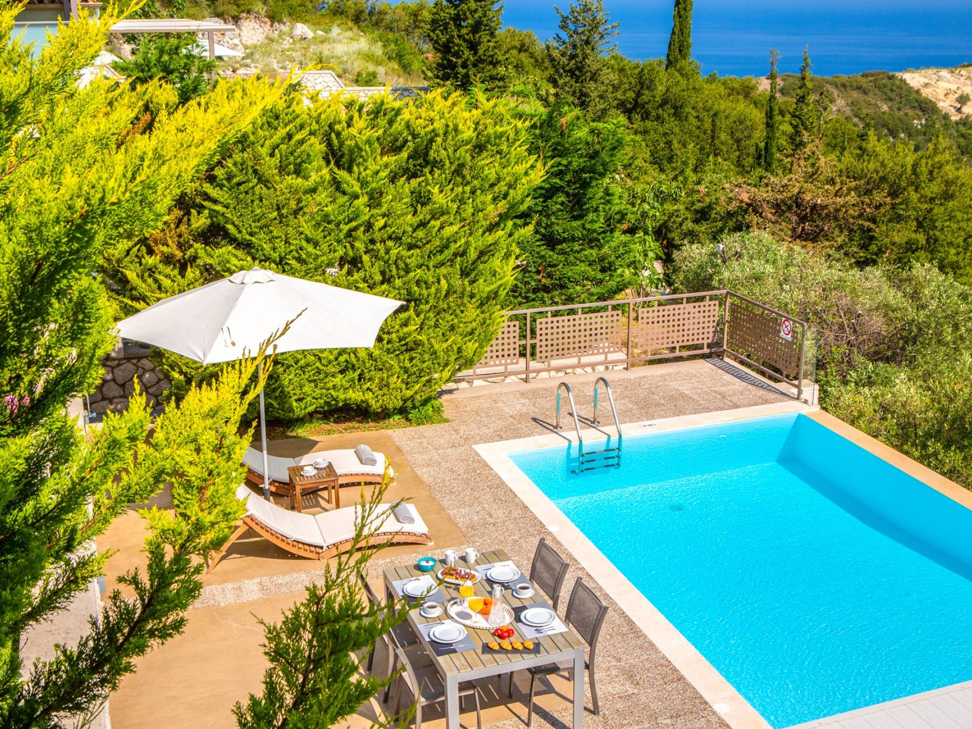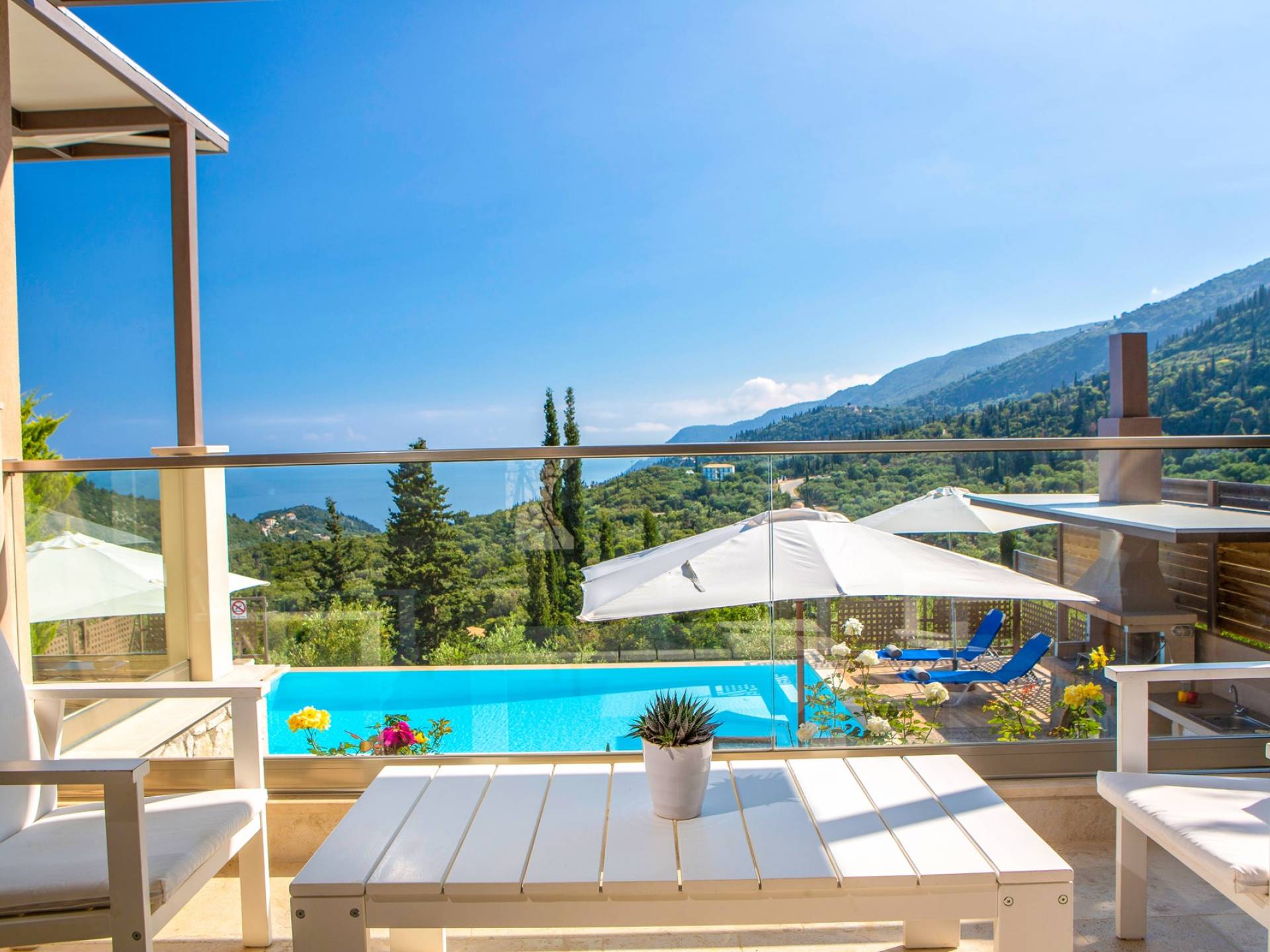 L'élégante et moderne Villa Feria de Drimonari Villas Lefkada peut répondre à vos meilleures attentes et vous offrir des moments de bonheur ultime au début de votre nouvelle vie. Pour vous accueillir, nous vous offrons une bouteille de champagne bien fraîche et une boîte de chocolats à la lueur des bougies au bord de votre piscine privée.