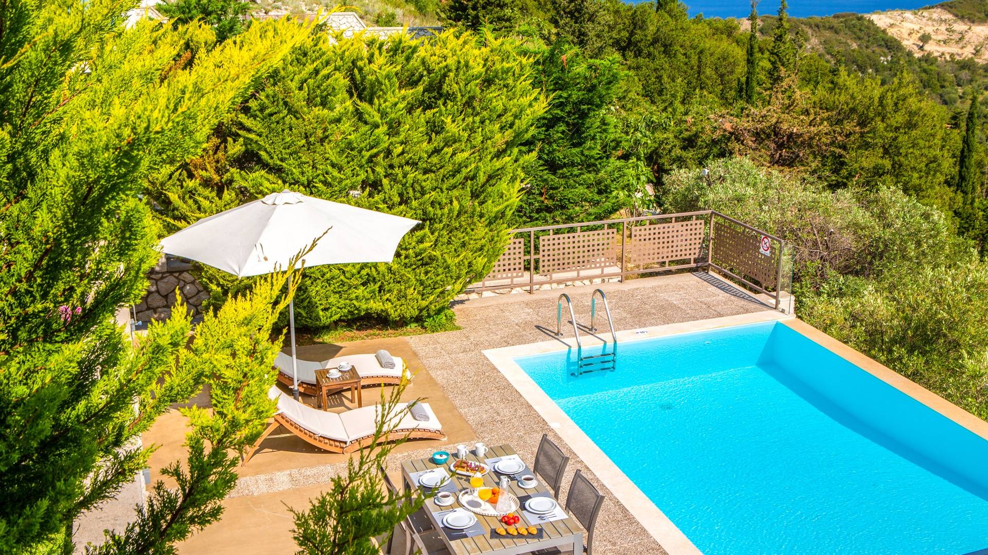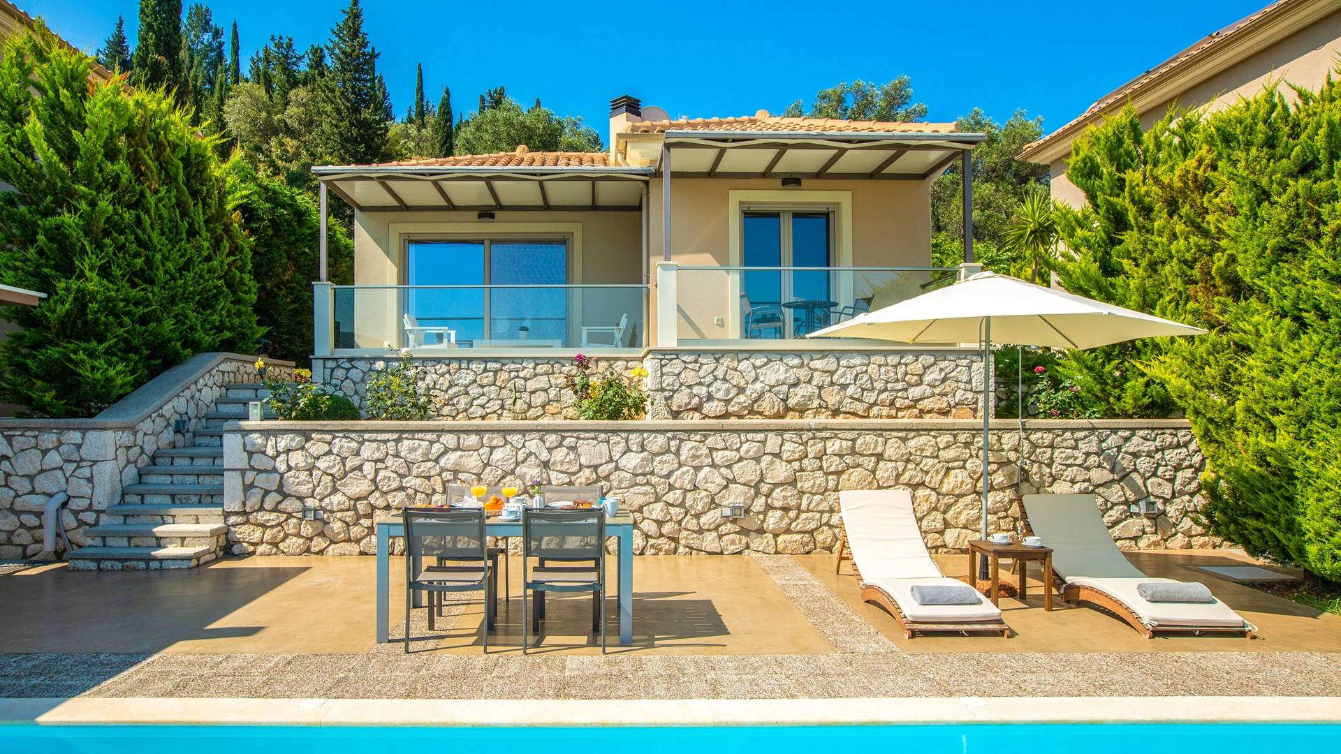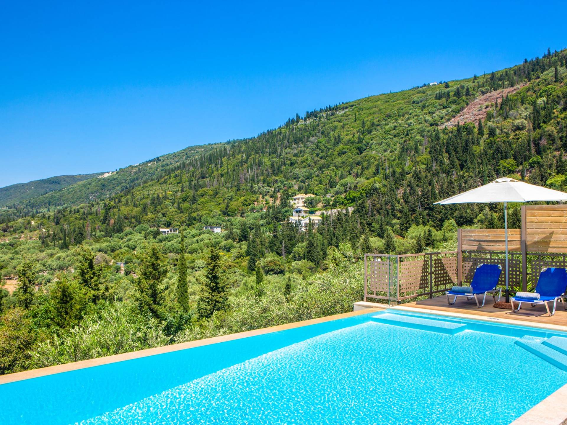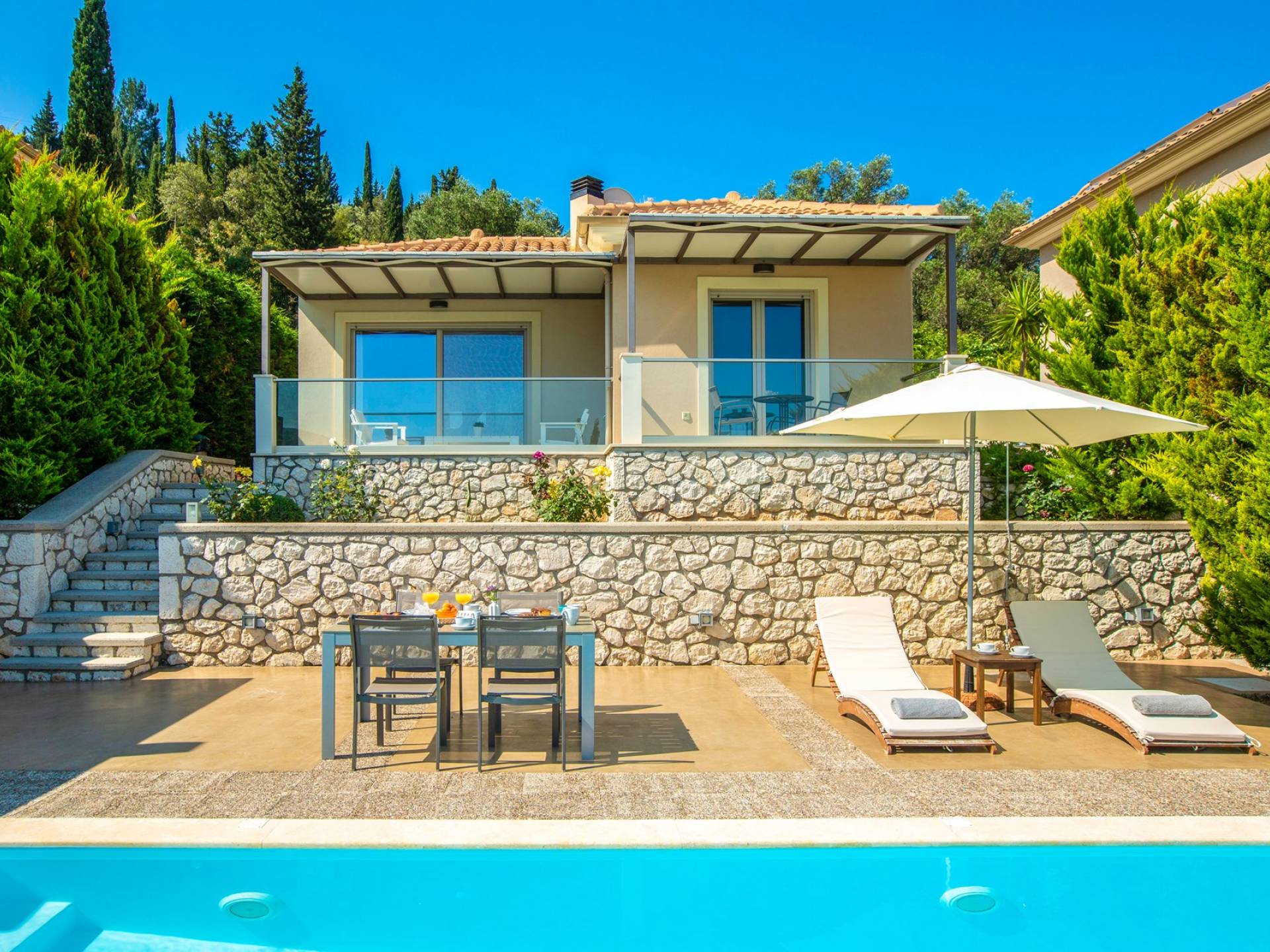 L'élégante et moderne Villa Feria de Drimonari Villas Lefkada peut répondre à vos meilleures attentes et vous offrir des moments de bonheur ultime au début de votre nouvelle vie. Pour vous accueillir, nous vous offrons une bouteille de champagne bien fraîche et une boîte de chocolats à la lueur des bougies au bord de votre piscine privée.