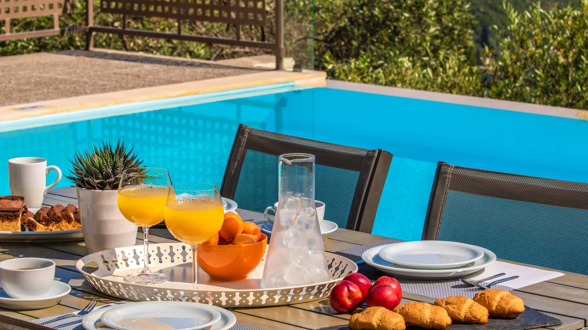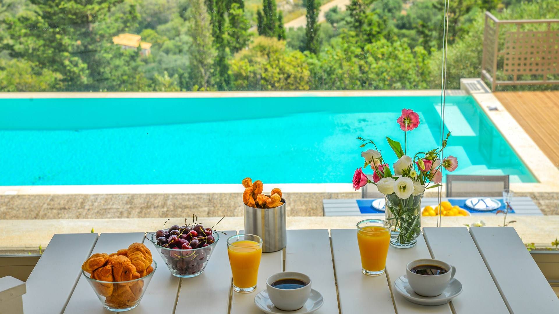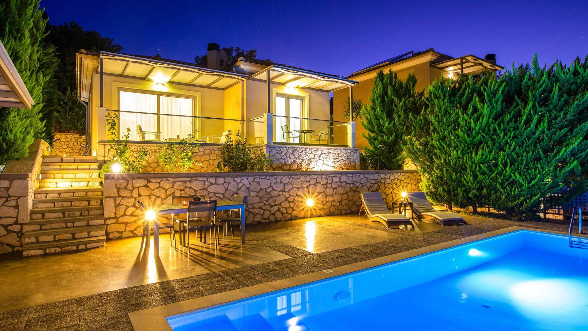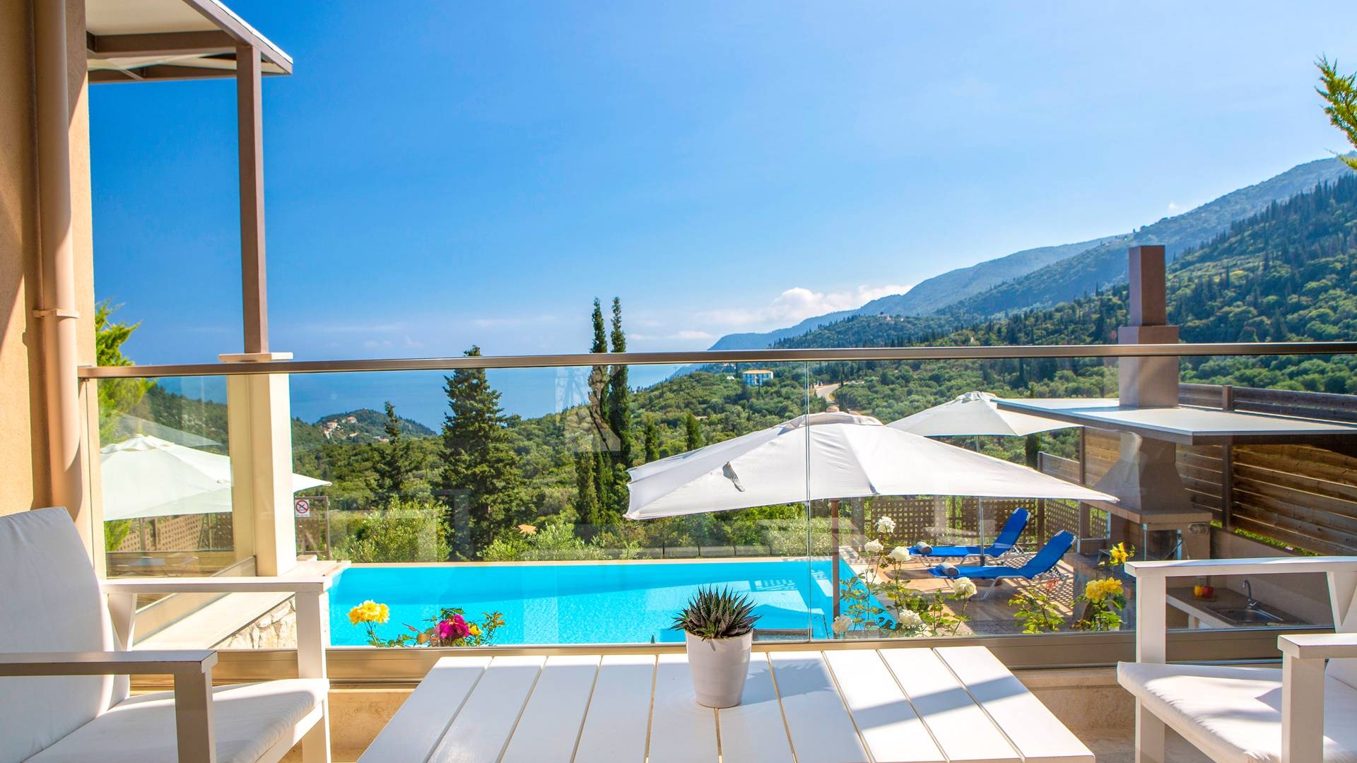 L'élégante et moderne Villa Feria de Drimonari Villas Lefkada peut répondre à vos meilleures attentes et vous offrir des moments de bonheur ultime au début de votre nouvelle vie. Pour vous accueillir, nous vous offrons une bouteille de champagne bien fraîche et une boîte de chocolats à la lueur des bougies au bord de votre piscine privée.