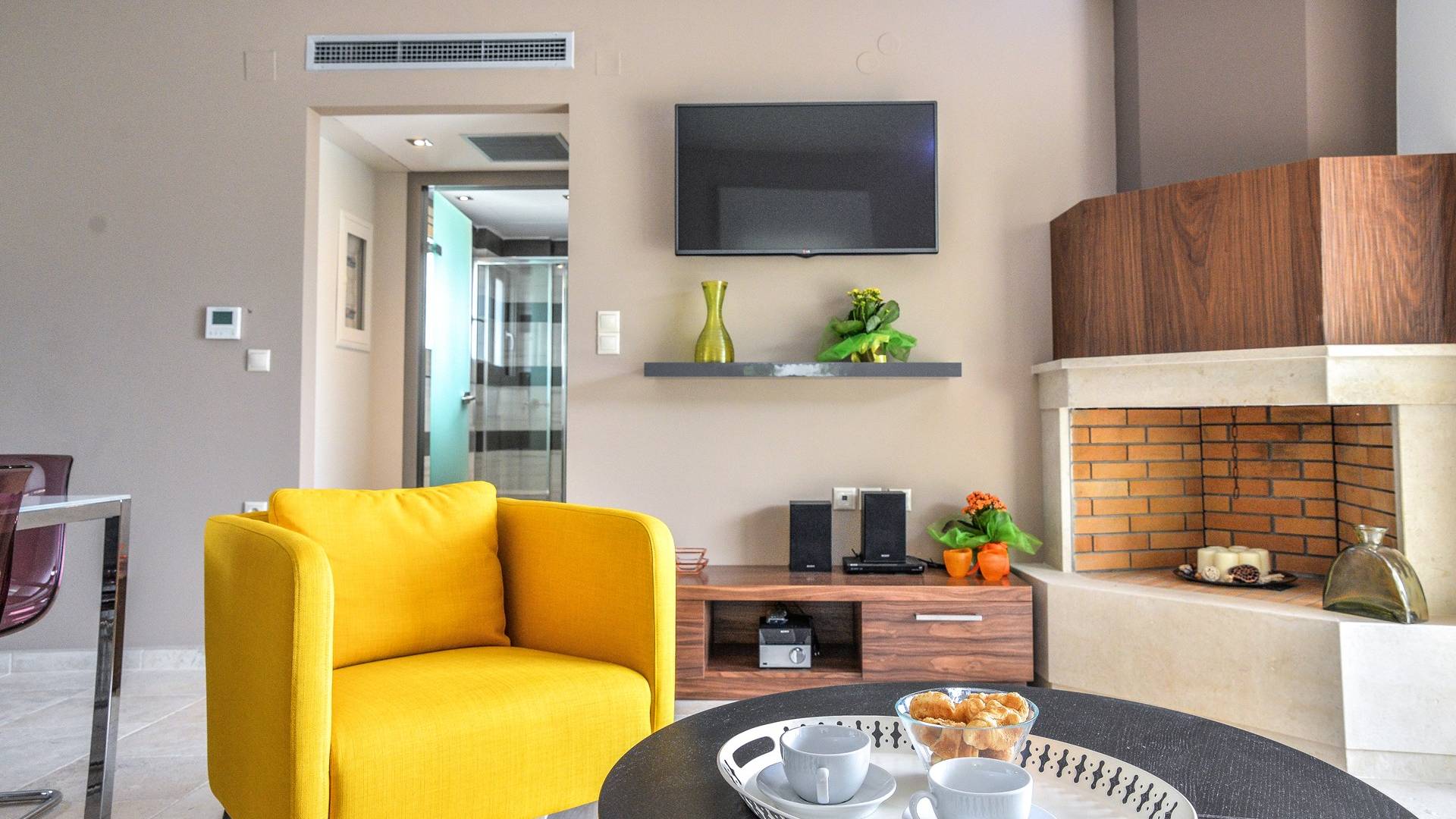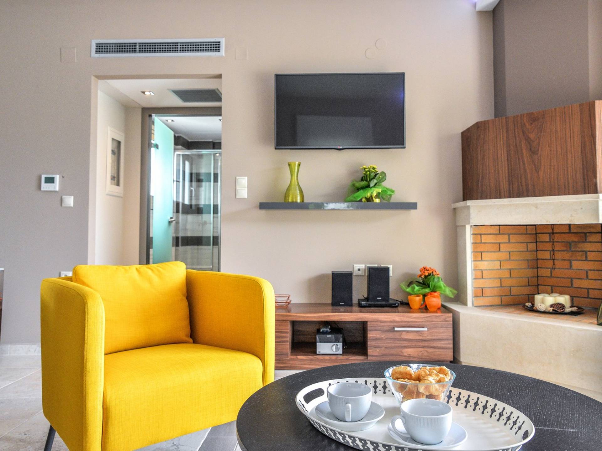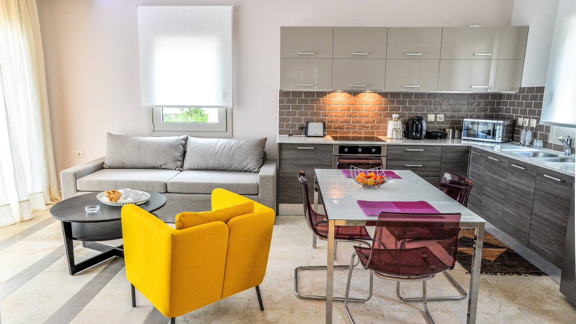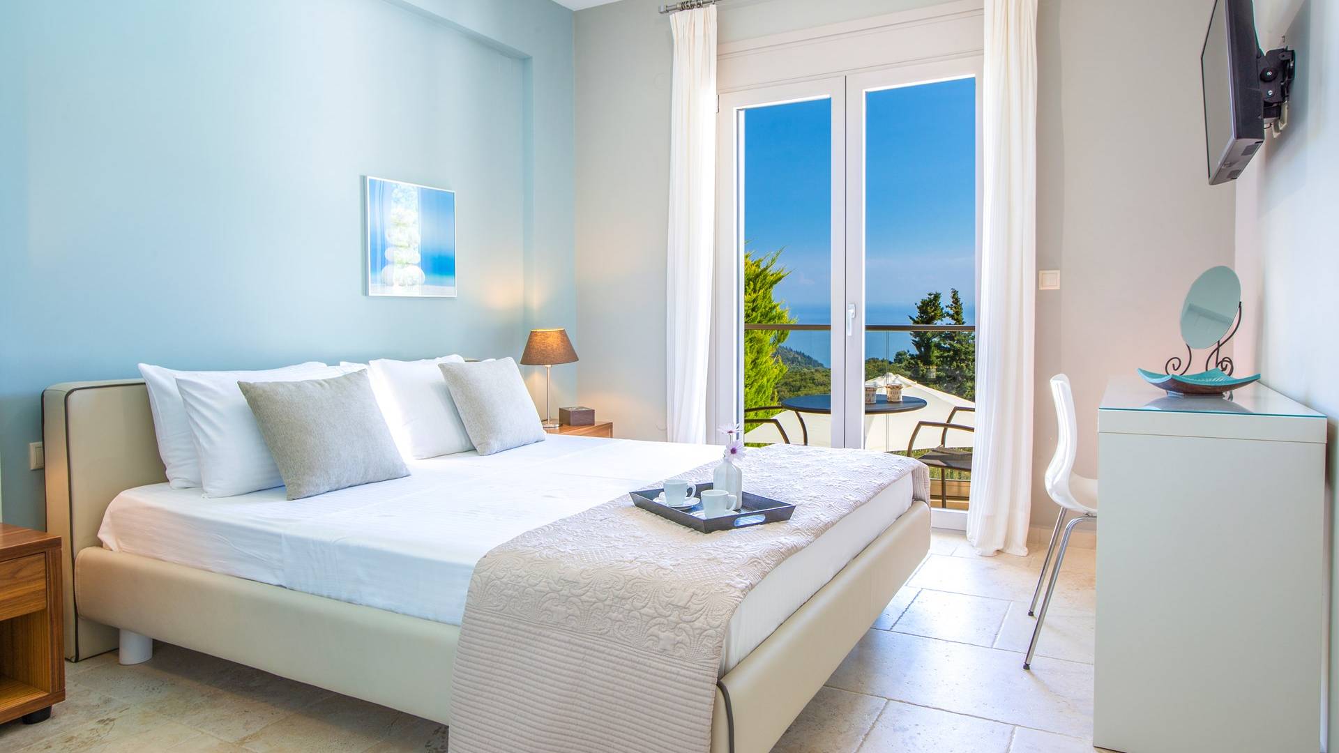 Il dispose de son parking individuel - disponible dans la propriété - et se compose d'une chambre avec un lit king-size, d'une unité individuelle climatisée, d'une salle de bain, et de tout un espace salon, avec un canapé pouvant être transformé en lit, le téléviseur, la cheminée et la grande porte coulissante avec la vue imprenable sur la mer Ionienne, la salle à manger et la cuisine entièrement équipée, le tout sur un seul niveau.