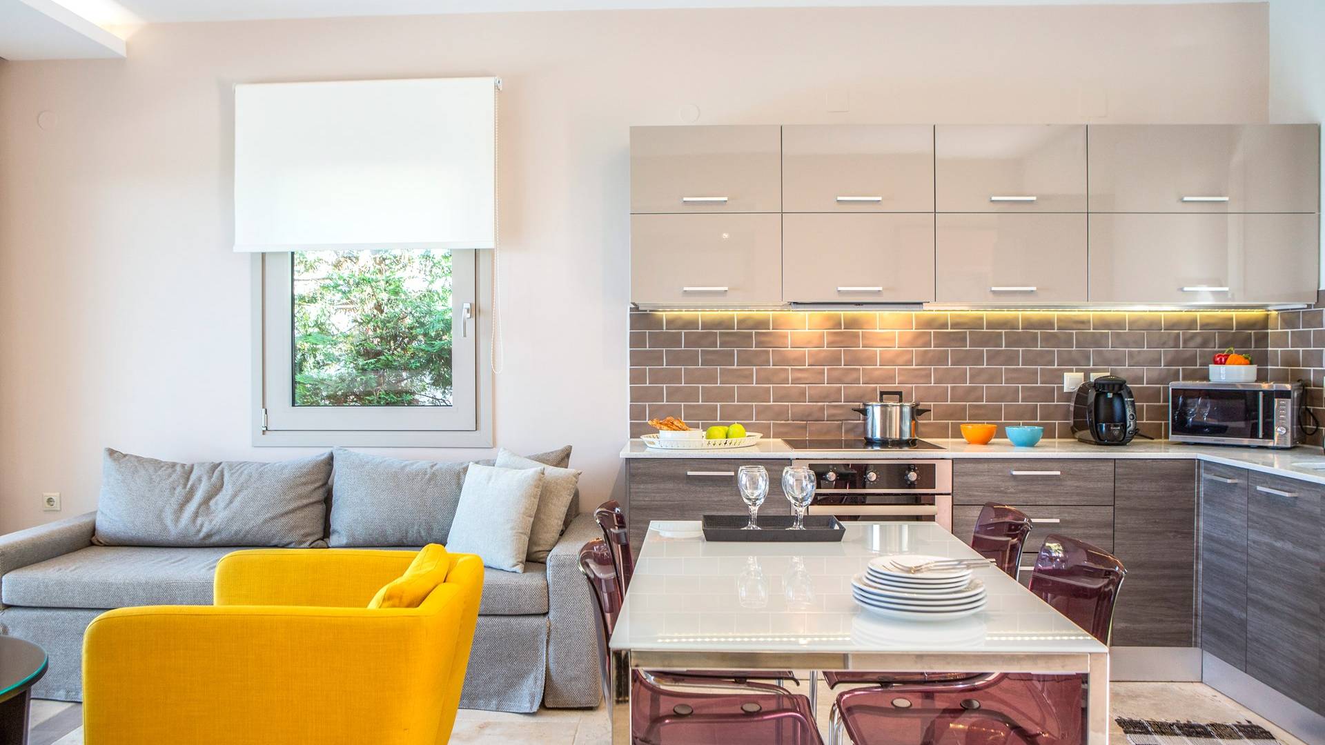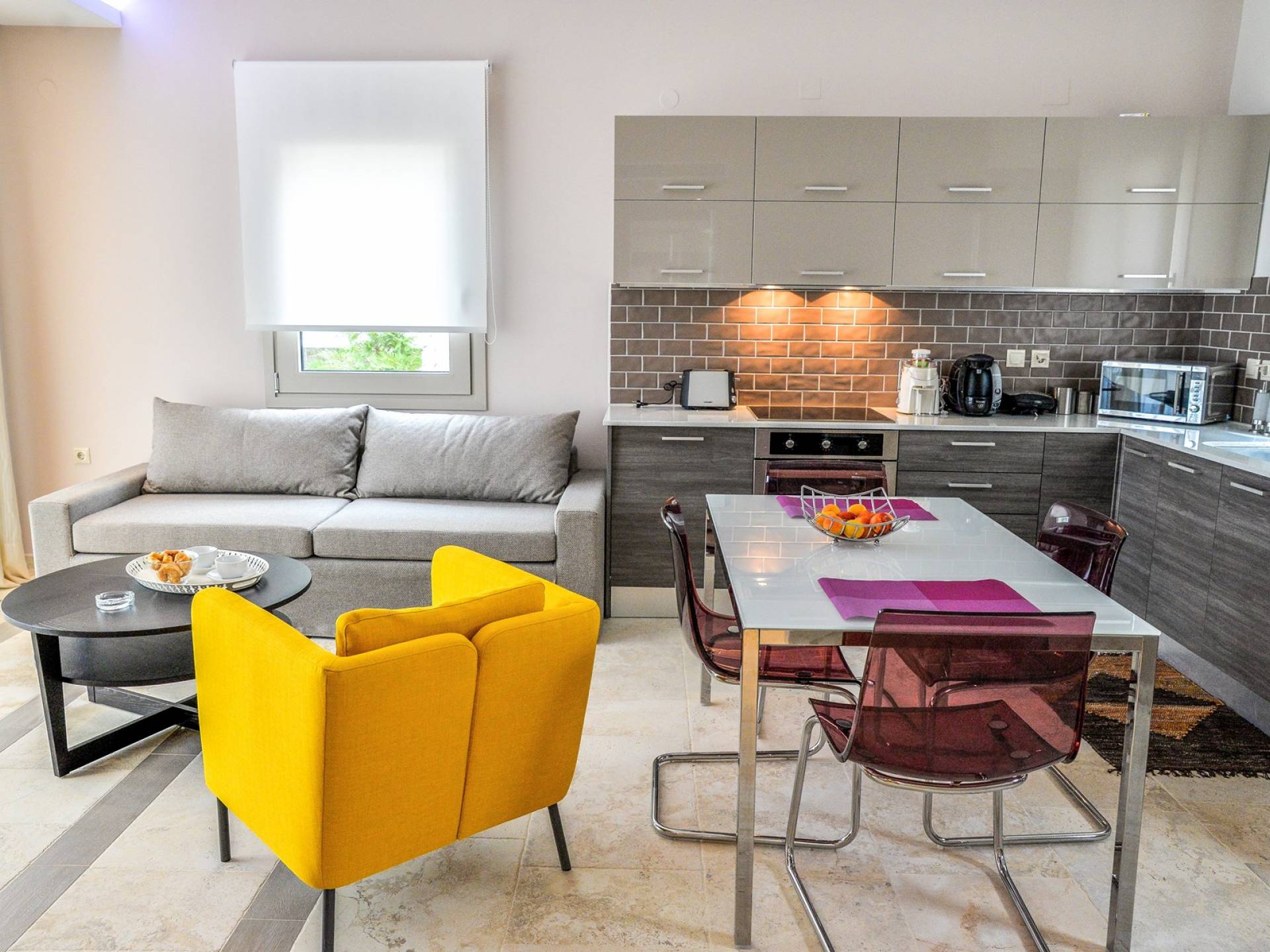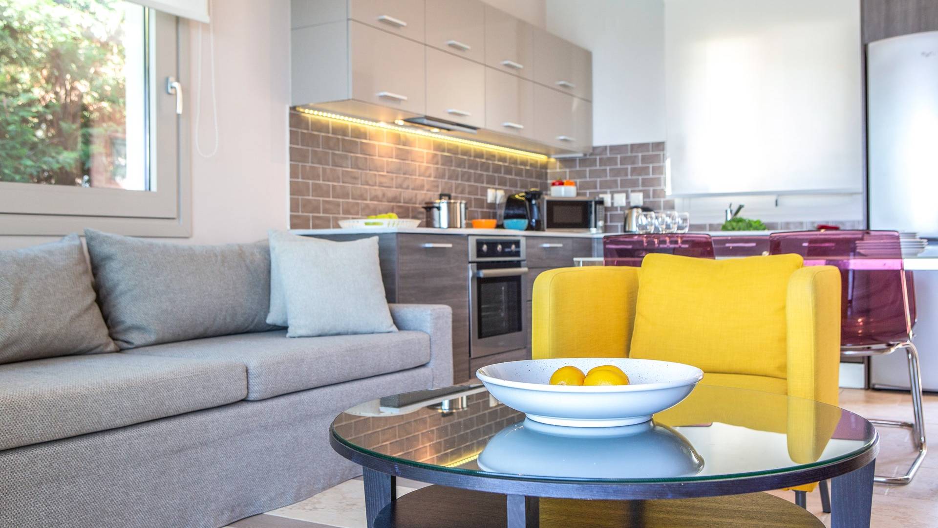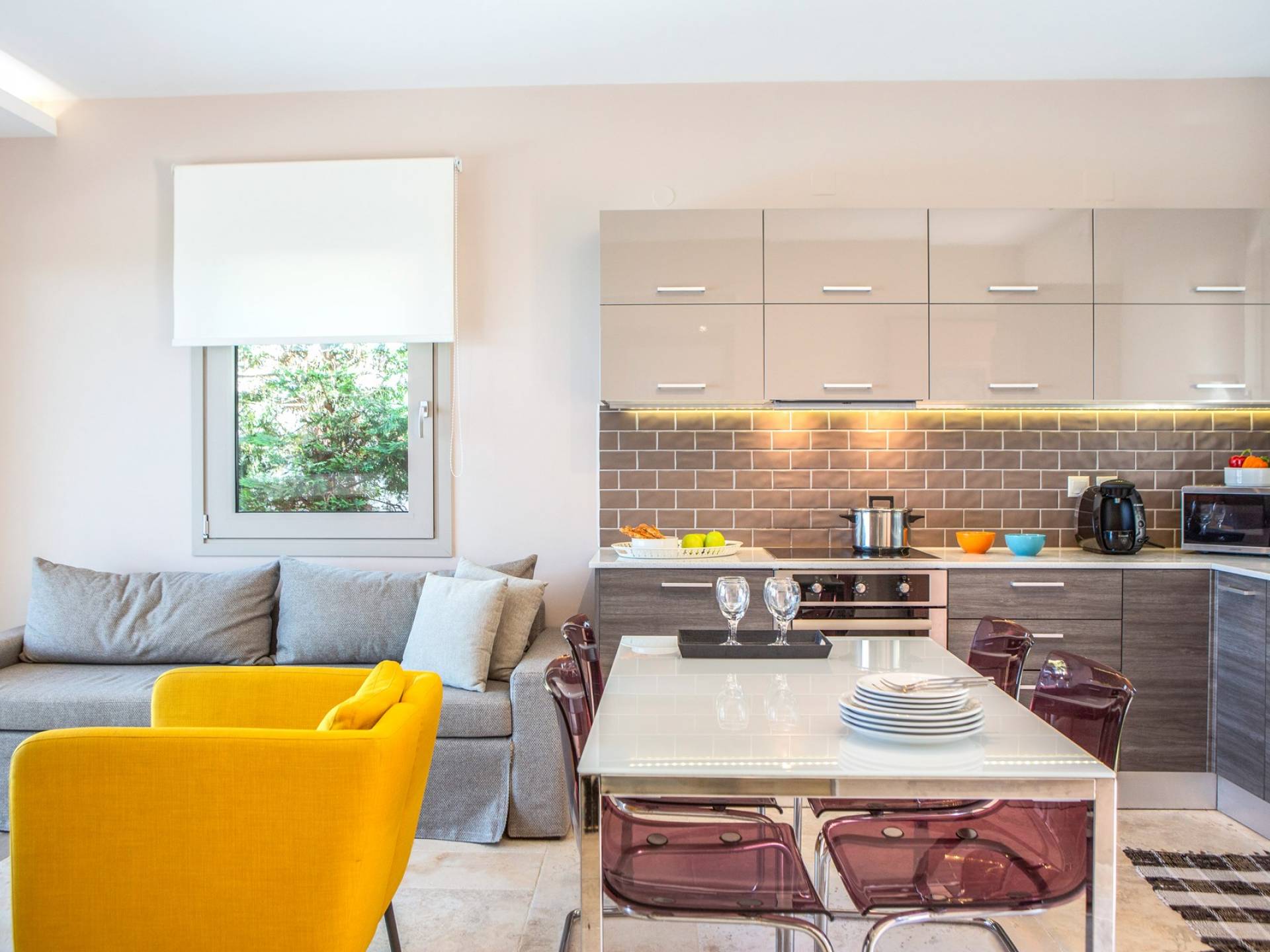 Il dispose de son parking individuel - disponible dans la propriété - et se compose d'une chambre avec un lit king-size, d'une unité individuelle climatisée, d'une salle de bain, et de tout un espace salon, avec un canapé pouvant être transformé en lit, le téléviseur, la cheminée et la grande porte coulissante avec la vue imprenable sur la mer Ionienne, la salle à manger et la cuisine entièrement équipée, le tout sur un seul niveau.