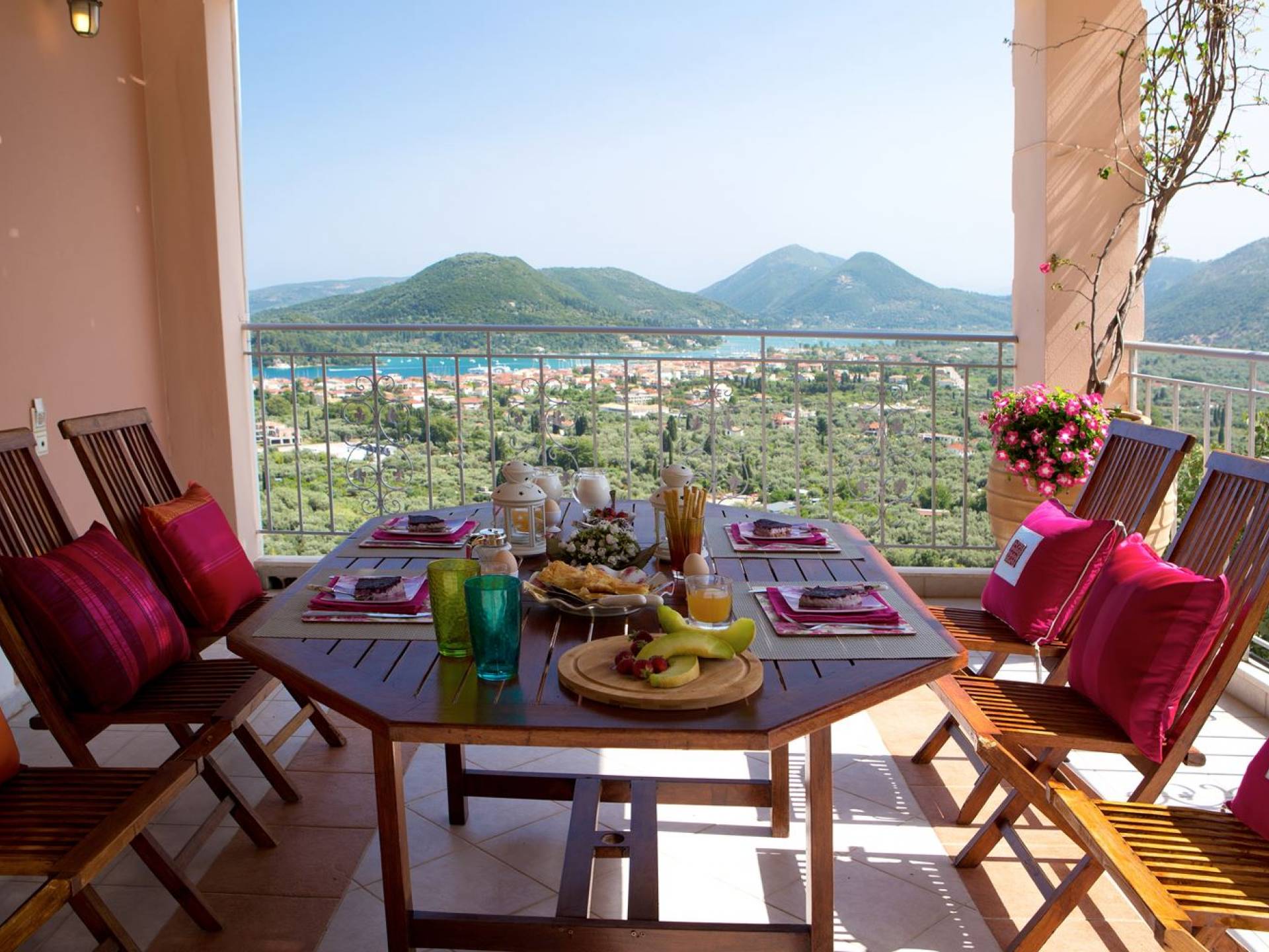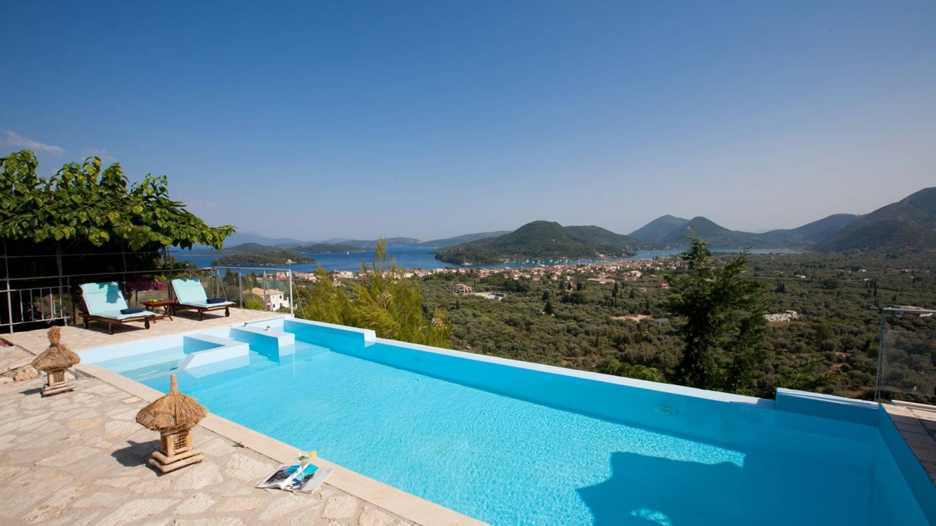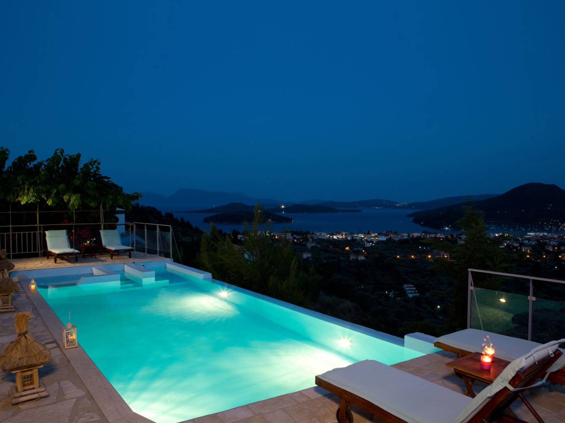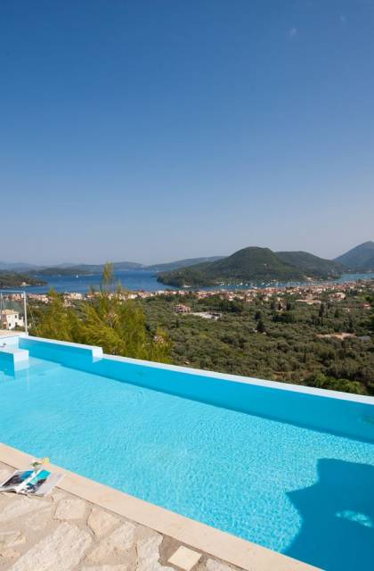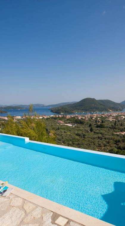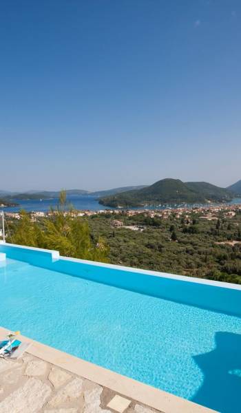 La Villa Lily bénéficie de ses propres piscines privées (séparées pour les adultes et les enfants) et d'un jacuzzi. Depuis le salon, un grand balcon avec de superbes vues panoramiques sur la mer couvre la mer Ionienne, le village de Nydri, la baie de Vlycho et les îles (Scorpios of Onassis, Meganissi et Ithaca - Odysseus Island), meublé d'une table et de chaises pour permettre vous de dîner en plein air. La villa contient trois chambres doubles en suite, ce qui est idéal pour les familles, les amis, les couples qui recherchent des vacances reposantes. Il y a beaucoup de choses à voir et à faire dans les environs pendant votre séjour.