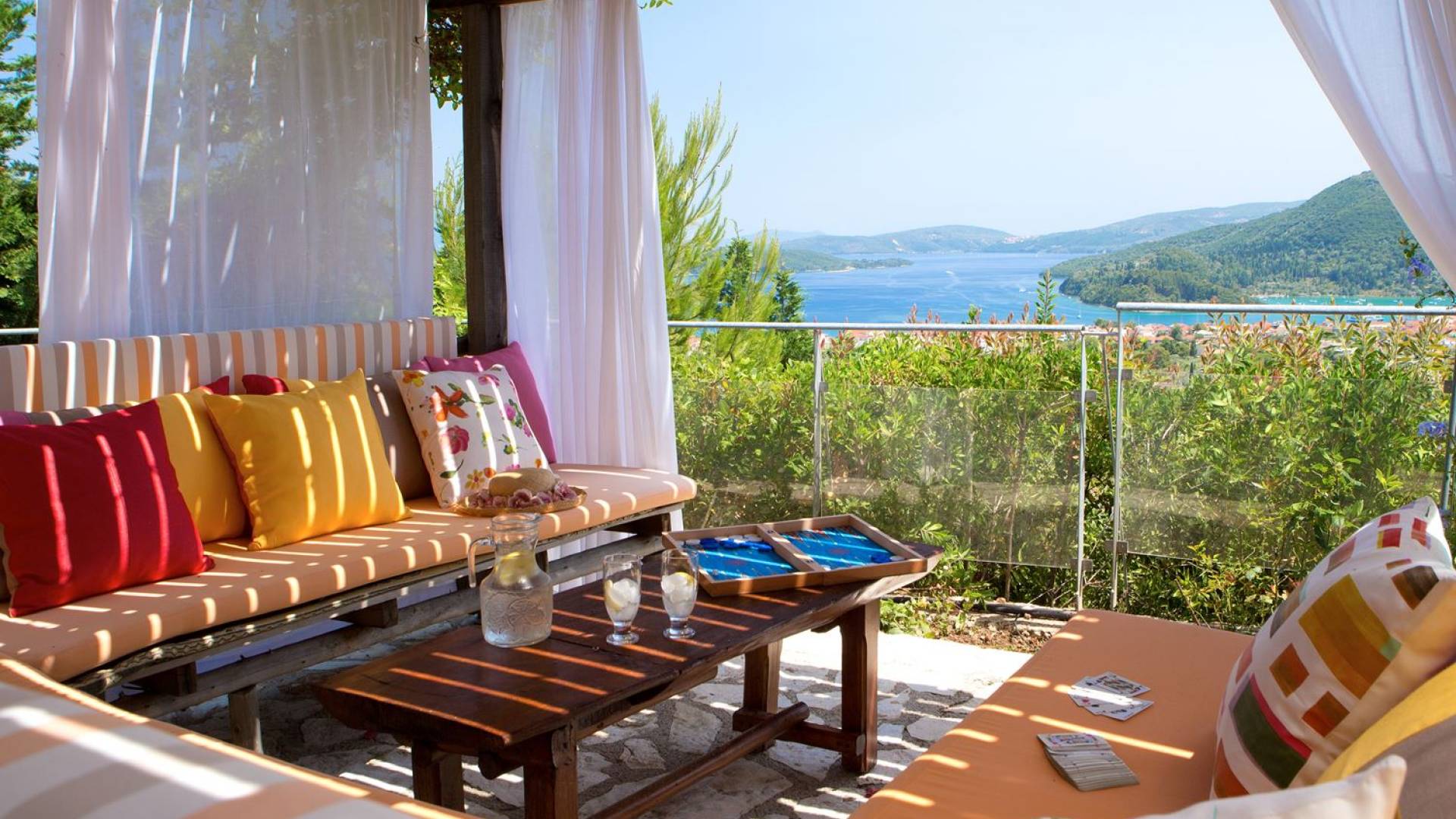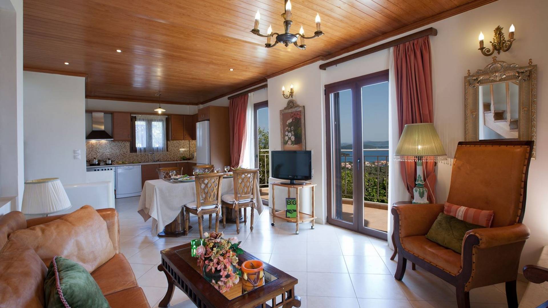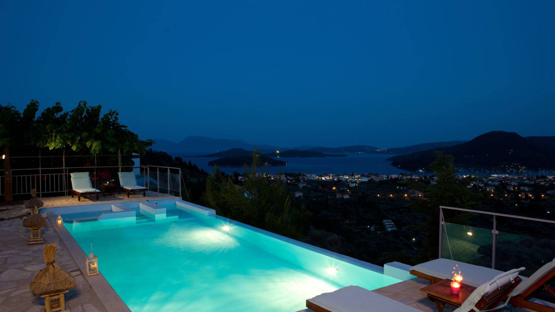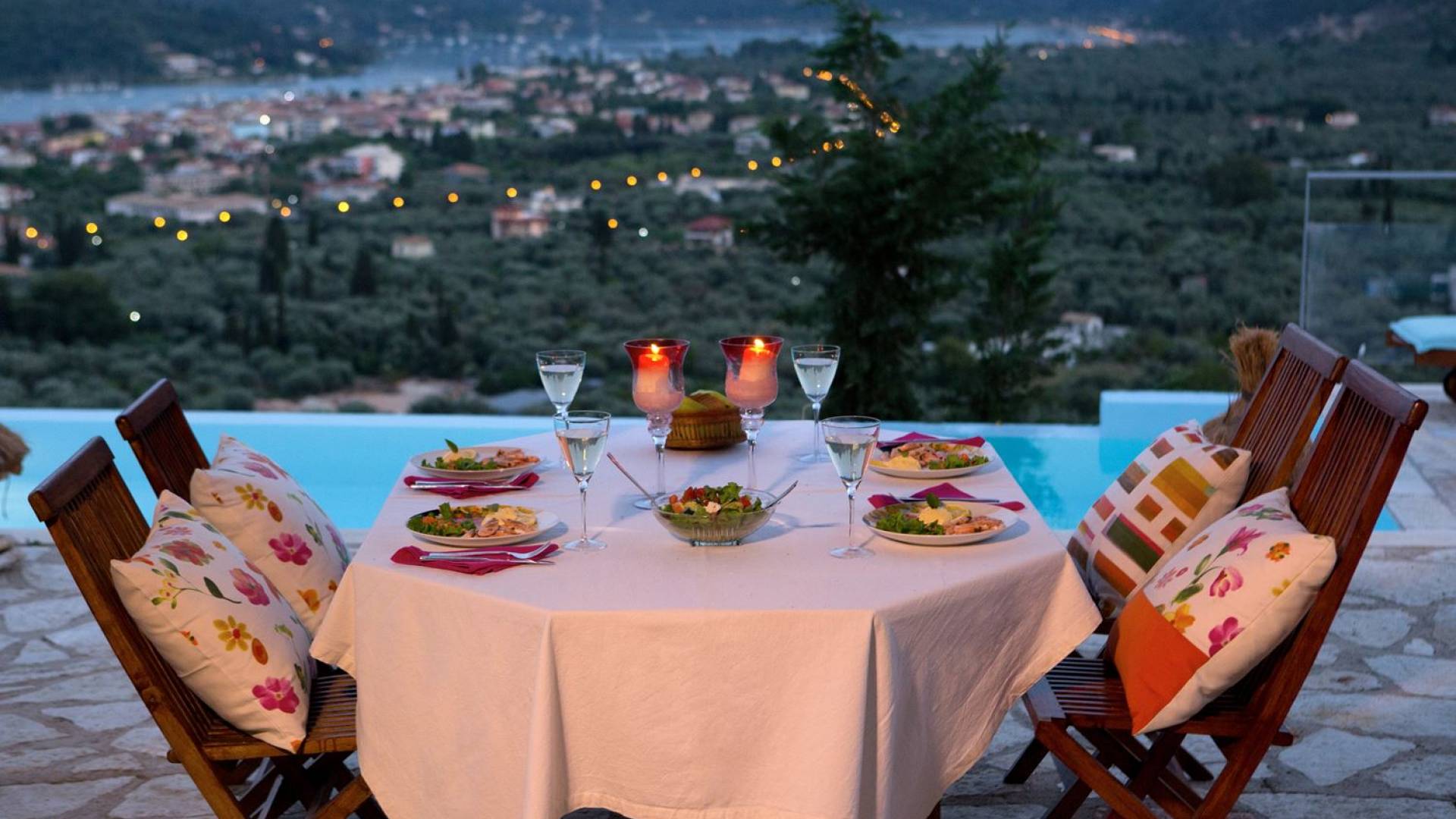 La Villa Lily bénéficie de ses propres piscines privées (séparées pour les adultes et les enfants) et d'un jacuzzi. Depuis le salon, un grand balcon avec de superbes vues panoramiques sur la mer couvre la mer Ionienne, le village de Nydri, la baie de Vlycho et les îles (Scorpios of Onassis, Meganissi et Ithaca - Odysseus Island), meublé d'une table et de chaises pour permettre vous de dîner en plein air. La villa contient trois chambres doubles en suite, ce qui est idéal pour les familles, les amis, les couples qui recherchent des vacances reposantes. Il y a beaucoup de choses à voir et à faire dans les environs pendant votre séjour.