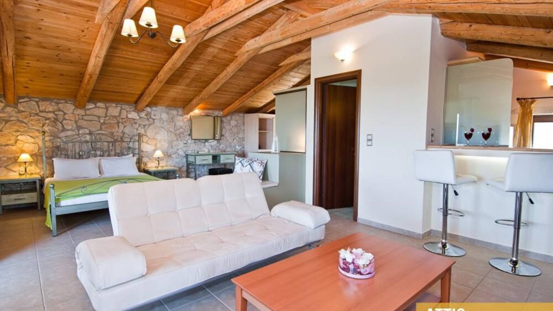 Les villas ont été construites avec une grande attention et un souci du détail. Les couleurs sont en parfaite harmonie avec la verdure des arbres environnants et le bleu de la mer et se caractérisent par la simplicité et la haute qualité des matériaux utilisés. Les environs sont vraiment exquis, avec une vue sur le lac Keri et la magnifique île verte de Marathonisi. L'indépendance totale de chaque villa, le luxe subtil et la nature calme sont idéales pour des promenades relaxantes et des baignades dans la mer d'un bleu limpide.