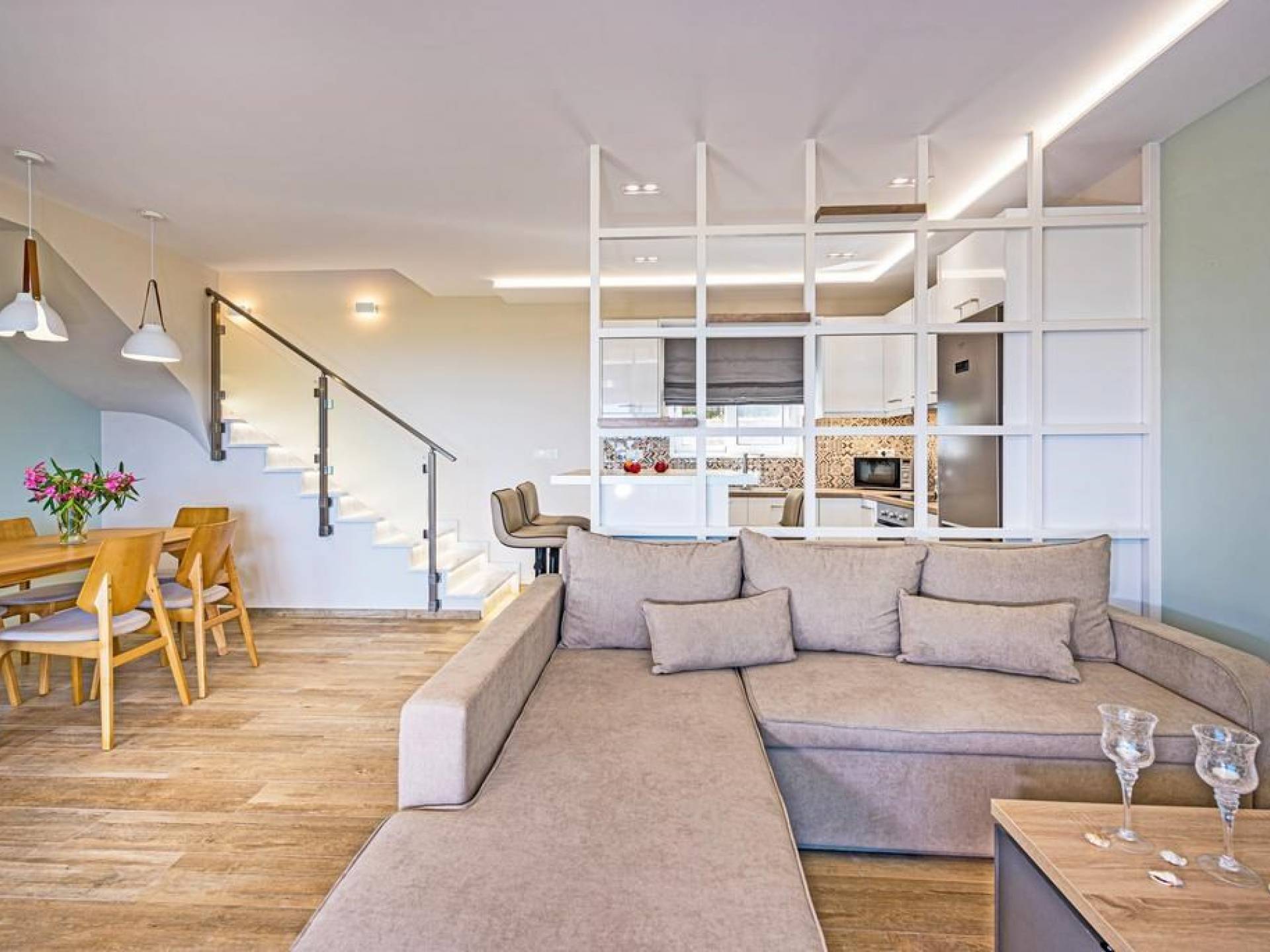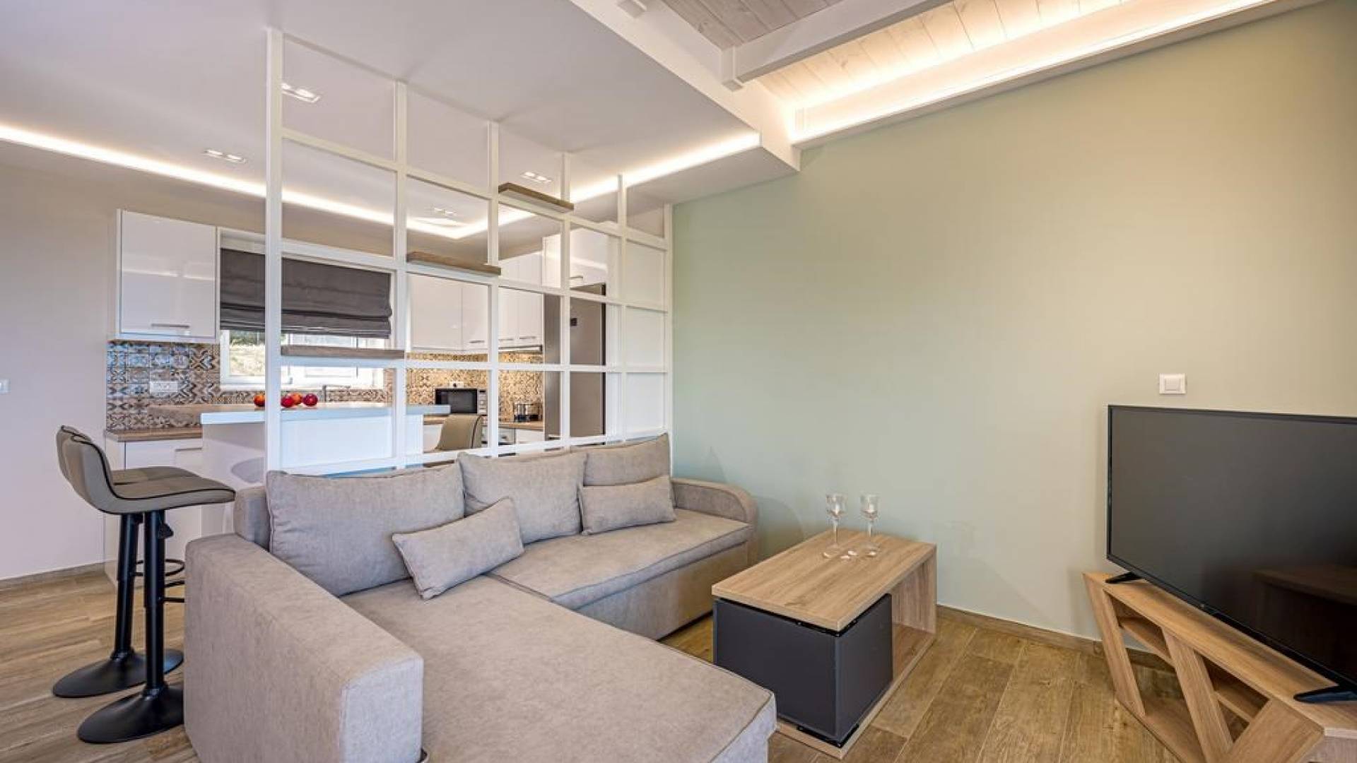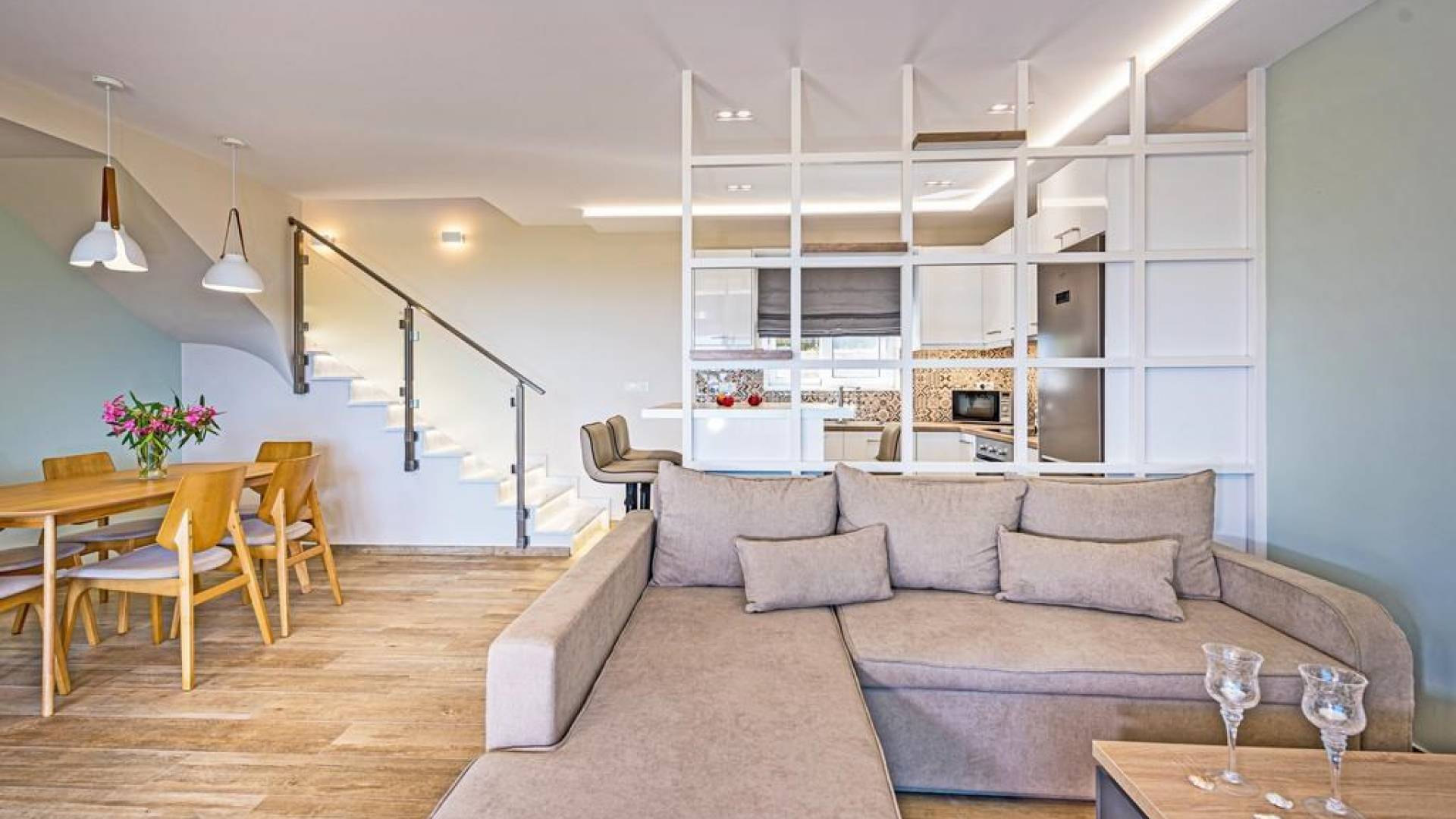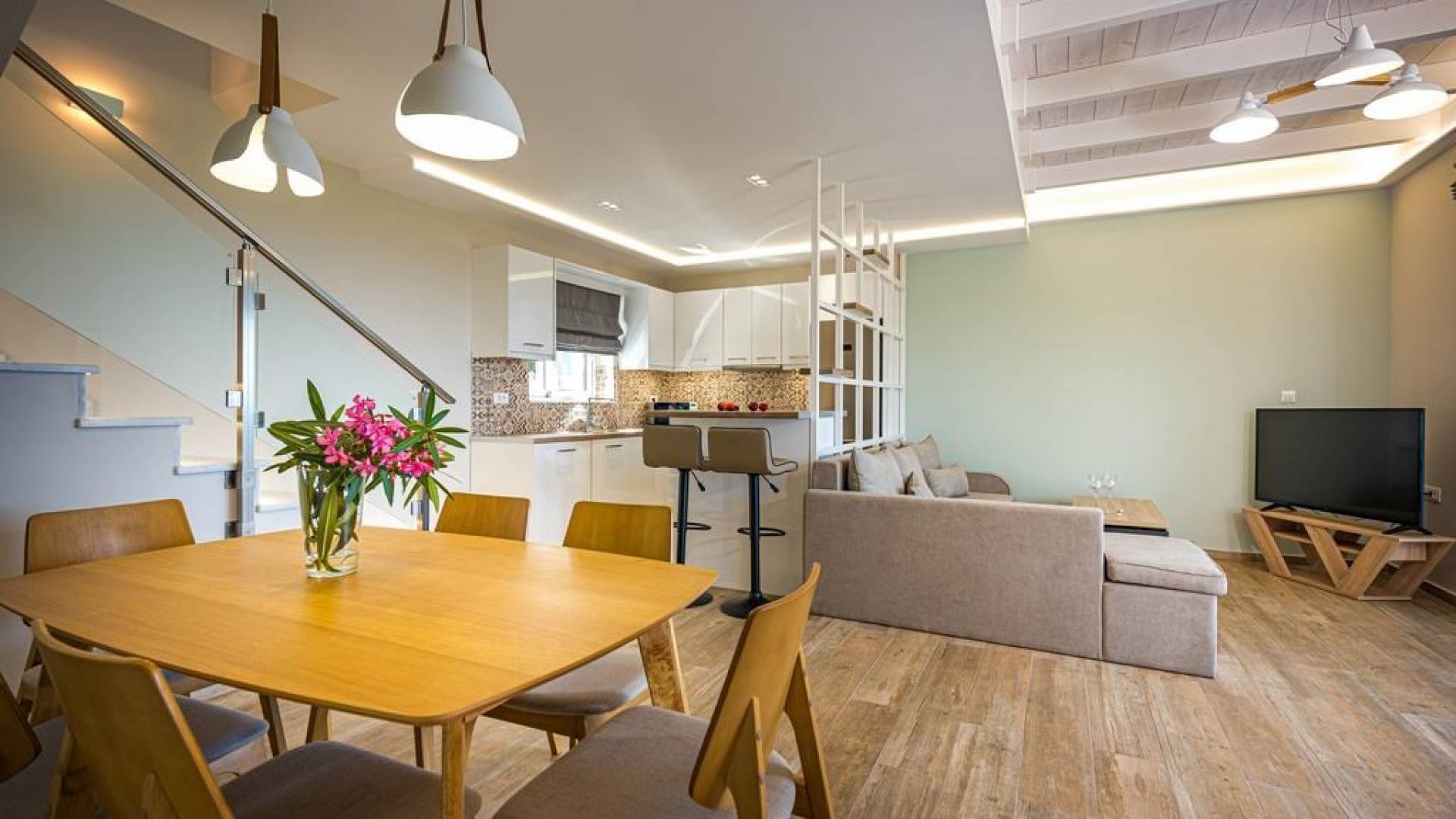 Une palette de couleurs relaxante et élégante est utilisée dans toute la villa, utilisant du blanc pur et du gris clair et des bois pour créer un environnement tranquille. La villa comportait un salon clair et aéré avec un grand canapé de couleur gris clair et une table à manger et des chaises. La cuisine confortable est entièrement équipée avec toutes les commodités pour vous offrir tous vos repas préférés de jour comme de nuit.