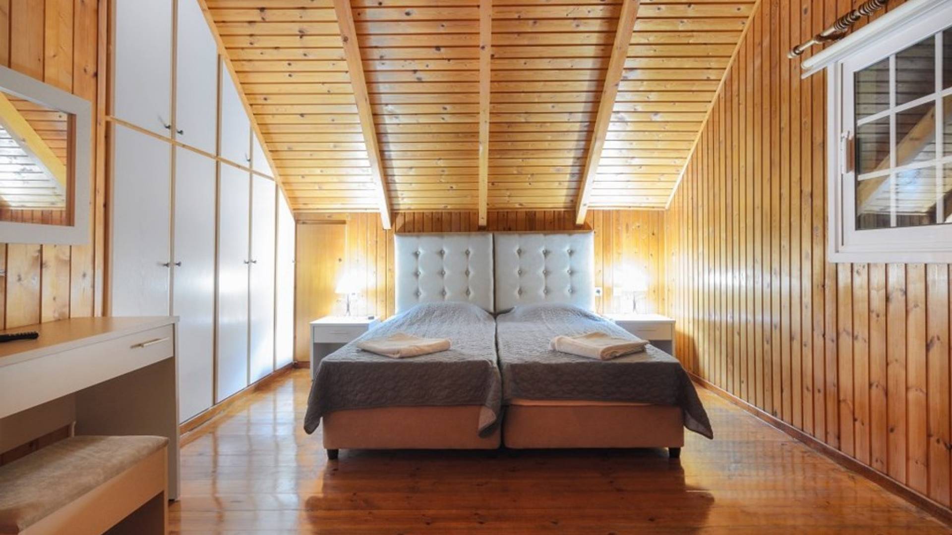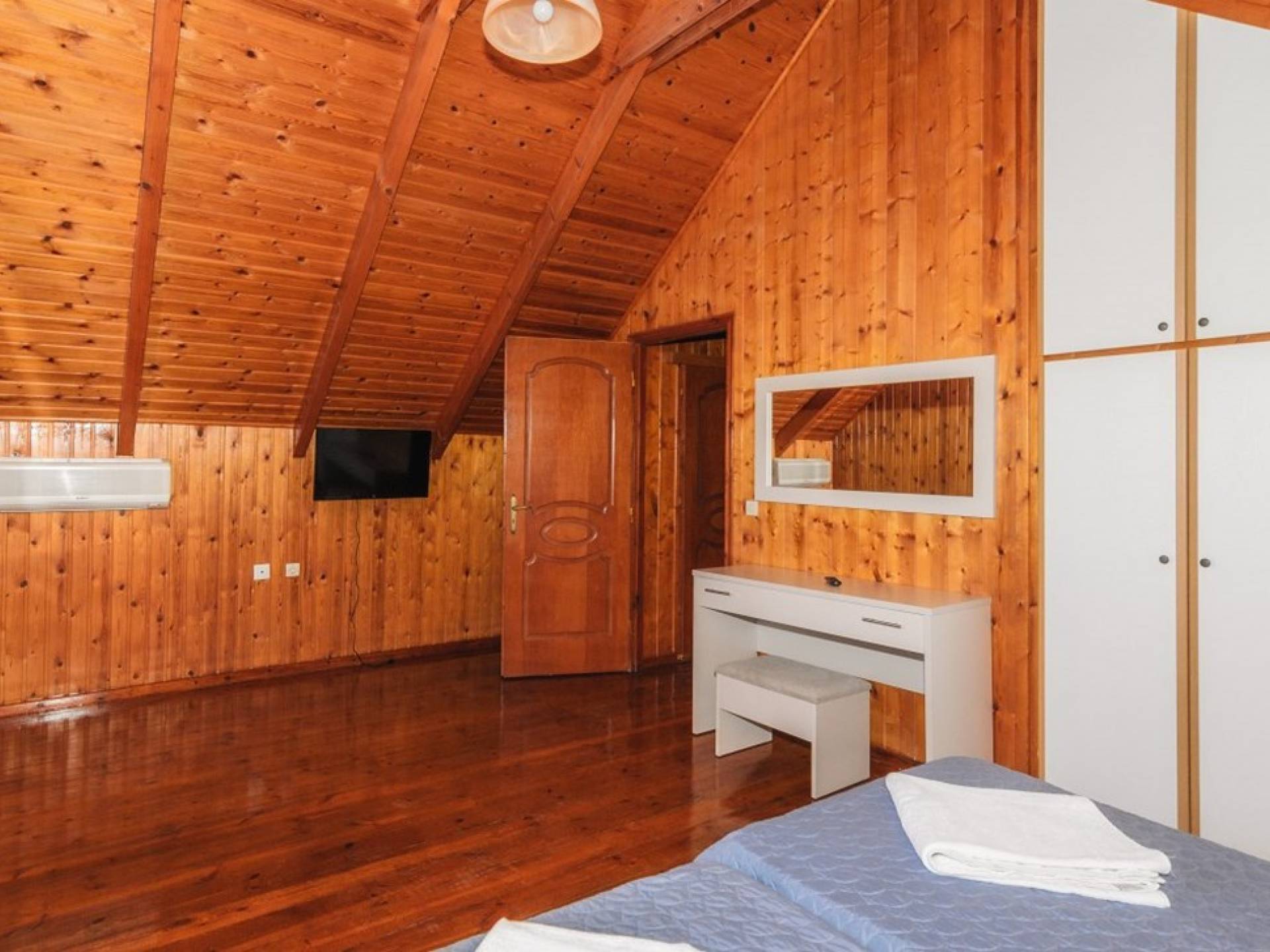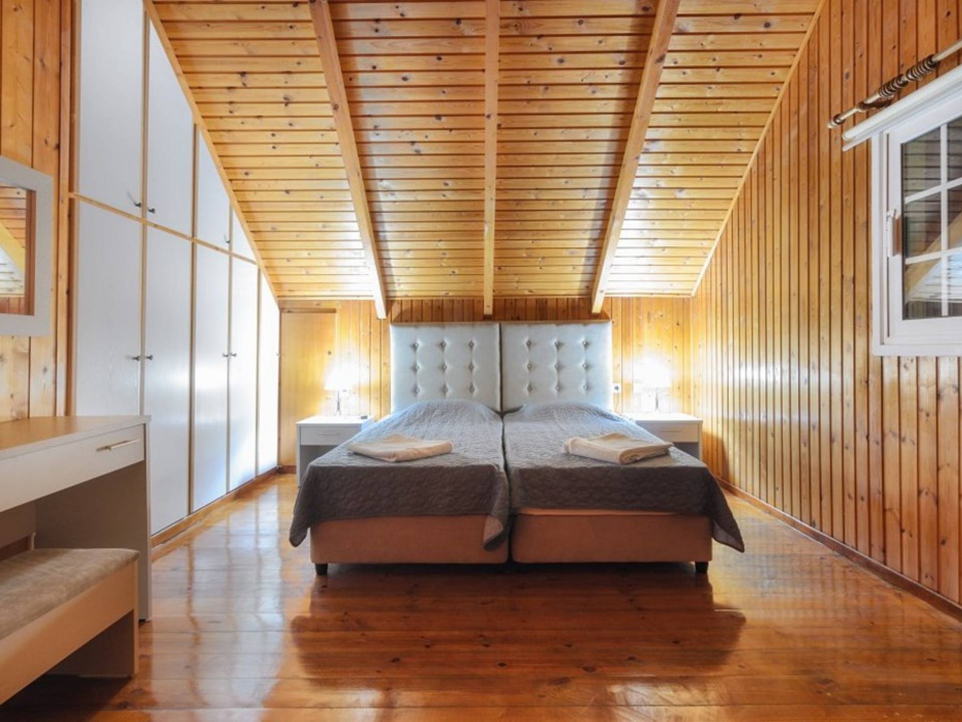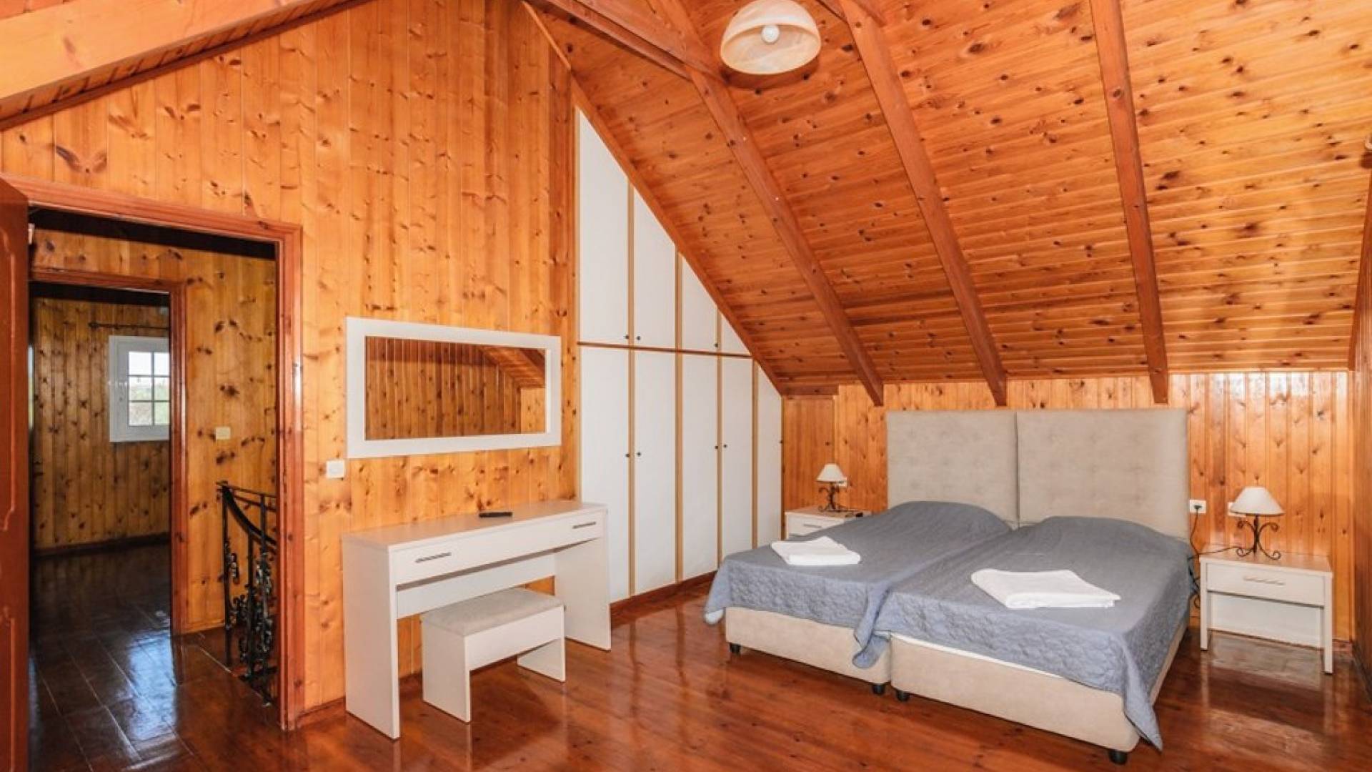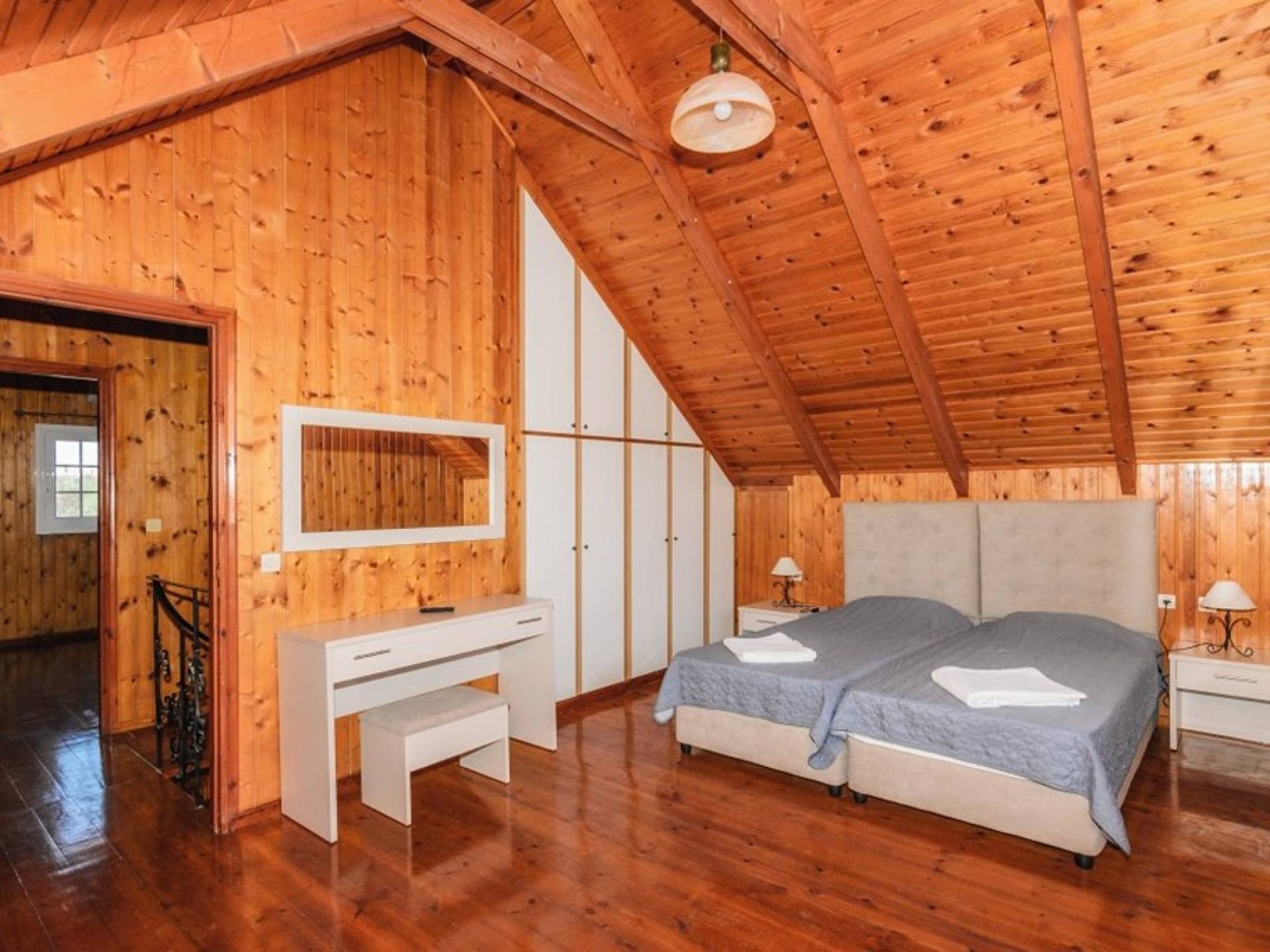 Les escaliers intérieurs mènent au grenier, où se trouvent 2 autres chambres et 1 salle de bains avec douche. Chaque chambre a sa propre unité A / C, TV à écran plat et vue sur les environs. Une chambre comprend un lit double, tandis que l'autre 2 lits simples.