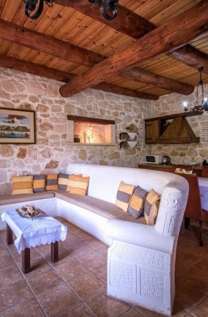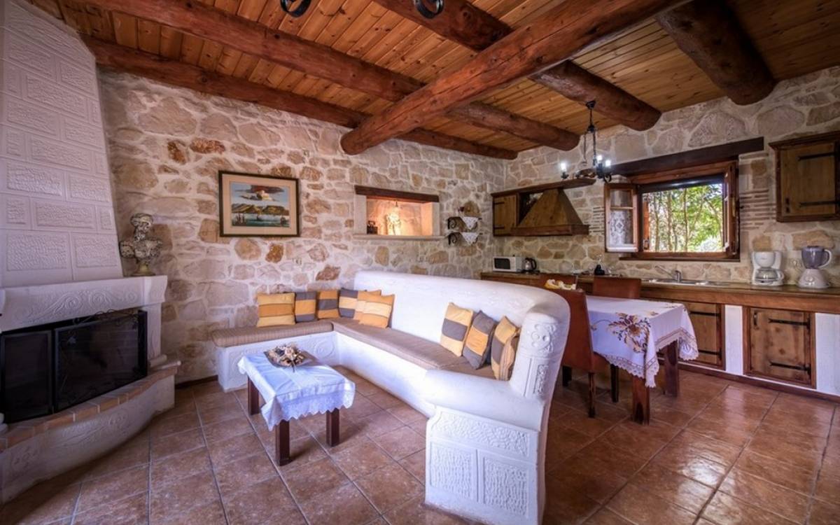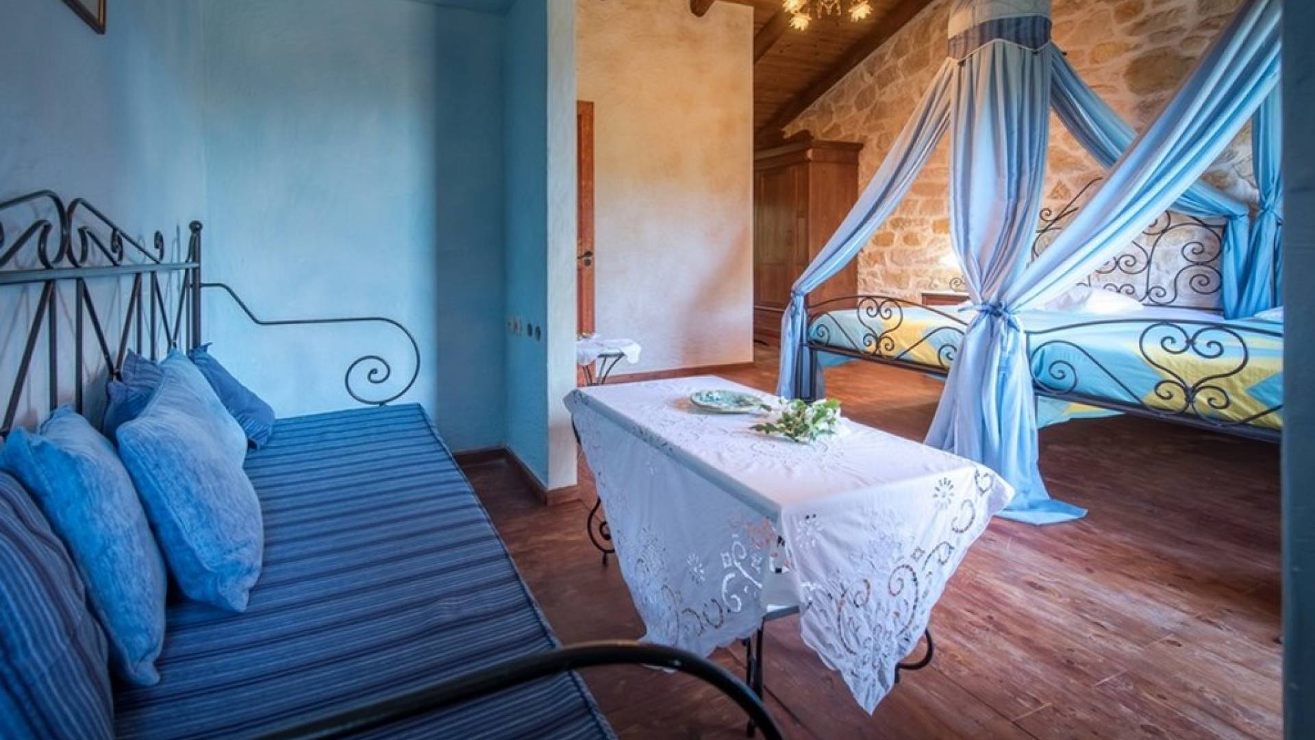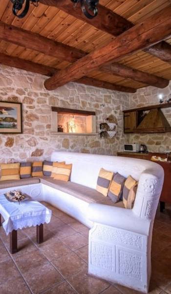 Profitez du calme et de la tranquillité à l'ombre des oliviers vivaces appelés "Dopies" d'où sont suspendus des hamacs ou même asseyez-vous dans le bosquet sur les bancs en bois installés dans une ferme à l'écart des maisons. De plus, les environs sont parfaits pour ceux qui souhaitent se promener dans les champs, lire un livre ou profiter des bienfaits de la nature. Faites le tour de l'étang et nourrissez les canards, les oies et les autres animaux de la ferme. Les enfants s'amuseront beaucoup et adoreront l'aire de jeux, sécurisée puisque le domaine est clos de murs en pierre.