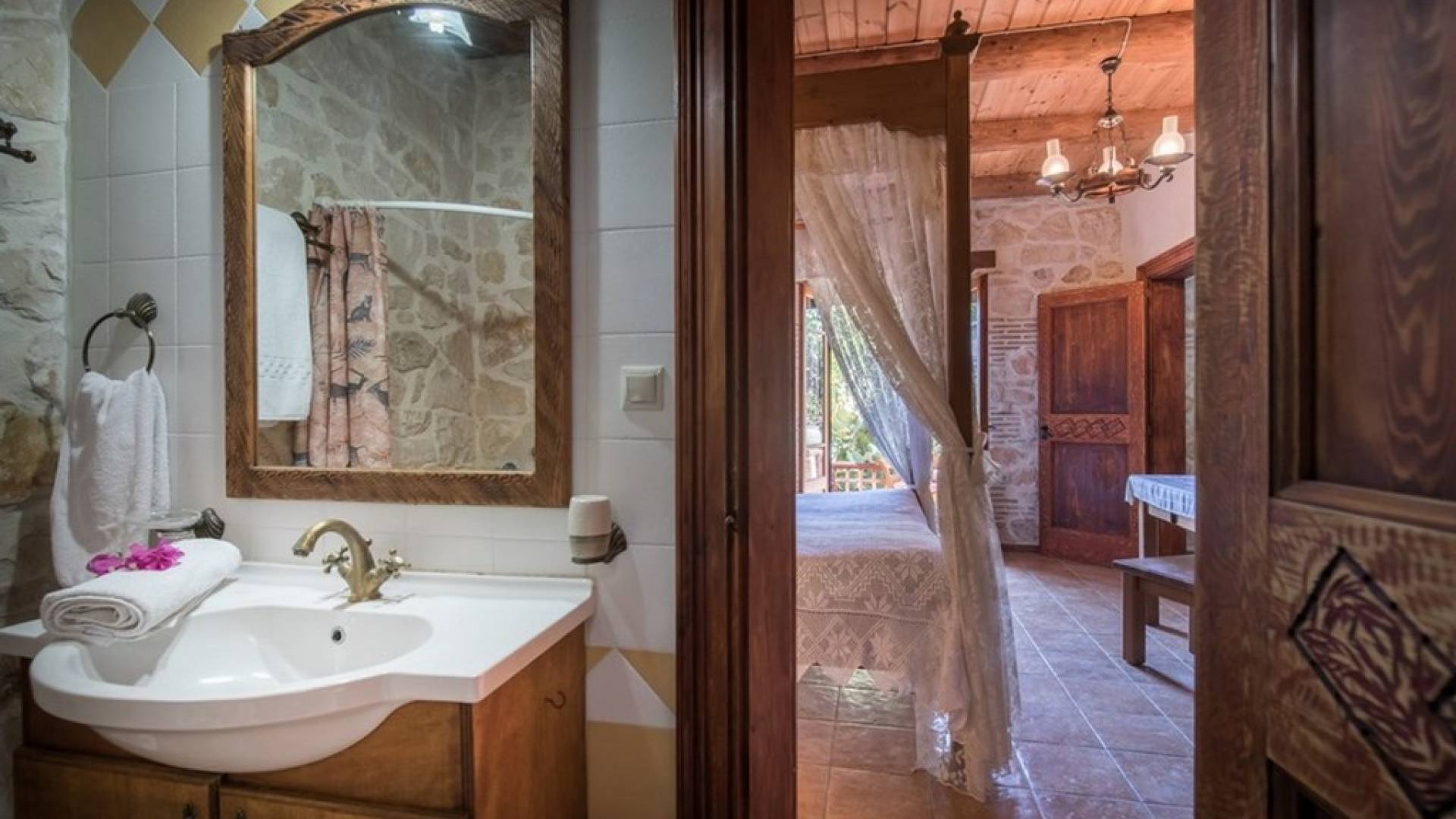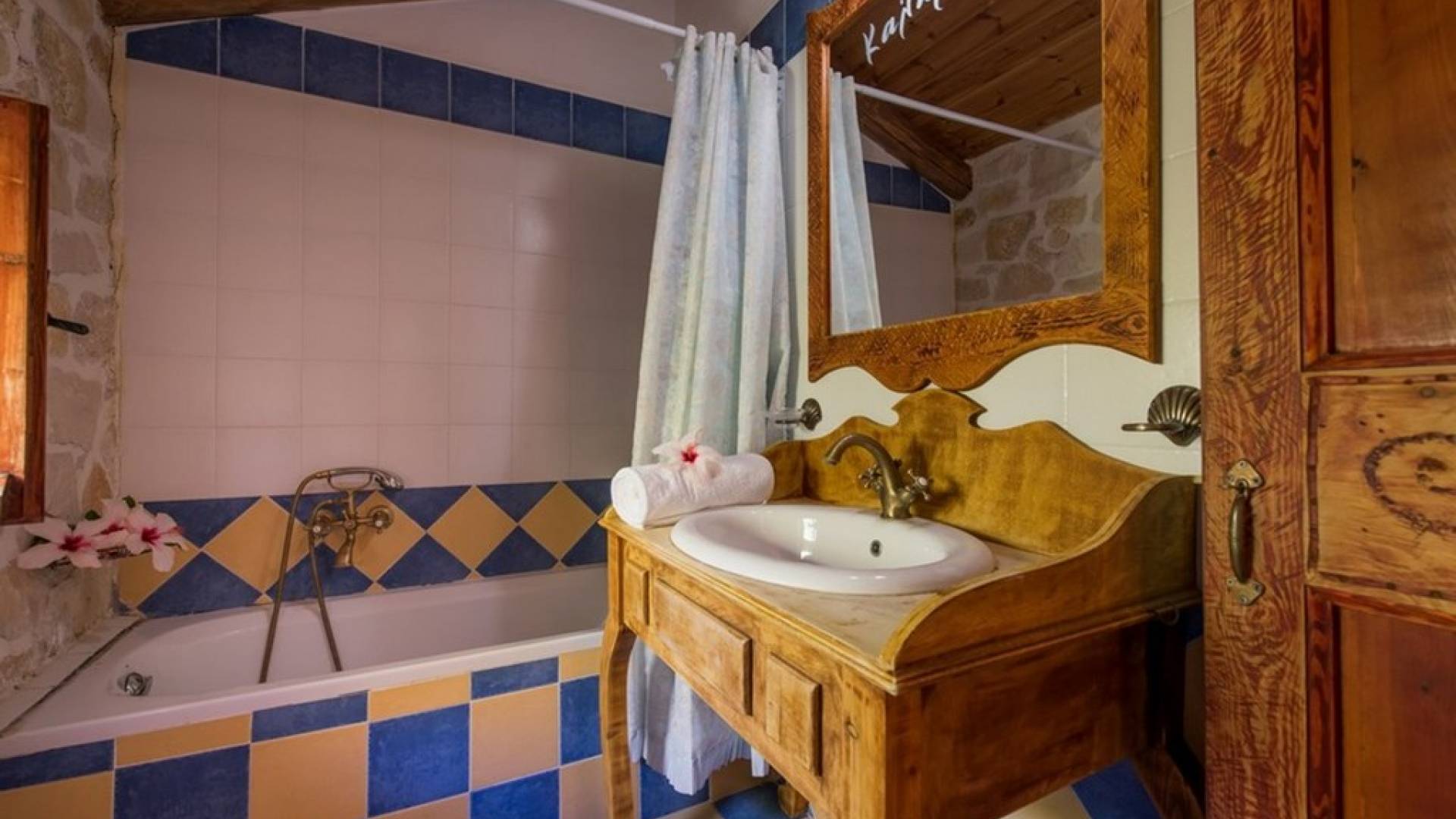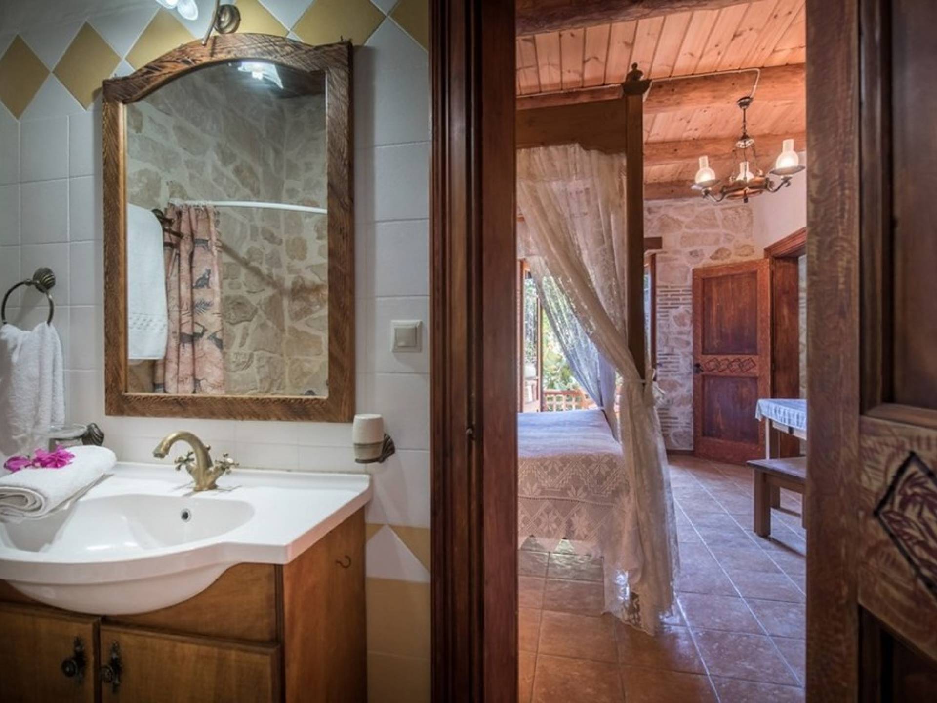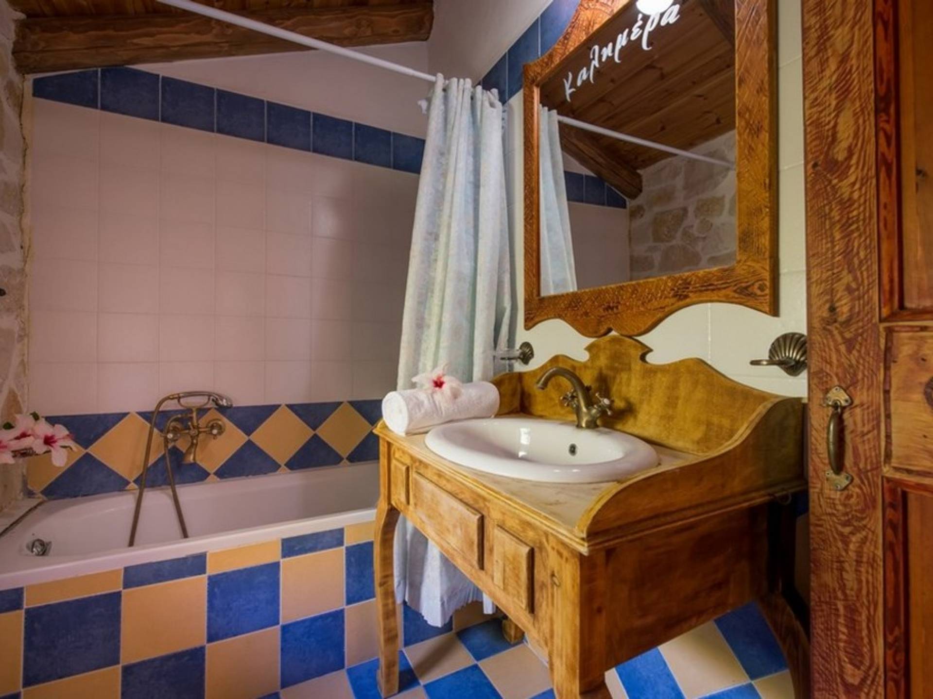 Dans ce cadre rustique, vous trouverez une grande cuisine avec toutes les commodités dont un four, un réfrigérateur, une machine à café, une bouilloire, un grille-pain, un mixeur et un coin repas spacieux. Il y a aussi un W.C. Le premier étage contient deux chambres supplémentaires contenant deux lits doubles avec des draps faits à la main et des rideaux en dentelle, toutes disposent d'une salle de bains privative avec douche et de leurs propres balcons meublés privés. Les chambres ont été décorées avec des meubles en fer forgé et dans les tons de terre et de ciel.