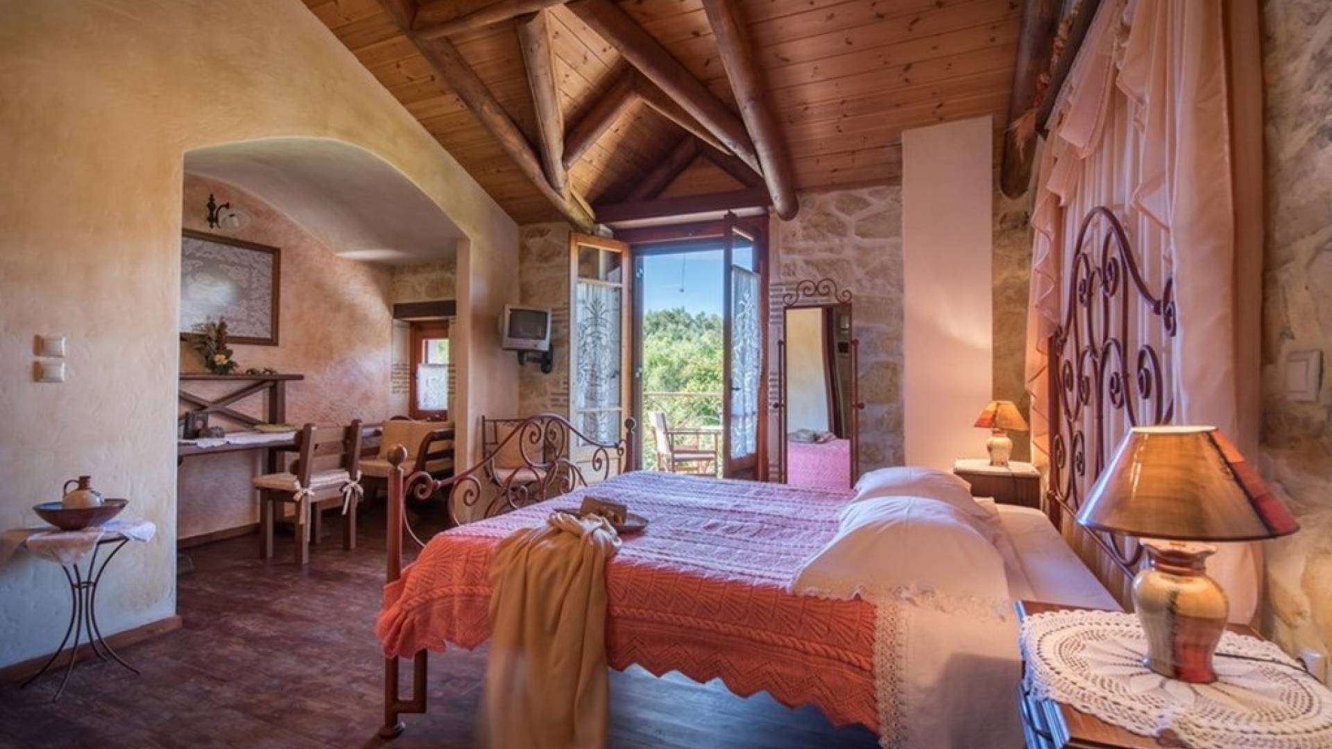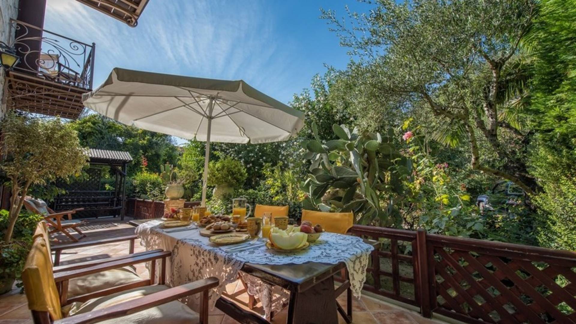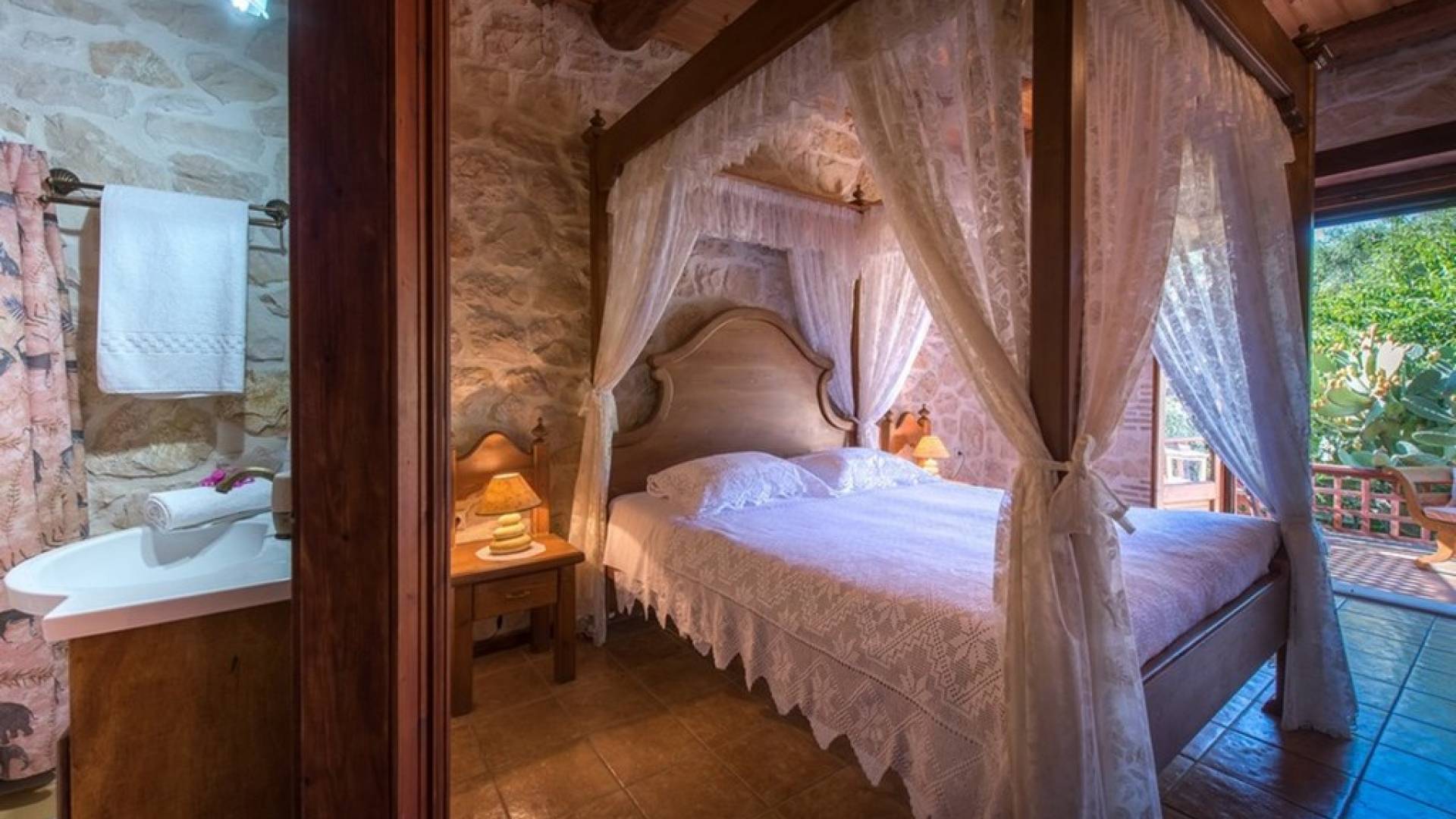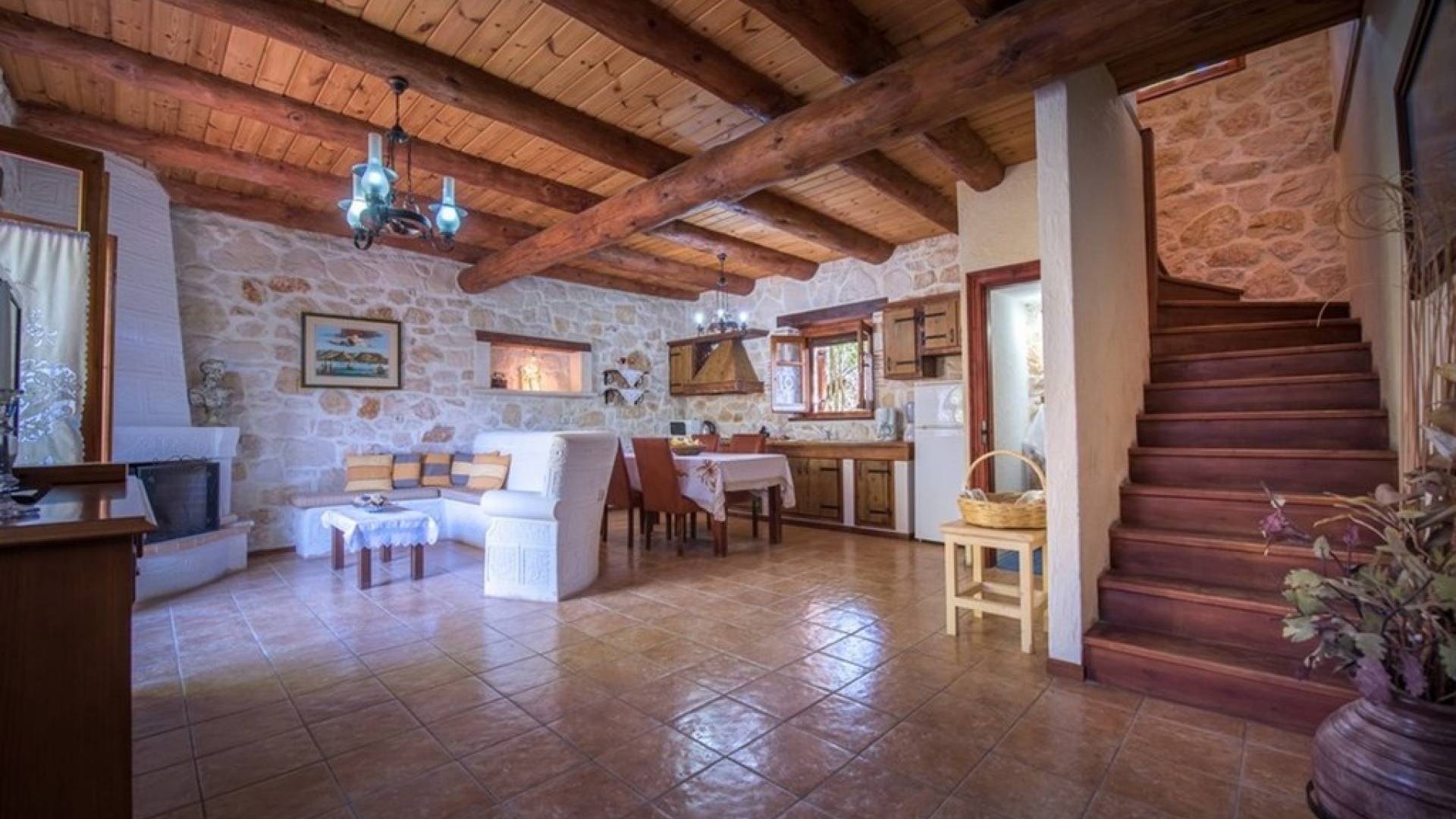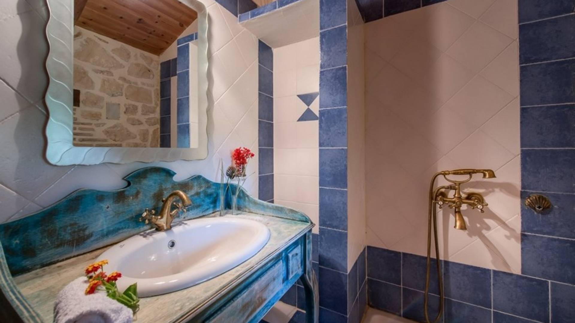 Dans ce cadre rustique, vous trouverez une grande cuisine avec toutes les commodités dont un four, un réfrigérateur, une machine à café, une bouilloire, un grille-pain, un mixeur et un coin repas spacieux. Il y a aussi un W.C. Le premier étage contient deux chambres supplémentaires contenant deux lits doubles avec des draps faits à la main et des rideaux en dentelle, toutes disposent d'une salle de bains privative avec douche et de leurs propres balcons meublés privés. Les chambres ont été décorées avec des meubles en fer forgé et dans les tons de terre et de ciel.