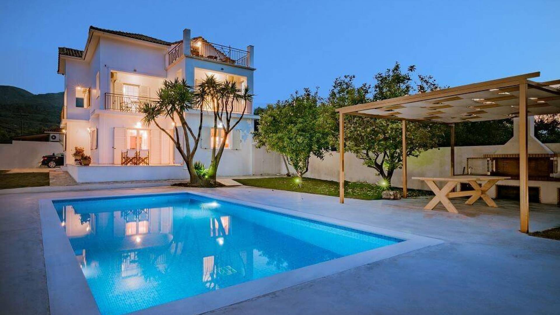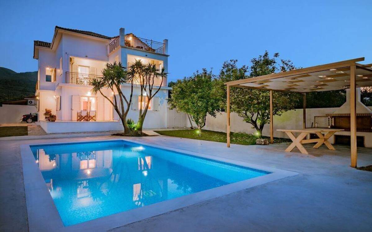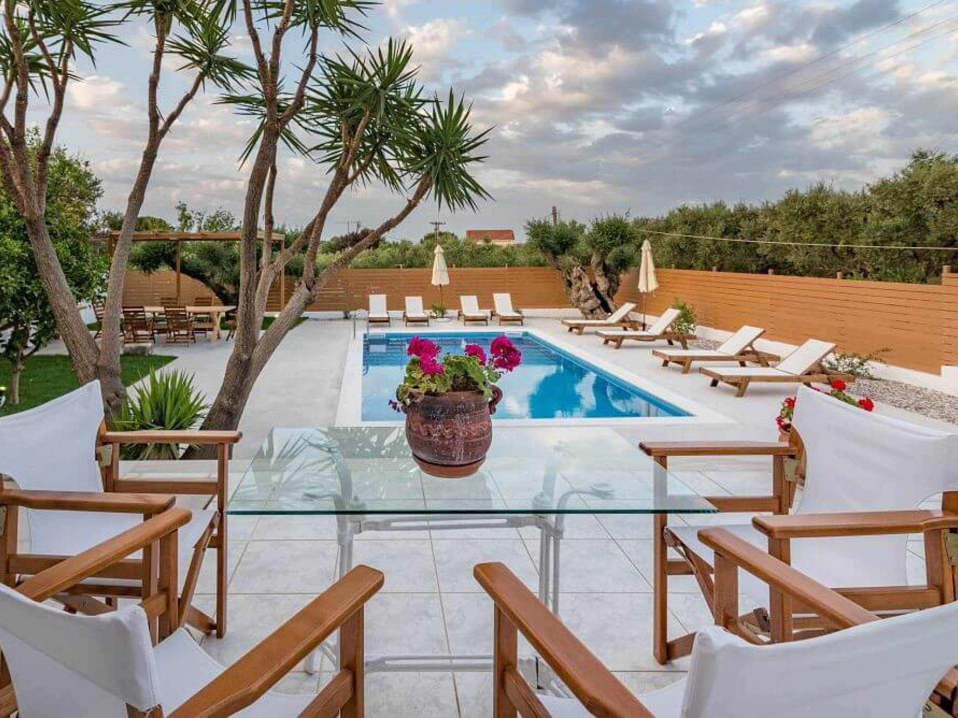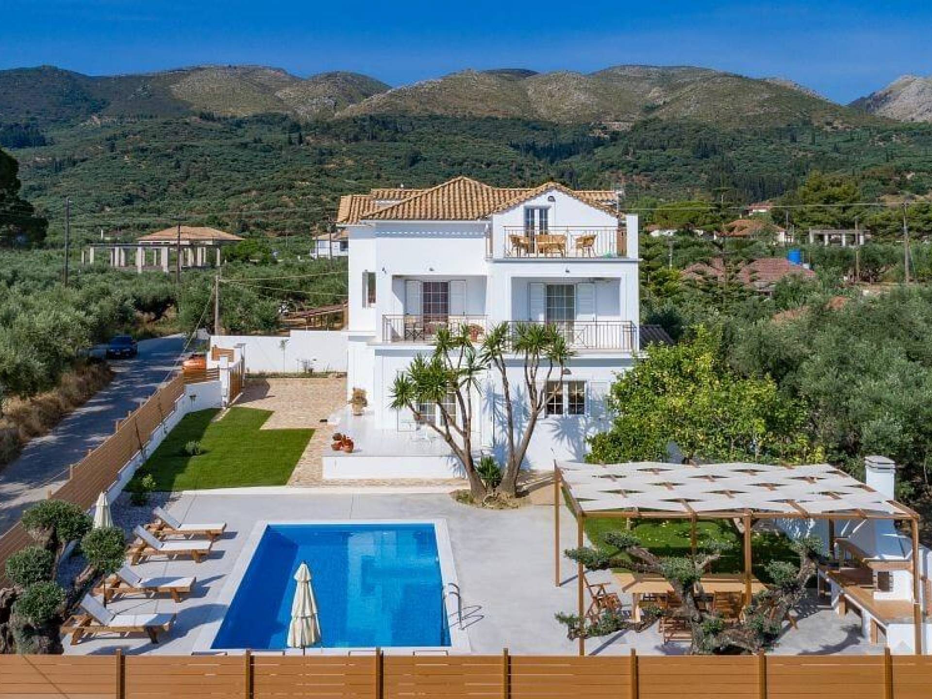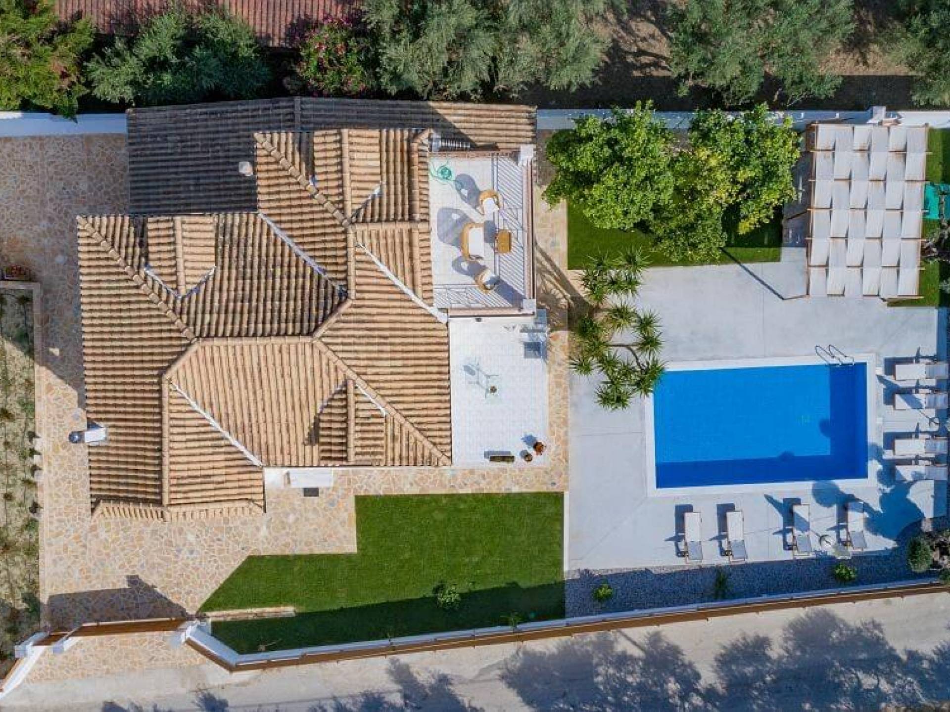 Status Villa, une villa avec piscine privée sur 3 niveaux avec 4 chambres au total, dont un grenier et offrant des vues fantastiques. Il est situé à Vougiato, Zante, un village à la campagne, presque au milieu de l'île, ce qui le rend idéal pour l'organisation de grandes excursions dans la partie nord, comme la plage de Navagio ou les Grottes Bleues.