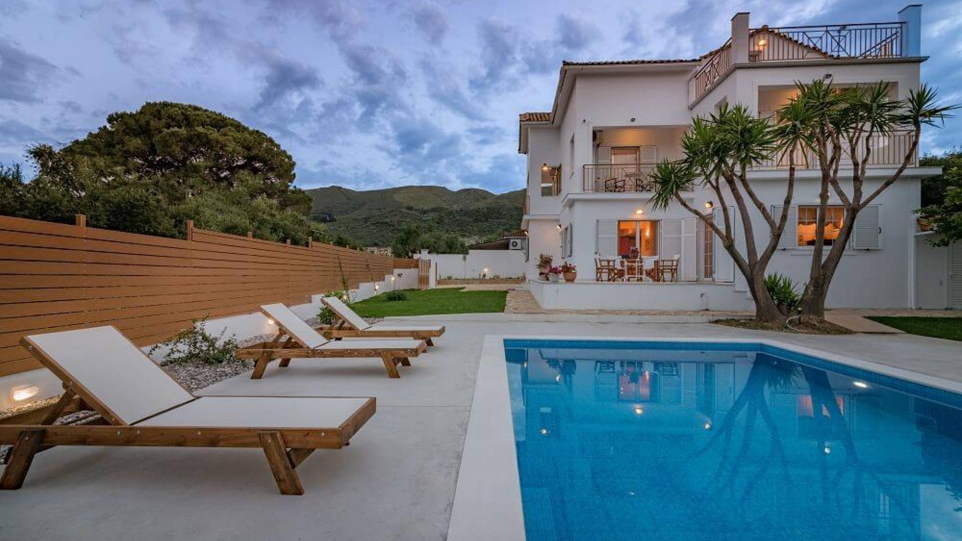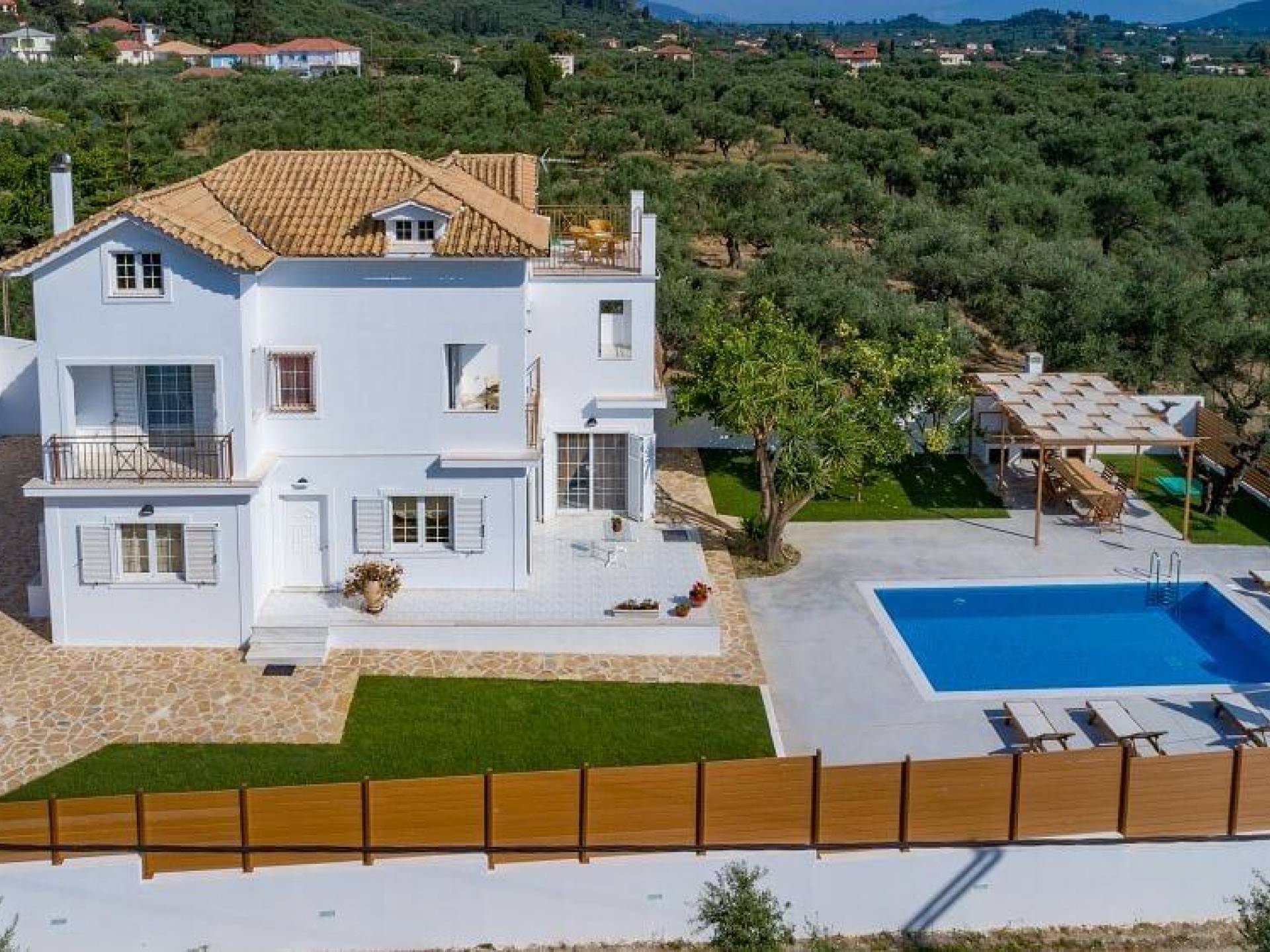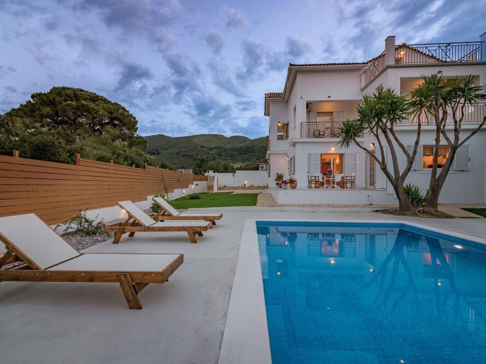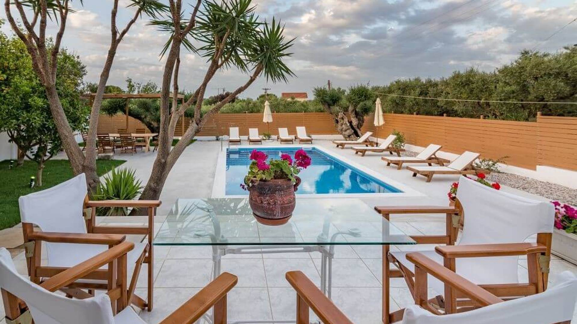 Status Villa, une villa avec piscine privée sur 3 niveaux avec 4 chambres au total, dont un grenier et offrant des vues fantastiques. Il est situé à Vougiato, Zante, un village à la campagne, presque au milieu de l'île, ce qui le rend idéal pour l'organisation de grandes excursions dans la partie nord, comme la plage de Navagio ou les Grottes Bleues.