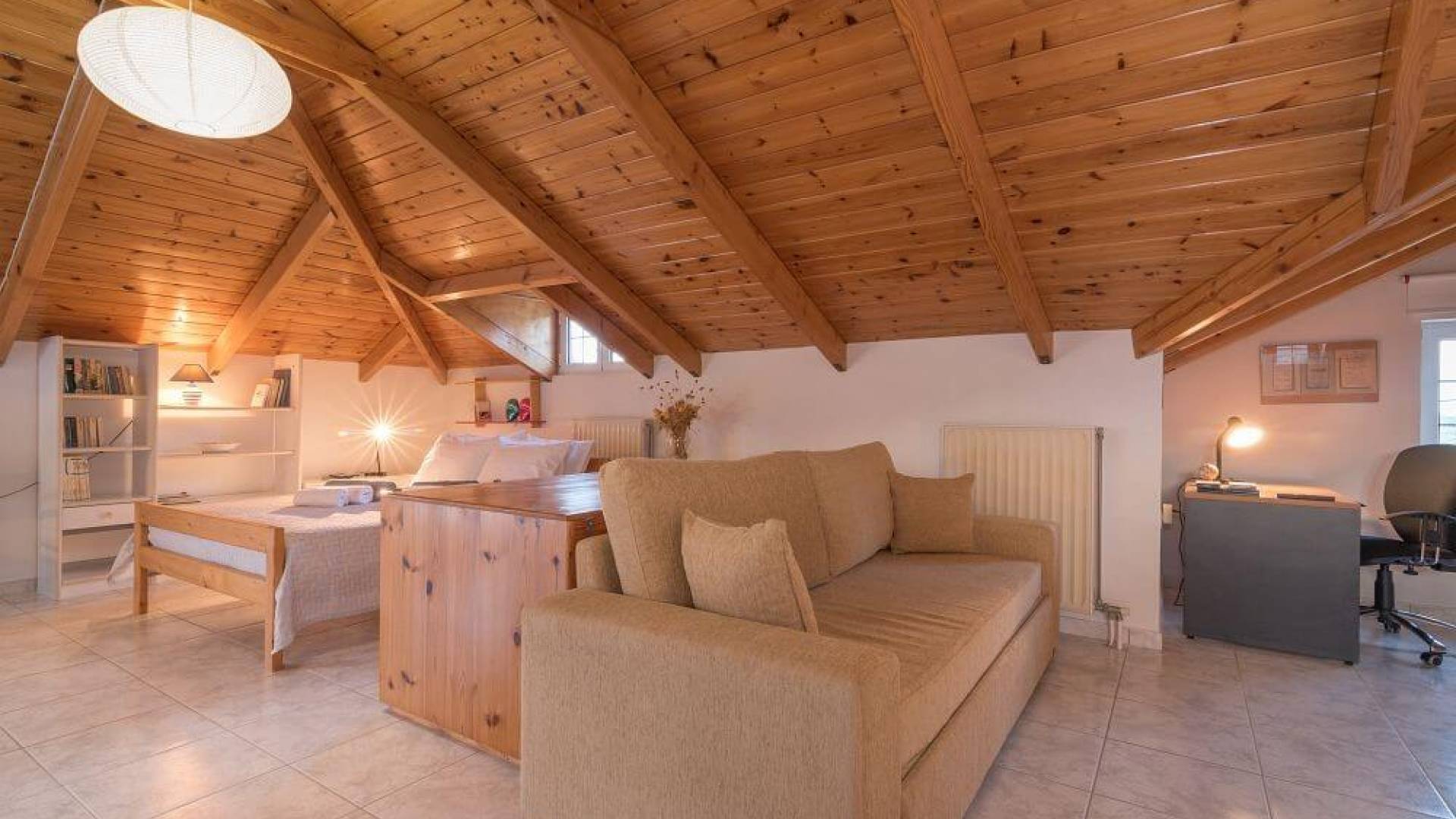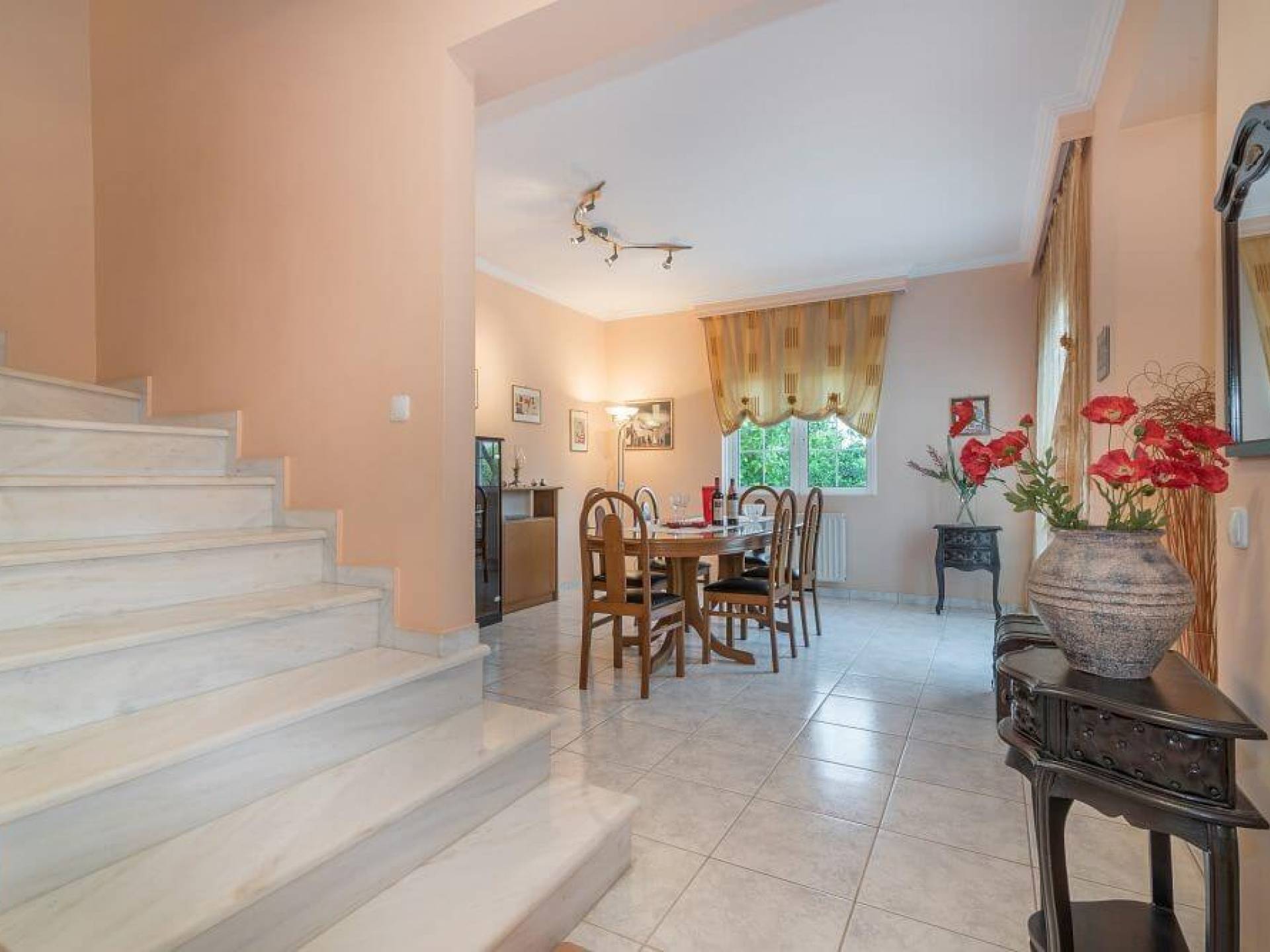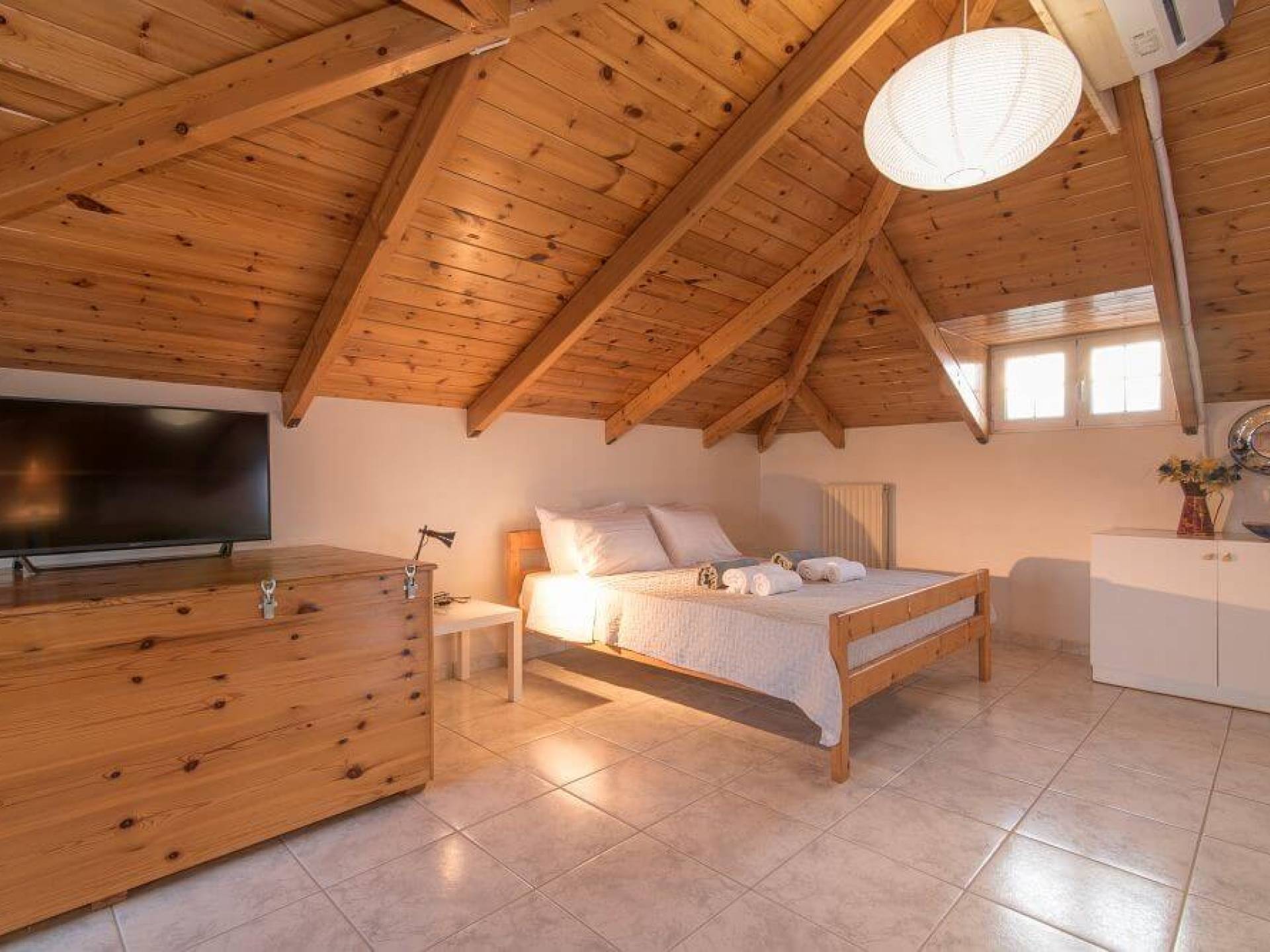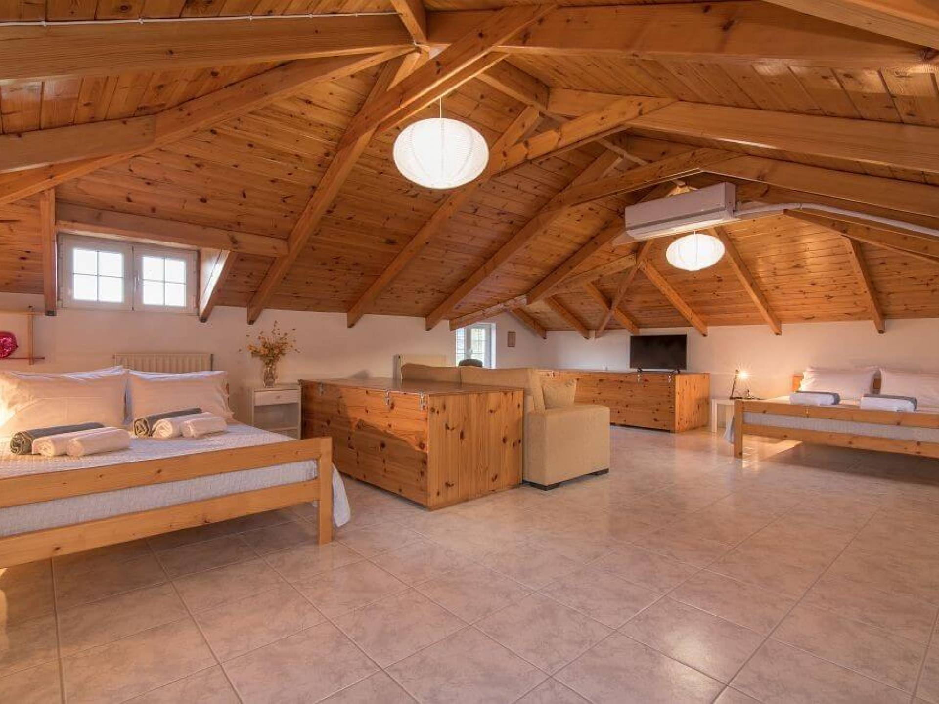 Status Villa et les extérieurs sont spacieux et rendront votre séjour calme et détendu. Promenez-vous dans les champs d'oliviers, puis baignez-vous dans la piscine et profitez du soleil grec dans un environnement paisible. Cette location de vacances peut accueillir au total 10+2 personnes, dans 3 chambres et le studio au grenier. Une piscine privée, un barbecue et un parking privé sont quelques-unes des installations fournies. L'entrée de la Villa Status se trouve dans le salon et la cuisine américaine et en passant par eux, vous trouverez une salle de bain avec douche et un coin repas séparé. Les escaliers menant au premier étage se trouvent également ici et vous mènent aux chambres.