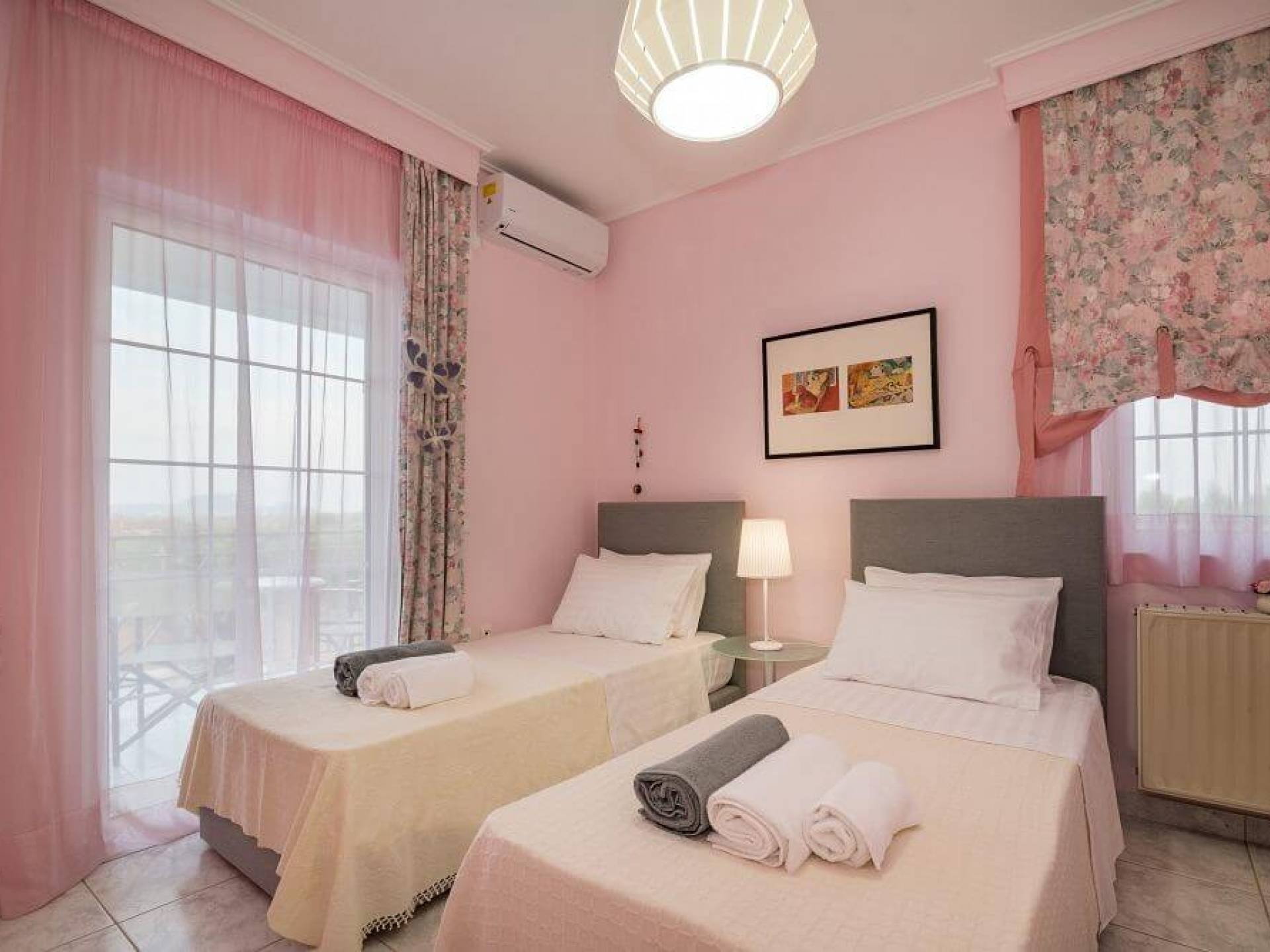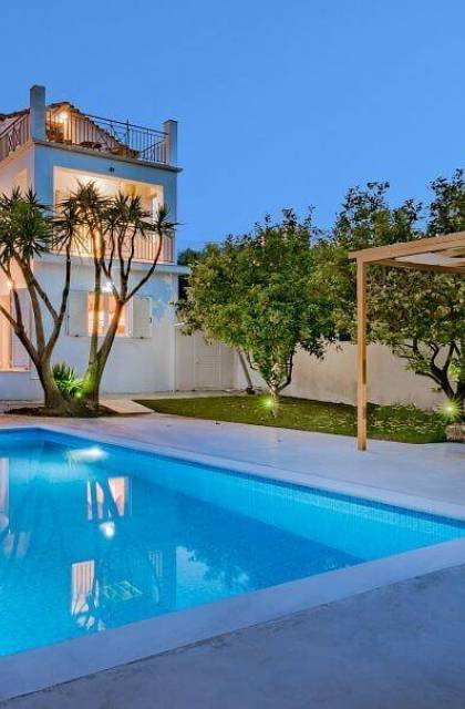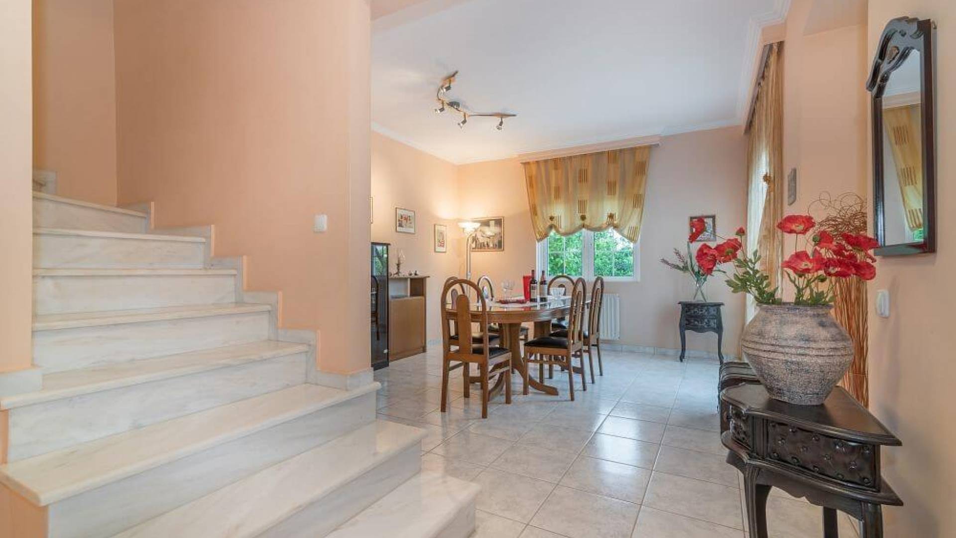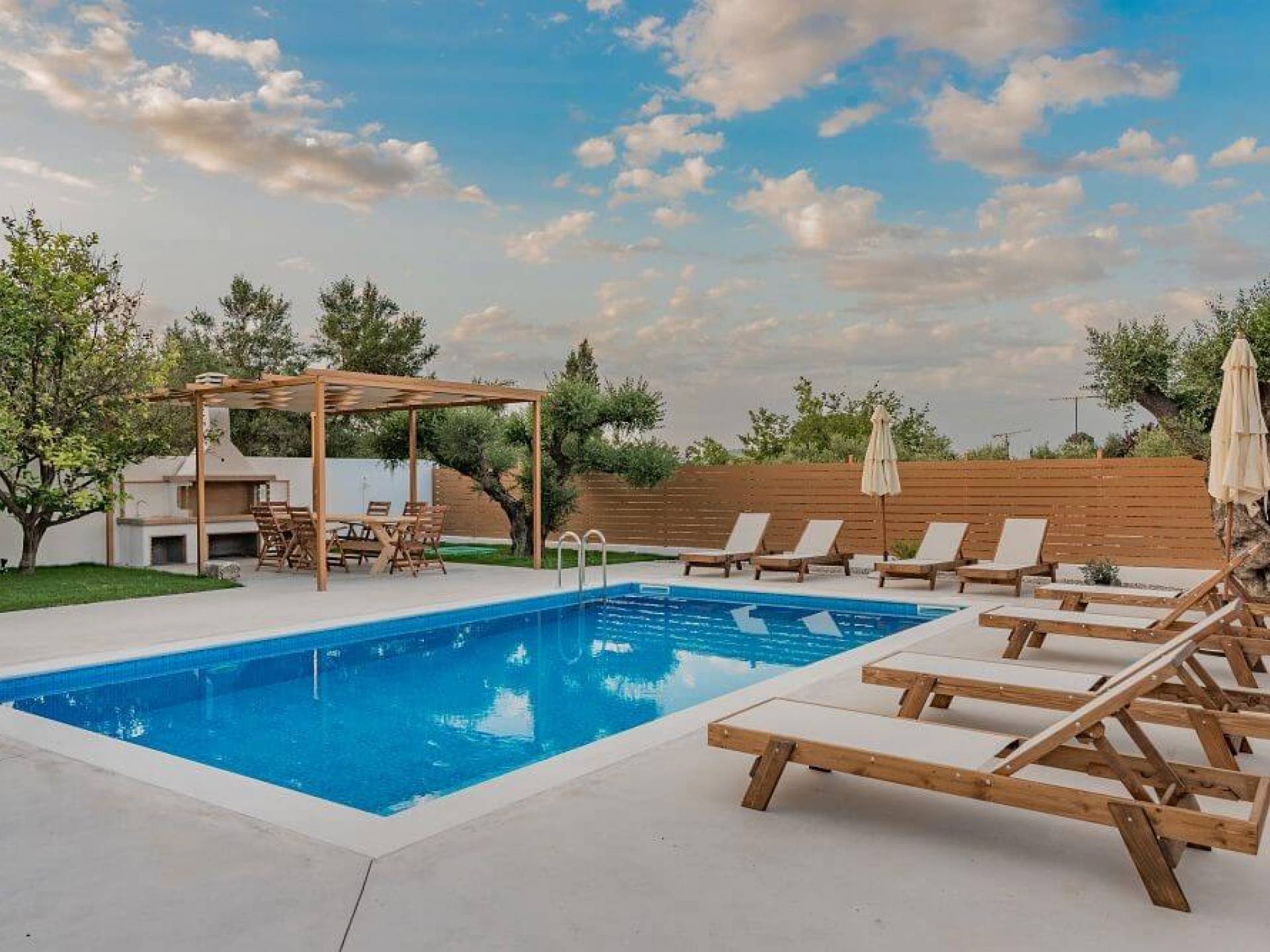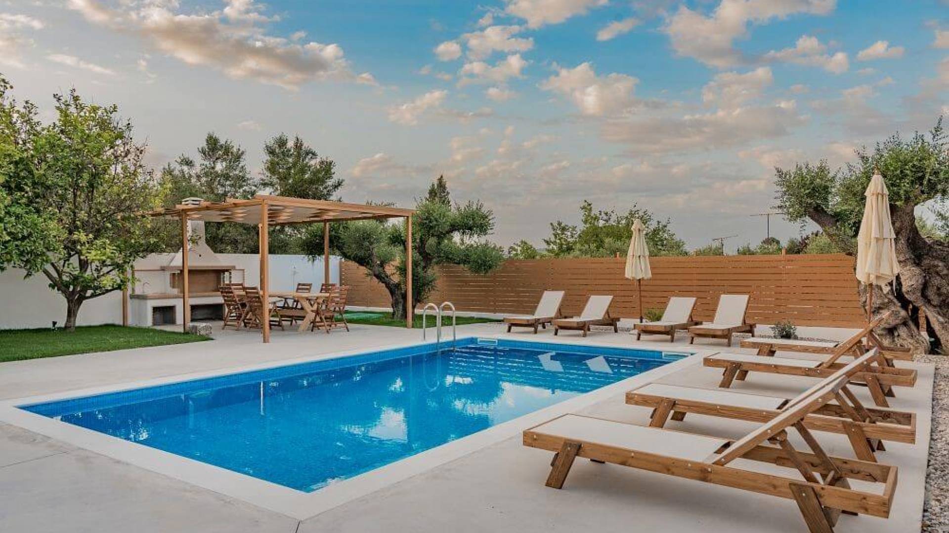 Status Villa et les extérieurs sont spacieux et rendront votre séjour calme et détendu. Promenez-vous dans les champs d'oliviers, puis baignez-vous dans la piscine et profitez du soleil grec dans un environnement paisible. Cette location de vacances peut accueillir au total 10+2 personnes, dans 3 chambres et le studio au grenier. Une piscine privée, un barbecue et un parking privé sont quelques-unes des installations fournies. L'entrée de la Villa Status se trouve dans le salon et la cuisine américaine et en passant par eux, vous trouverez une salle de bain avec douche et un coin repas séparé. Les escaliers menant au premier étage se trouvent également ici et vous mènent aux chambres.