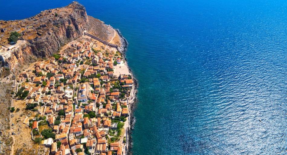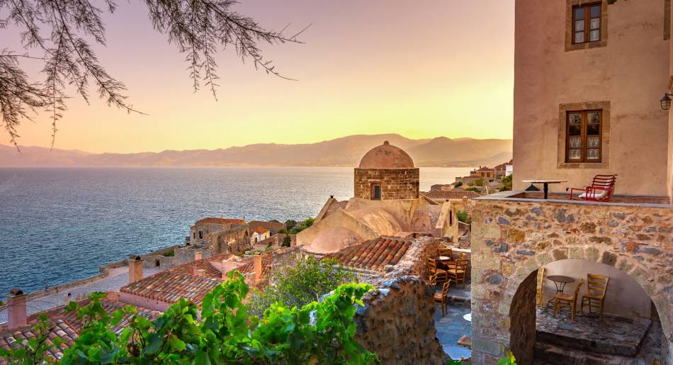 Monemvasia est l'un des endroits les plus impressionnants de Grèce, dans le sud-est du Péloponnèse. La position d'origine de Monemvasia était autrefois à l'arrière d'un rocher marin à l'époque médiévale. Ce rocher n'est pas visible du continent et il a protégé les habitants des attaques ennemies. Le seul moyen d'atteindre Monemvasia était en bateau et c'est ainsi que le nom dérivé, signifiant passage unique. La nouvelle ville de Monemvasia a été construite sur le continent, en face du rocher. Monemvasia est célèbre pour son château; une promenade dans la ville du château est un voyage dans le passé, tandis que la vue sur la mer depuis le sommet du château est difficile à traduire.