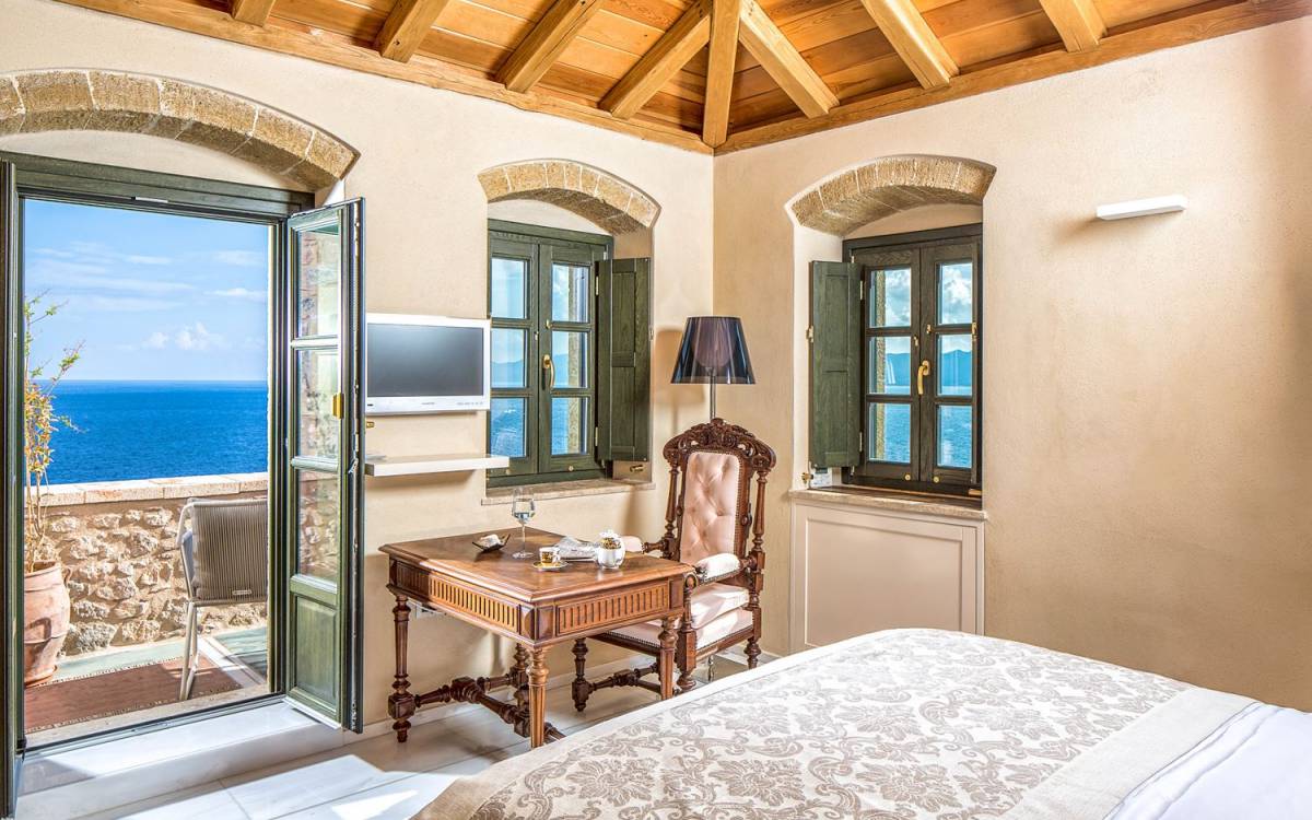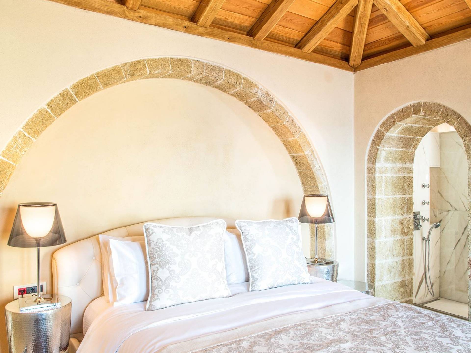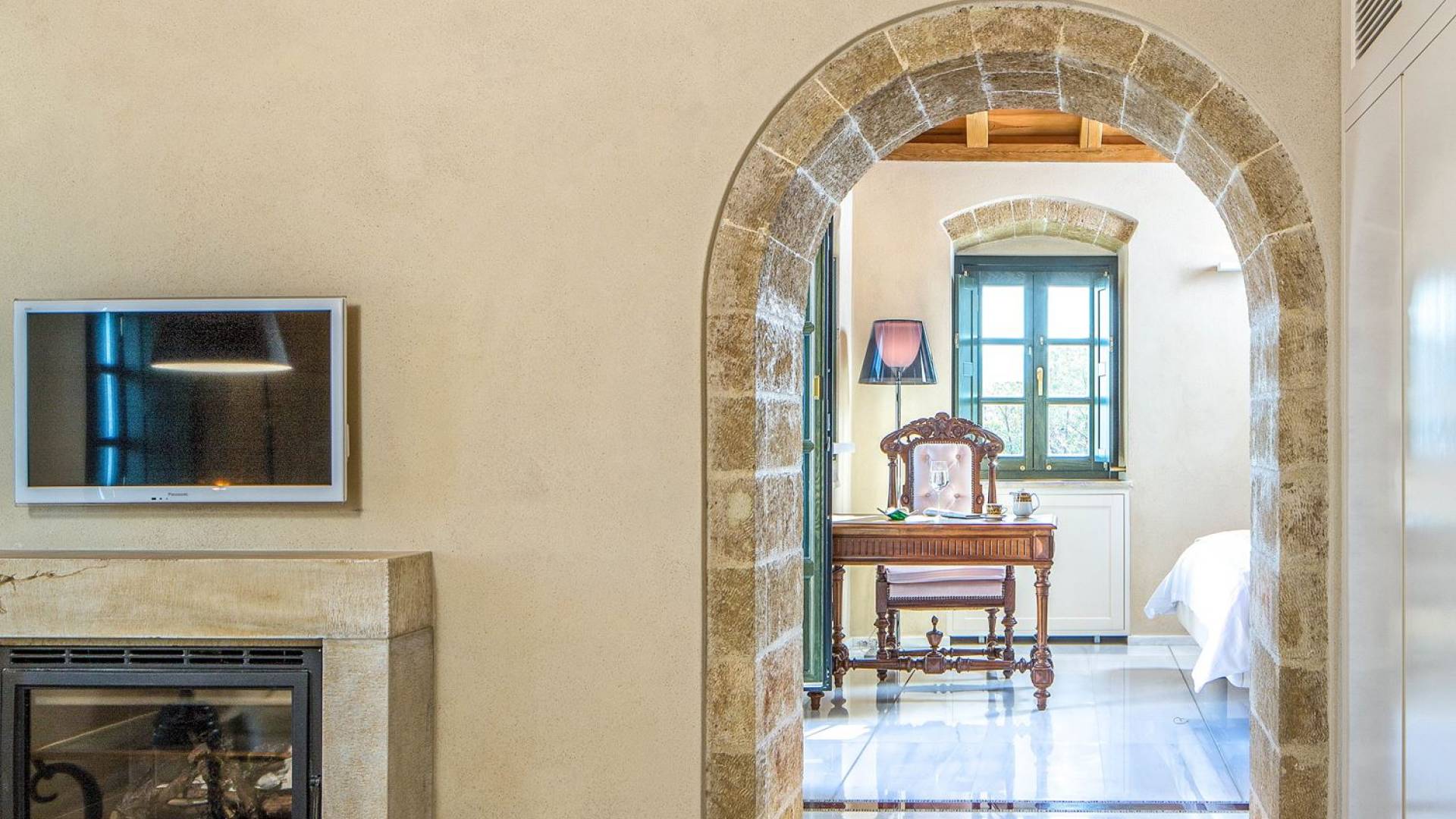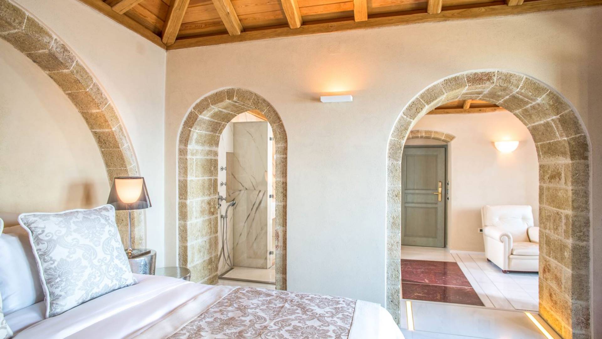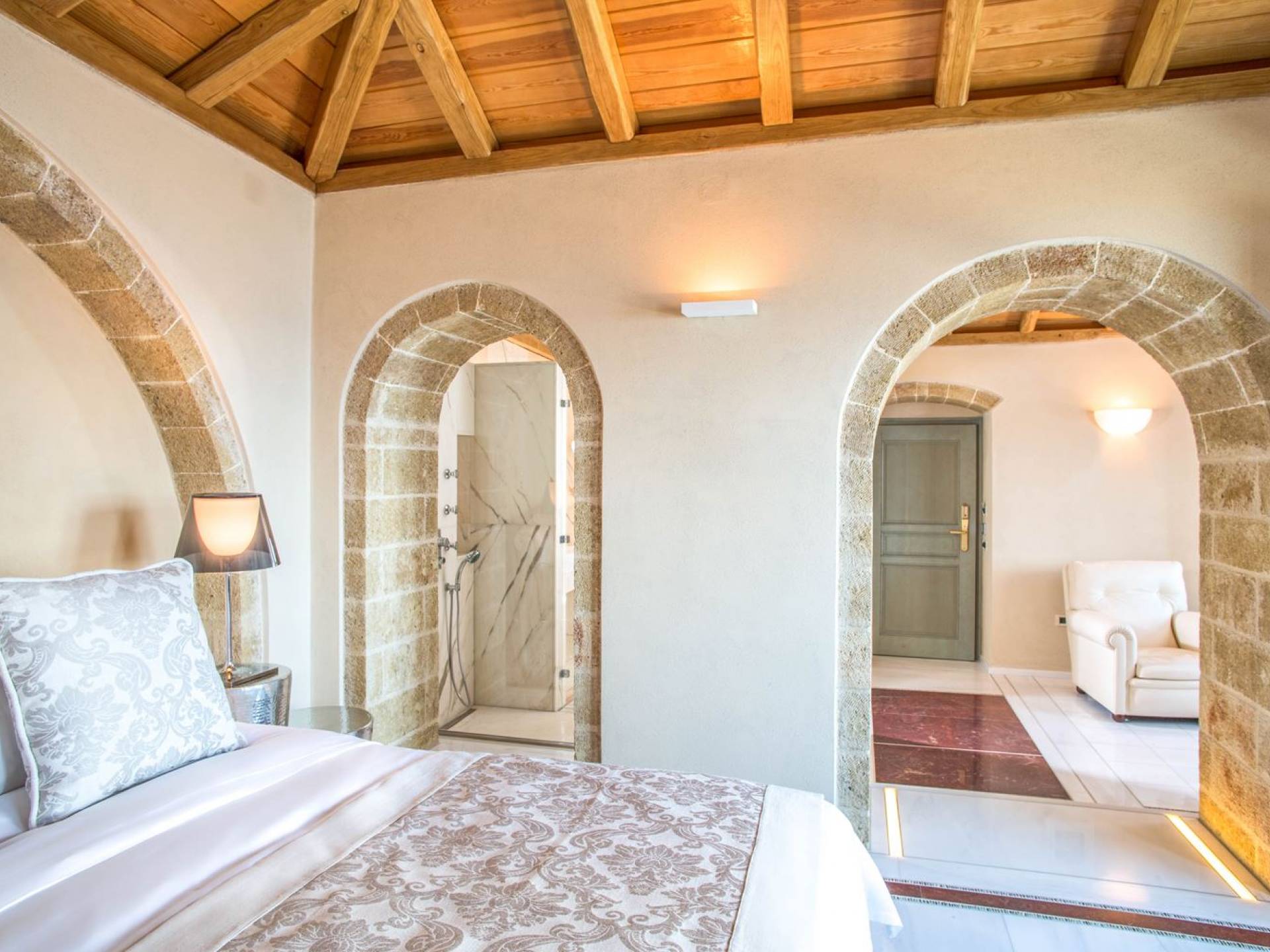 Le décor est planté dans la Suite Deluxe où l'on incarne tout ce qui est luxueux dans deux espaces distincts, la somptueuse chambre et le salon, mariant l'artisanat traditionnel à un design intérieur haut de gamme, comme celui de Philippe Starck et de Frau Poltrone '. Le confort est le nom du jeu dans cette suite en marbre blanc exquise et magnifique. Le bureau antique donne cette note supplémentaire de luxe. Passez les heures devant la cheminée confortable une nuit d'hiver ou profitez simplement d'un dîner d'été romantique pour deux sur votre balcon privé tout en profitant de la splendide vue imprenable sur la mer de Mirtoo devant vous.
