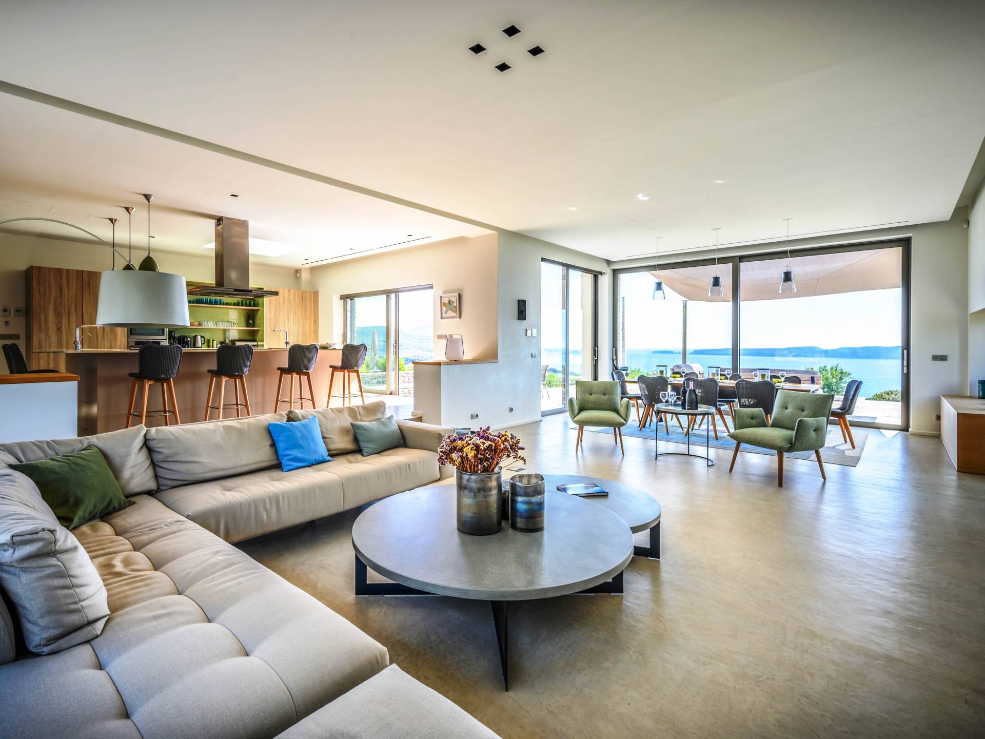 Kalithea Luxury Villa est située dans le sud-ouest du Péloponnèse, entre les villages de Pyla et Gialova, à environ 10 km du charmant port de Pylos. La villa a une vue splendide sur l'emblématique baie de Navarino. Chaque soir nous nous émerveillons à la vue du coucher de soleil, toujours exceptionnel et si différent à chaque fois. Ce luxueux havre de paix en pleine campagne a été construit il y a environ huit ans, au milieu d'une oliveraie d'un hectare.