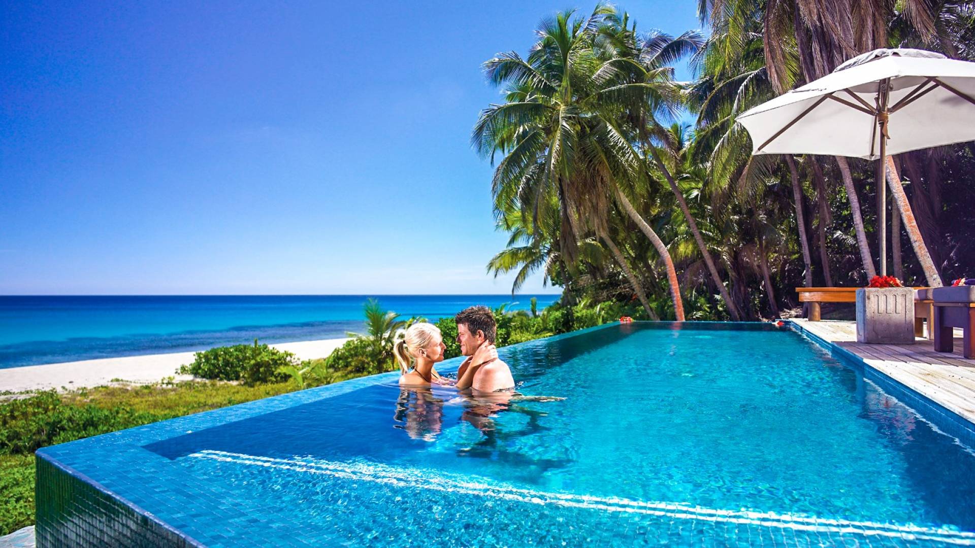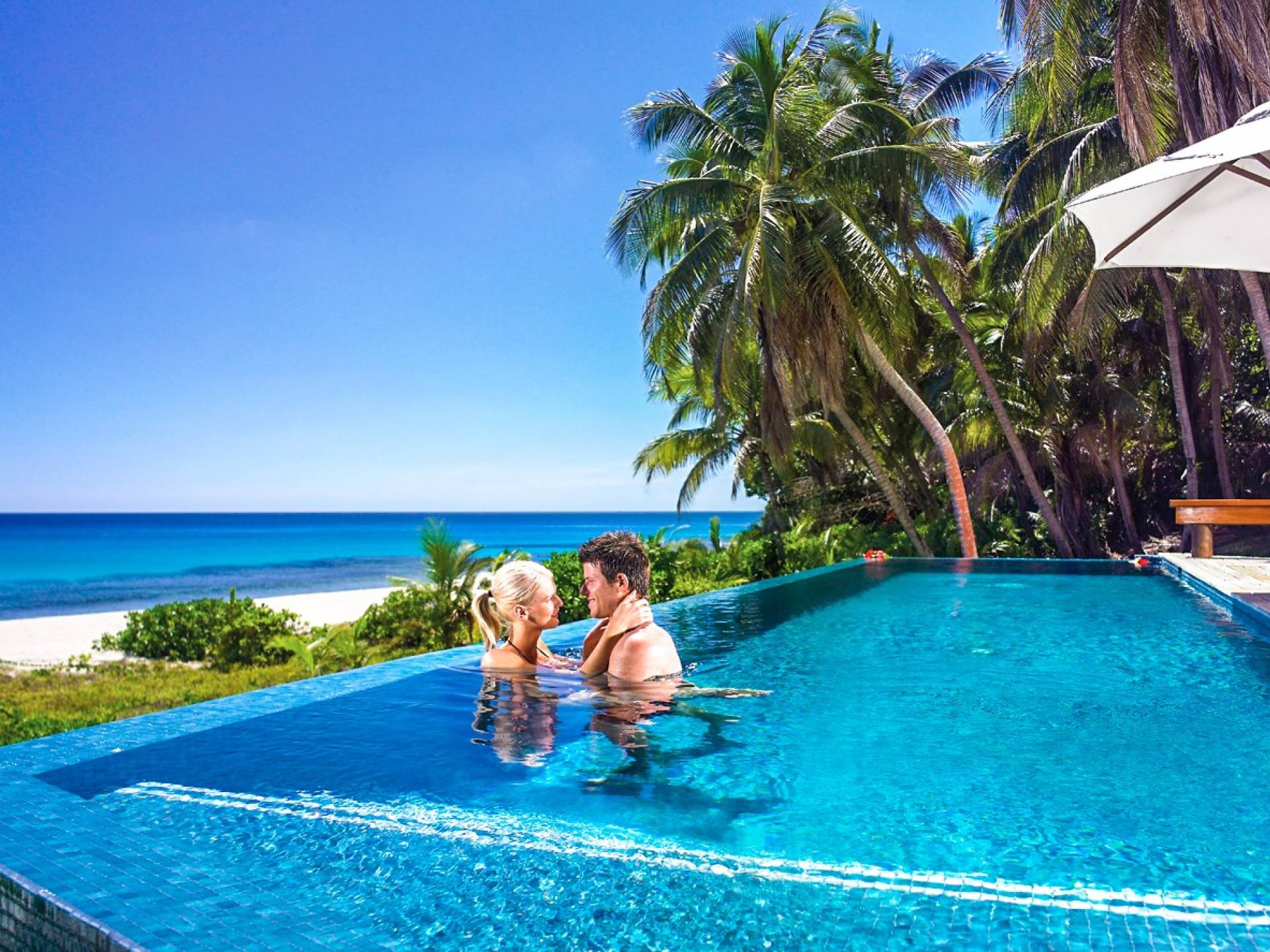 Caché du reste de la station balnéaire au bout d'une plage de sable blanc déserte, Honeymoon Bure Beachfront est une retraite privée avec sa propre piscine d'horizon surplombant l'océan. C'est Yasawa à son meilleur - le luxe absolu et l'isolement complet.