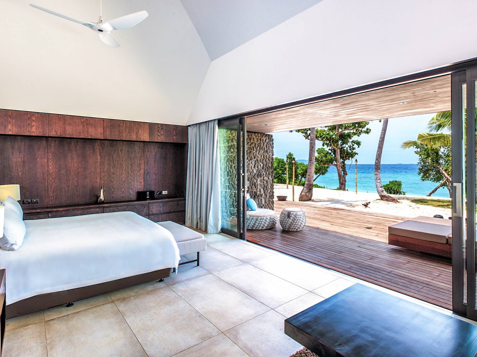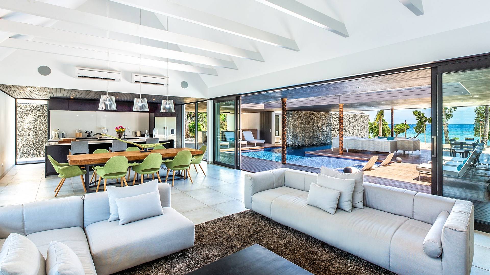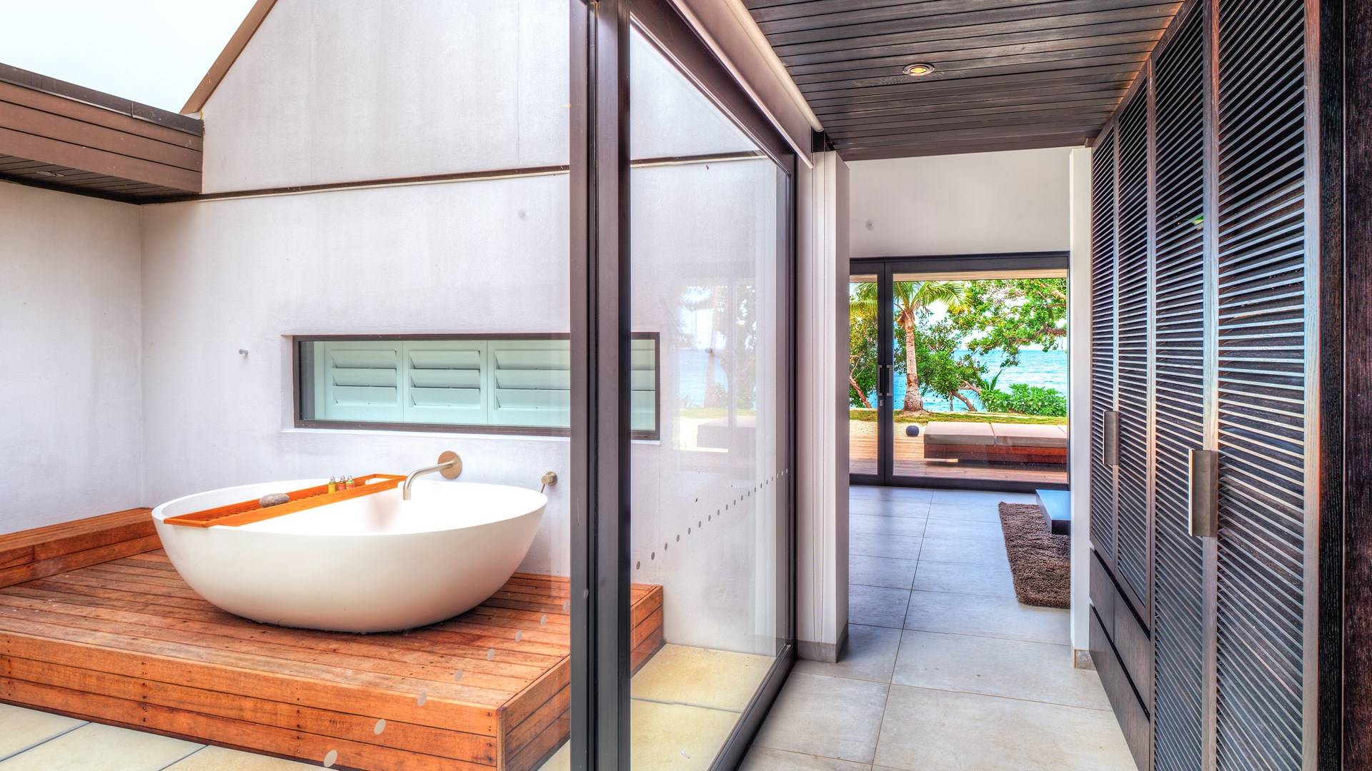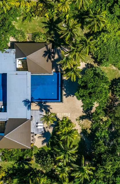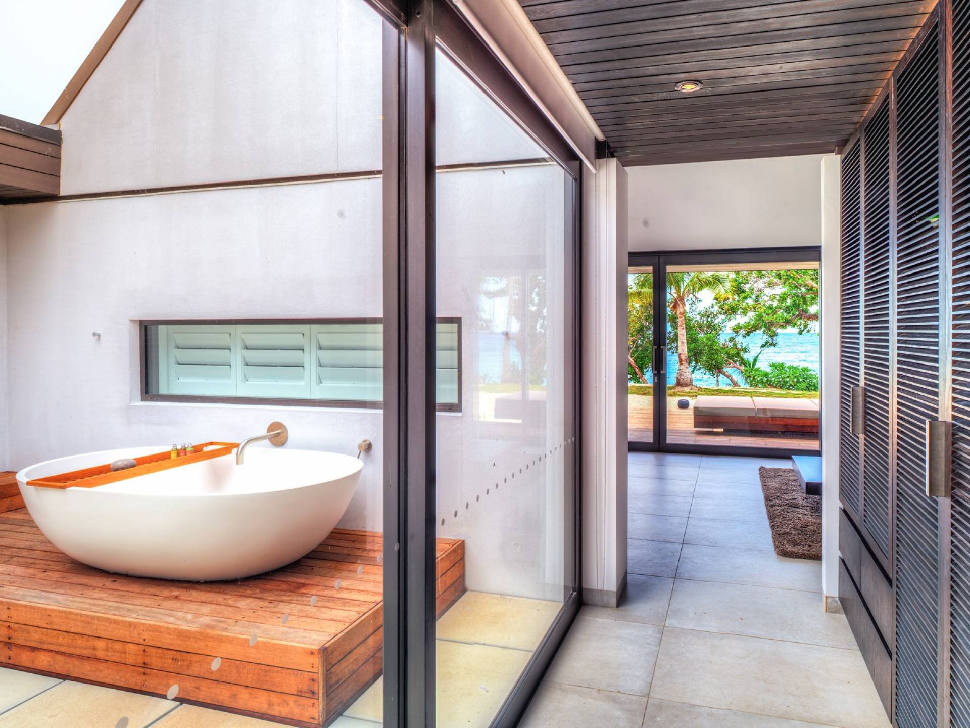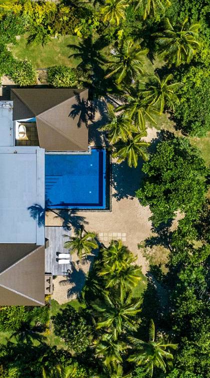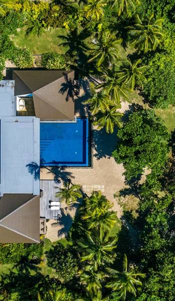 Quatre chambres sont élégamment conçues et trois des chambres surdimensionnées disposent d'un coin salon et de baignoires profondes et luxueuses dans la salle de bain extérieure. Chacune des 4 chambres a des lits king qui peuvent être reconfigurés en salles de bains attenantes simples et 5 étoiles. Deux des quatre chambres sont dans des pavillons séparés, tandis que la suite principale est reliée à la quatrième chambre sous le même toit - parfait pour les familles. La grande piscine en forme de U est partiellement couverte vous permettant de vous baigner dans ou hors du soleil fidjien. Magnifiquement aménagé avec un mobilier sur mesure spécialement conçu pour The Palms, vous êtes immergé dans un coin de paradis vraiment unique.