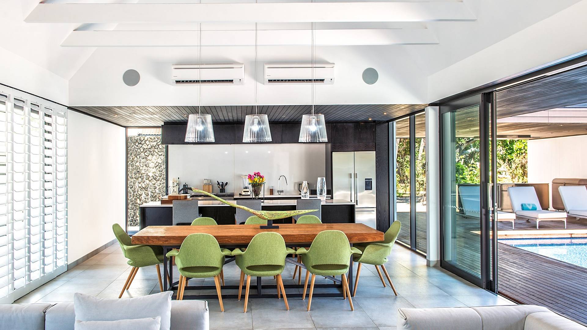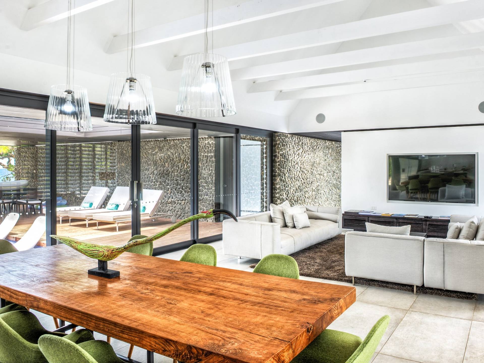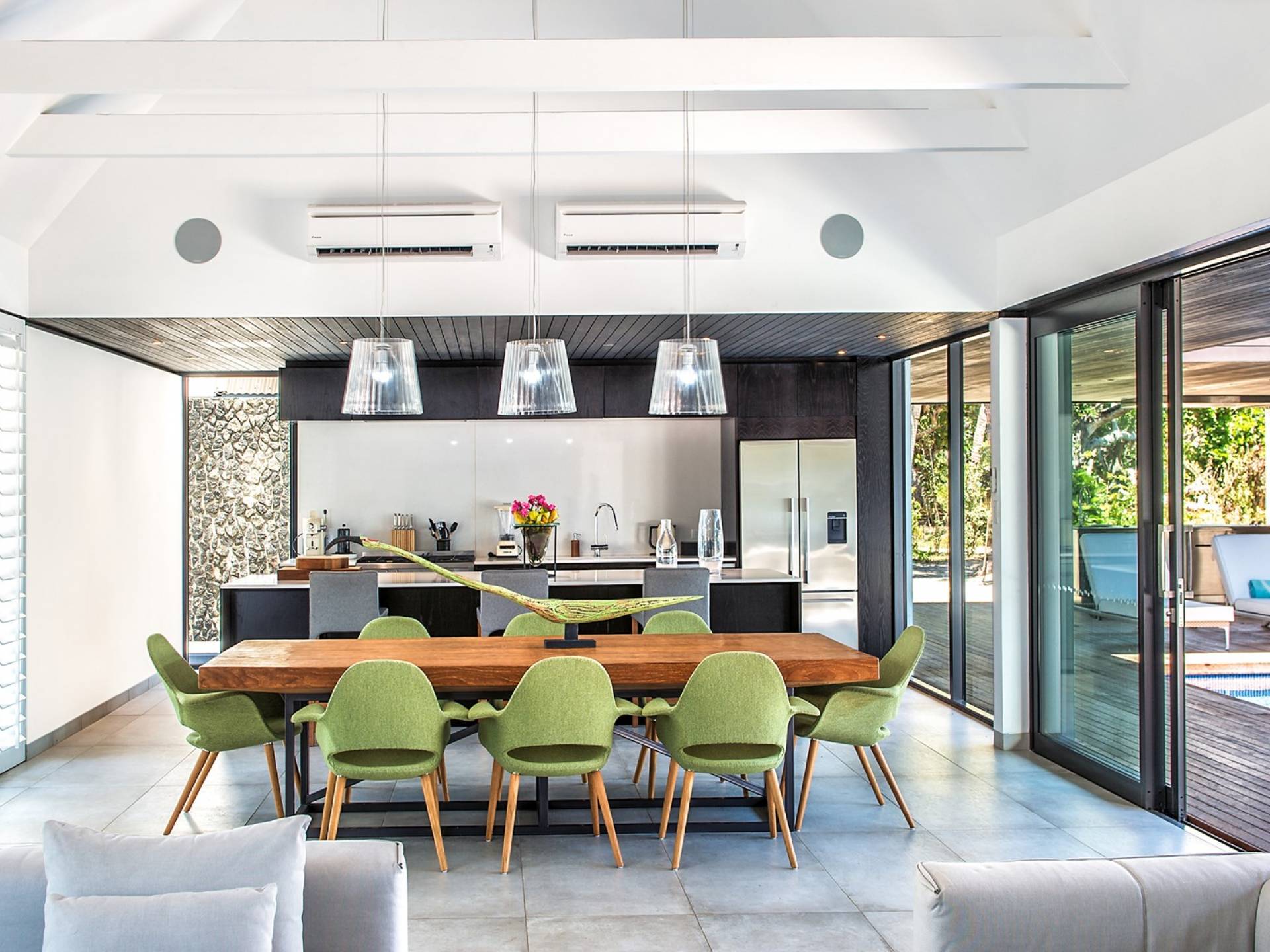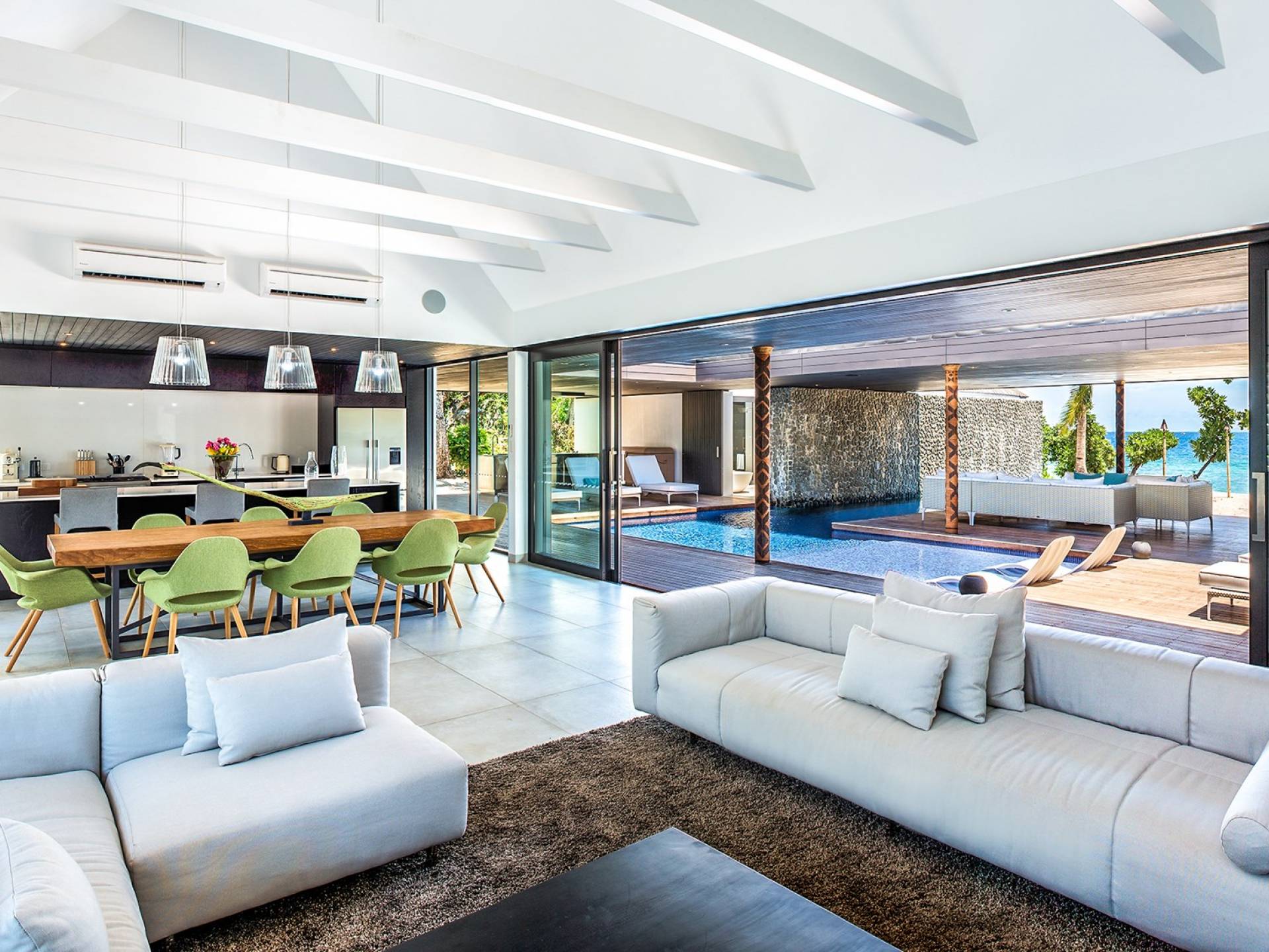 Quatre chambres sont élégamment conçues et trois des chambres surdimensionnées disposent d'un coin salon et de baignoires profondes et luxueuses dans la salle de bain extérieure. Chacune des 4 chambres a des lits king qui peuvent être reconfigurés en salles de bains attenantes simples et 5 étoiles. Deux des quatre chambres sont dans des pavillons séparés, tandis que la suite principale est reliée à la quatrième chambre sous le même toit - parfait pour les familles. La grande piscine en forme de U est partiellement couverte vous permettant de vous baigner dans ou hors du soleil fidjien. Magnifiquement aménagé avec un mobilier sur mesure spécialement conçu pour The Palms, vous êtes immergé dans un coin de paradis vraiment unique.
