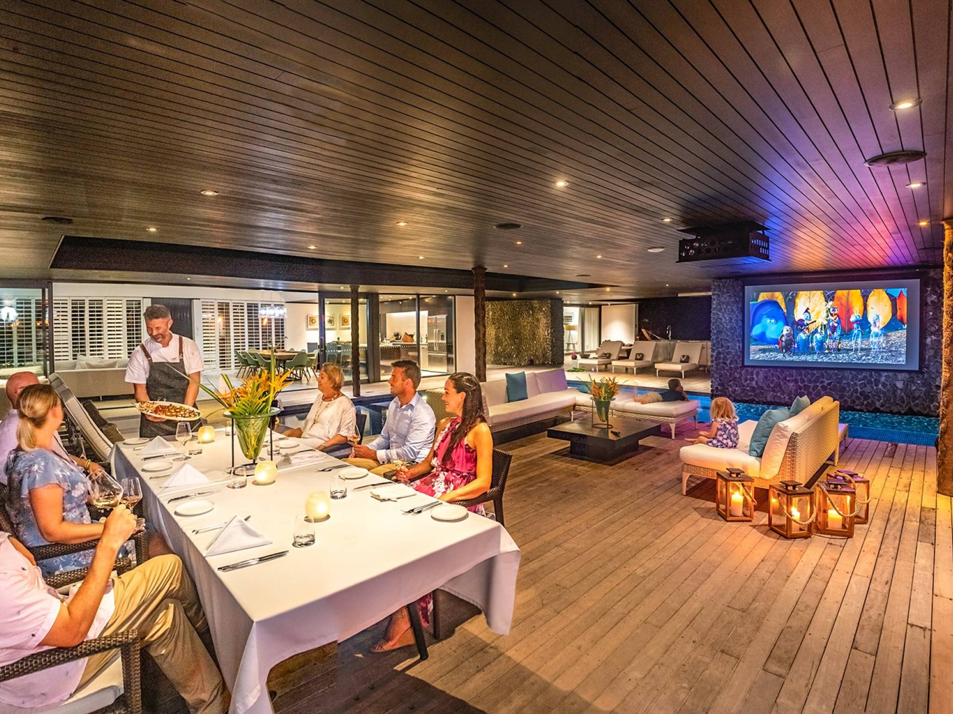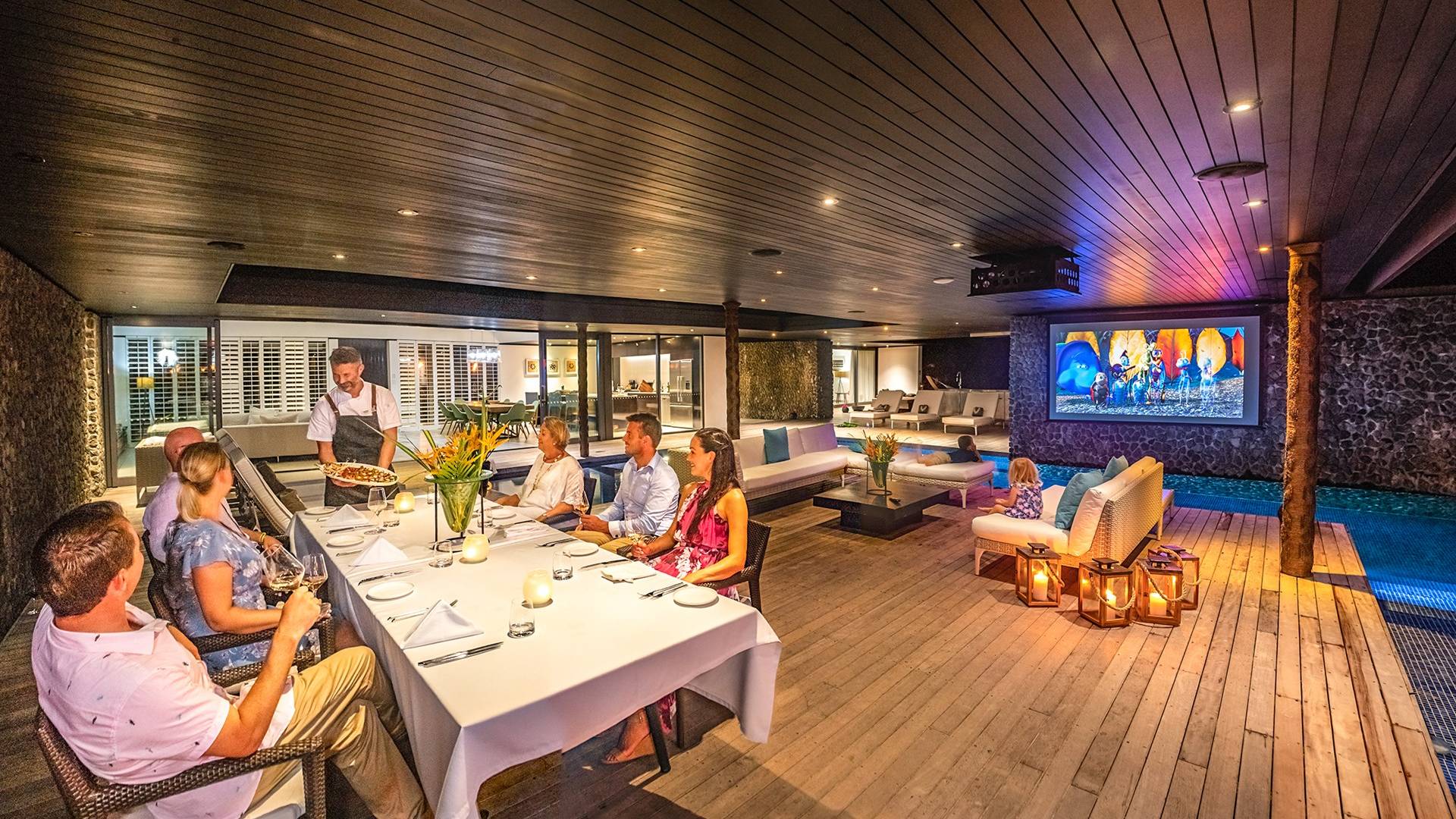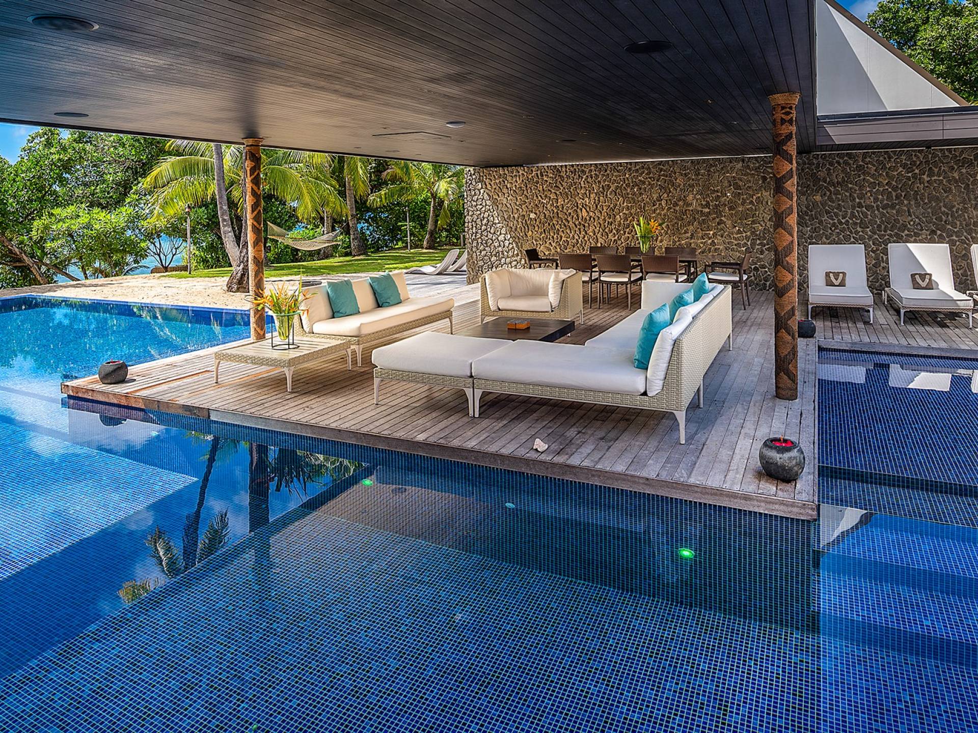 The Palms est la résidence contemporaine la plus moderne de VOMO, située sur la plage de Yasawa orientée au nord. Non seulement vous êtes sur une île entourée d'eau, mais à The Palms, vous êtes situé au milieu de piscines et de murs d'eau dans un espace somptueux qui est l'ultime résidence "live in - live out". Depuis la grande entrée porte-cochère, vous entrez dans le centre de la maison - les principaux espaces de vie, composés d'un salon décloisonné et d'une cuisine de service qui donnent sur la piscine en forme de U. Magnifiquement aménagé à chaque tournant, The Palms est de conception très contemporaine avec une abondance d'espaces ouverts et comprend des systèmes audio-visuels Bose à la pointe de la technologie.