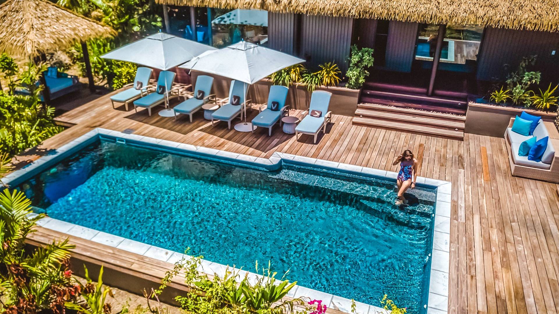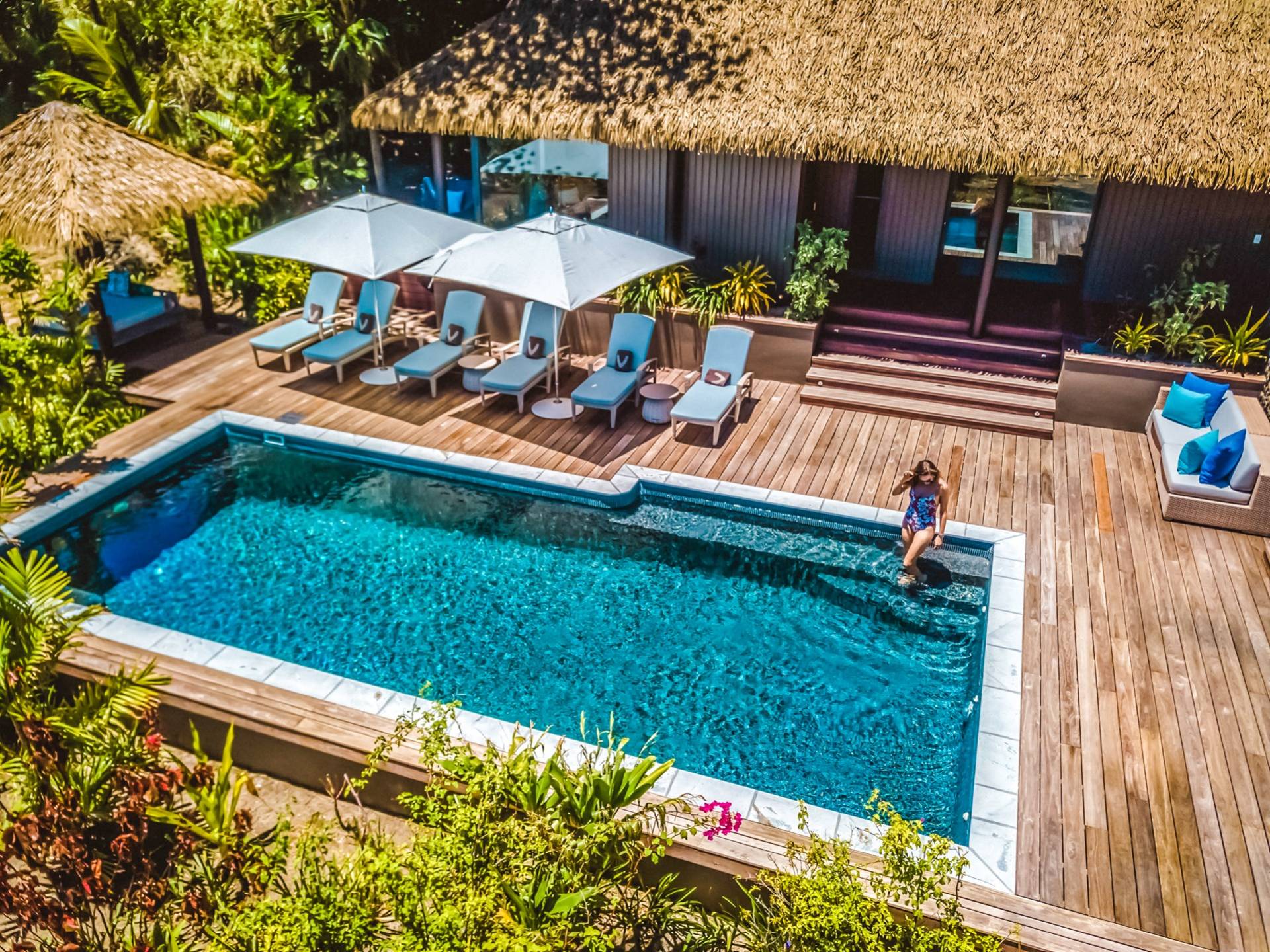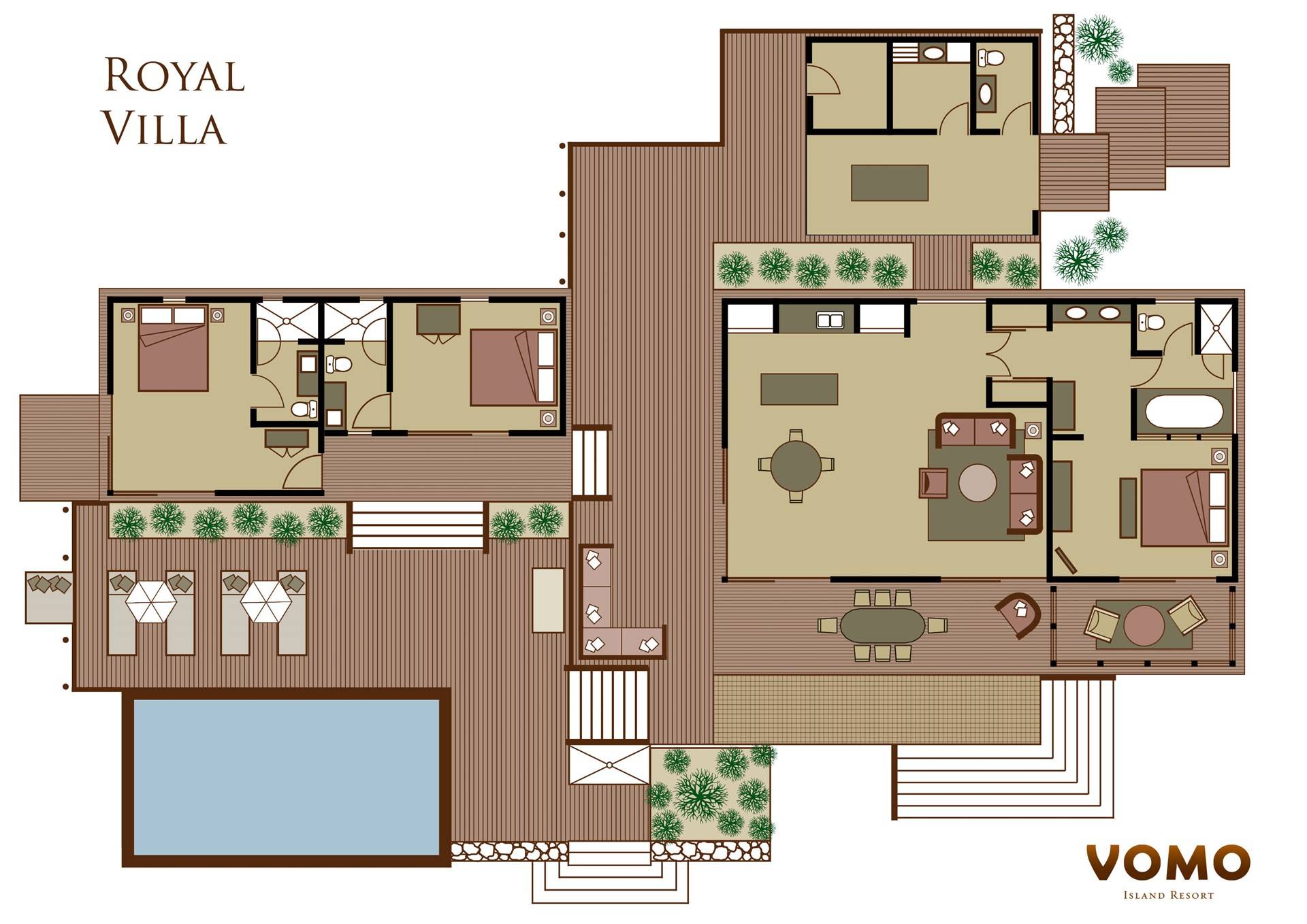 Dans un emplacement absolu en bord de mer au milieu de jardins tropicaux, le Royal dispose d'une piscine, de chaises longues et de parasols, ainsi que d'une cabane couverte avec un matelas double. C'est le summum de la vie dans le Pacifique avec toutes les installations de VOMO à portée de main, y compris tous les repas inclus dans les restaurants du complexe pour les 6 invités.