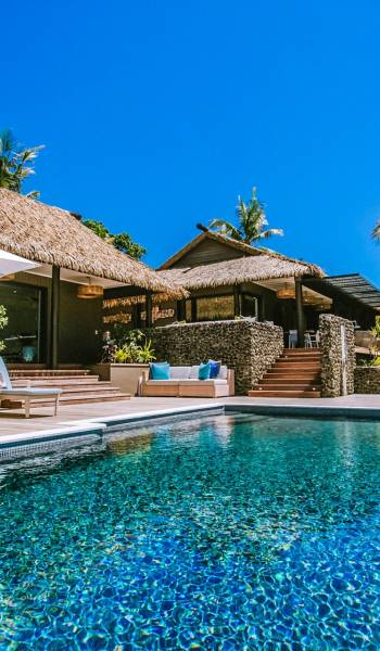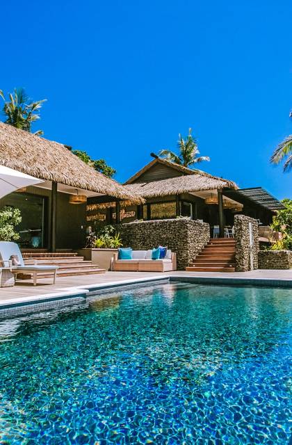 La Villa Royale est une oasis privée de vie fidjienne élégante, située sur le front de mer dans une position isolée. Bien qu'incluant tous les repas, le Royal dispose d'une cuisine ouverte complète et d'une salle à manger, d'espaces de divertissement et de salon en plein air et de 3 chambres avec salle de bains, réparties sur deux pavillons. Chacune des chambres king a sa propre salle de bains privée. La suite principale dispose d'une vaste salle de bain avec une baignoire et une douche séparées et offre également un coin salon de détente, l'endroit idéal pour se blottir avec un bon livre.