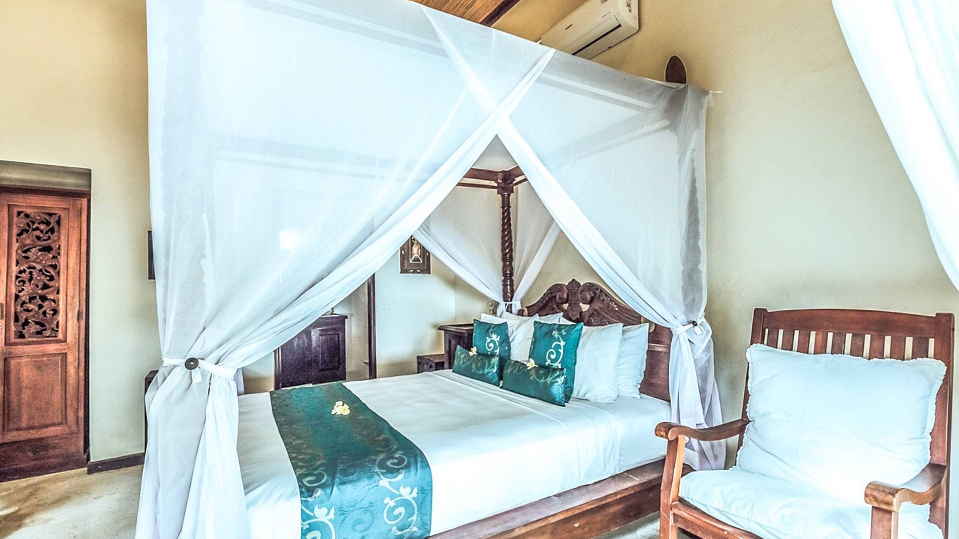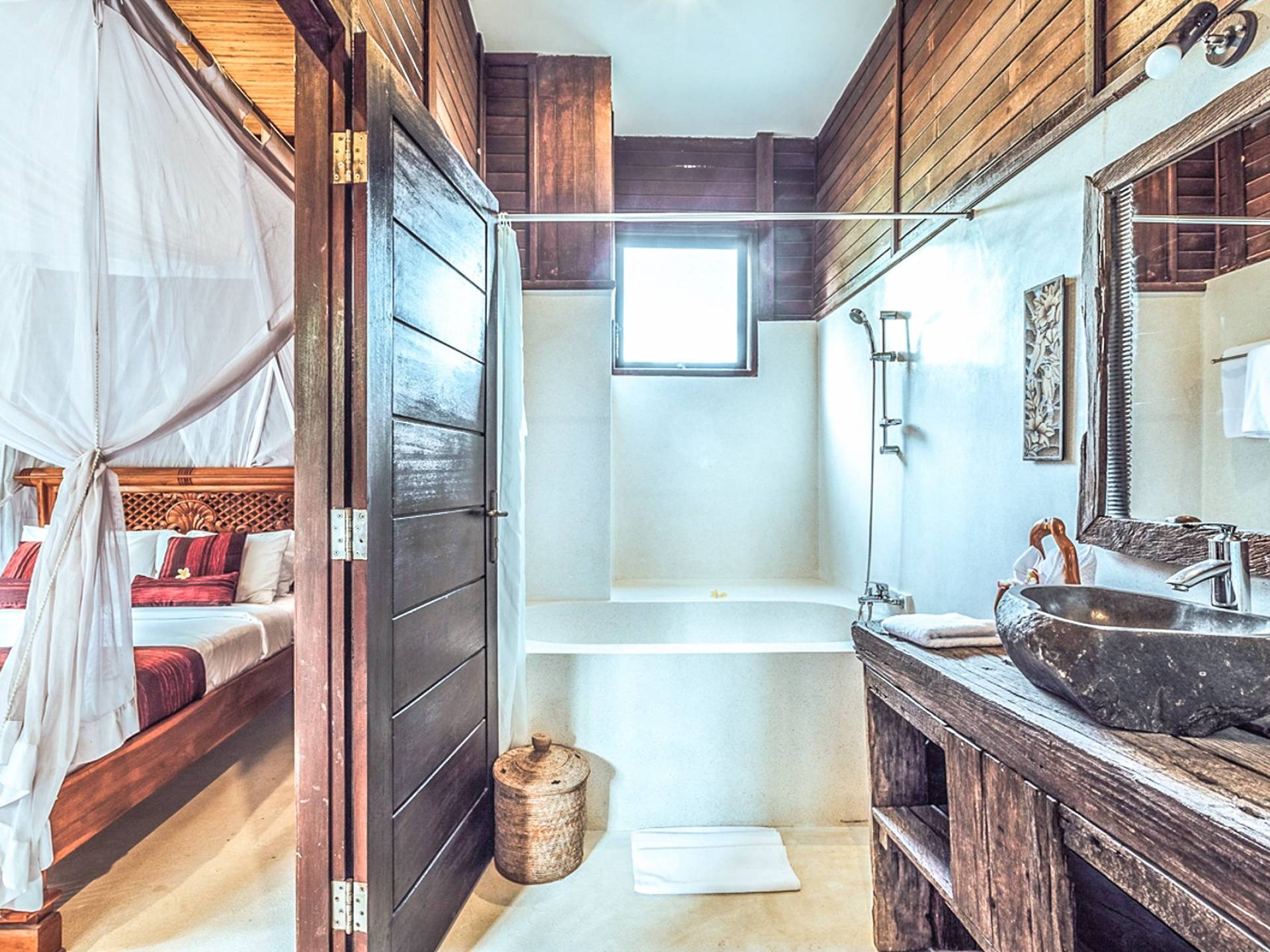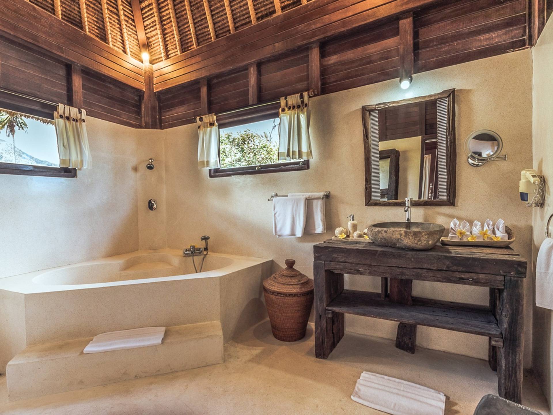 Il possède également sa propre plage et un mini zoo avec des animaux exotiques. Il propose des piscines extérieures donnant sur l'océan Indien, un complexe de spa, un salon, une connexion Wi-Fi gratuite et un bar. Des villas étonnamment bien équipées sont décorées dans un style balinais moderne. Les terrasses offrent des vues pittoresques sur l'océan Indien et les paysages environnants. Vous pourrez explorer Bali en faisant une randonnée ou en faisant des excursions, en pratiquant le yoga, la plongée en apnée, la plongée et la pêche. Après une journée active, nos clients peuvent profiter d'un massage relaxant et visiter le sauna. Il est également possible d'engager des cuisiniers pour préparer les repas.