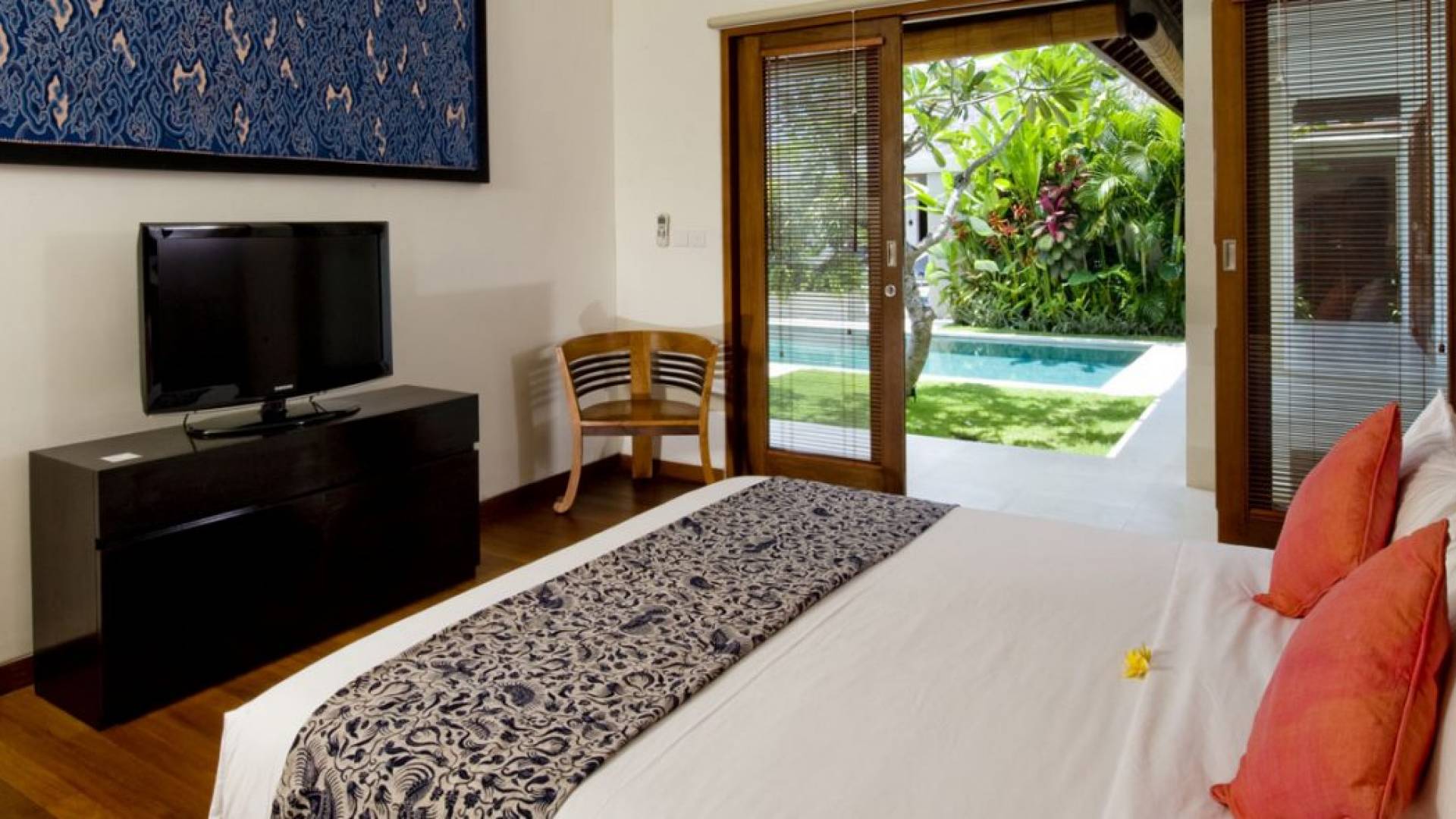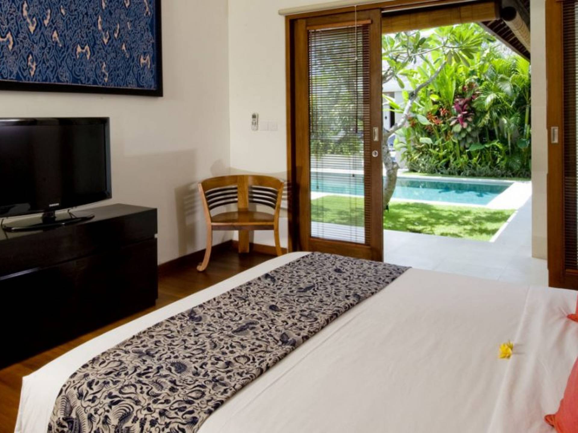 Un grand panneau mural coulissant à côté de la piscine sépare la Villa Nakula de la Villa Sadewa à deux chambres. Les clients qui réservent les deux villas peuvent demander au personnel d'ouvrir le panneau mural pour fournir un jardin commun avec deux piscines - idéal pour les groupes familiaux nécessitant quatre chambres et un espace pour que les enfants s'amusent.