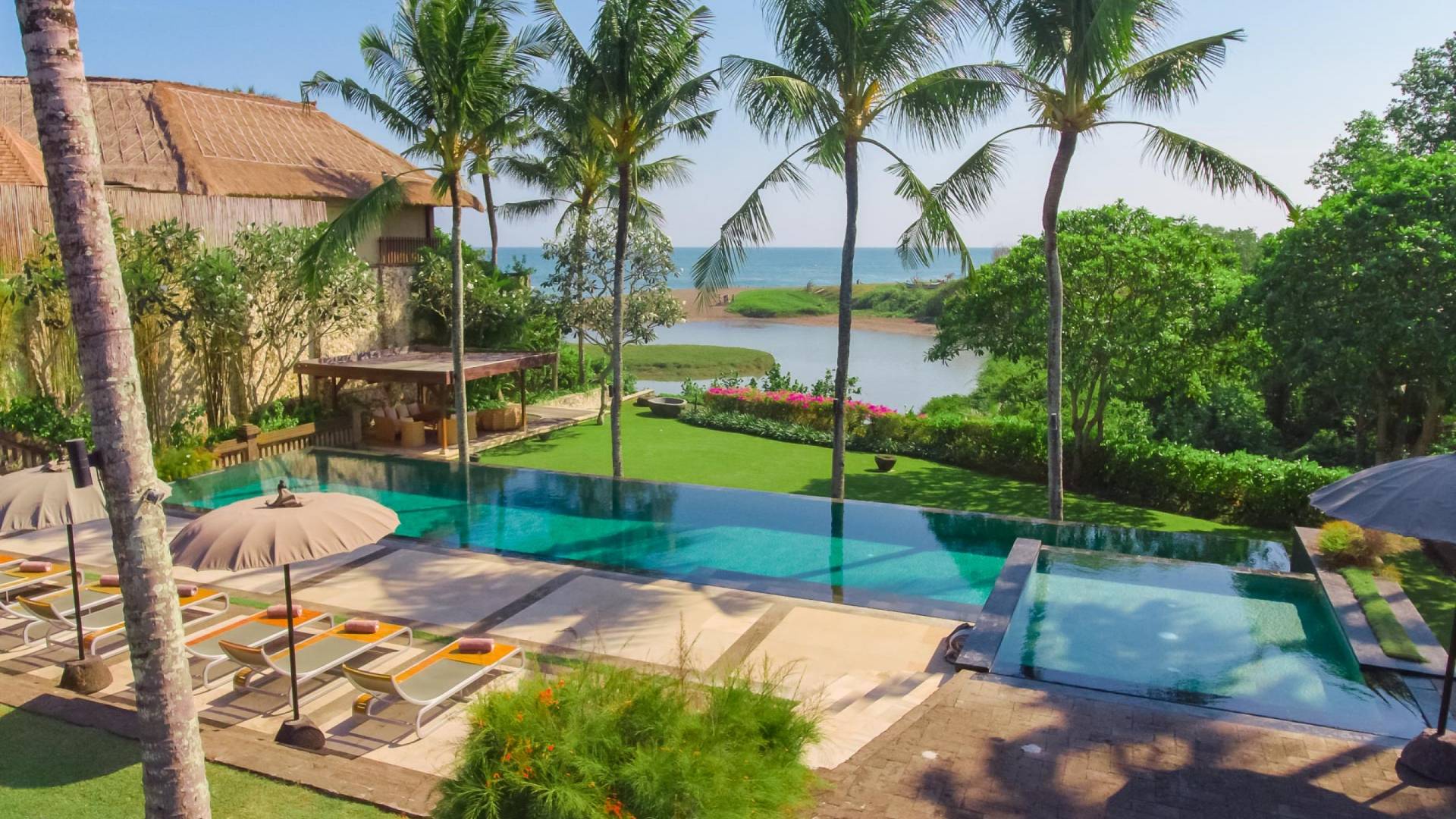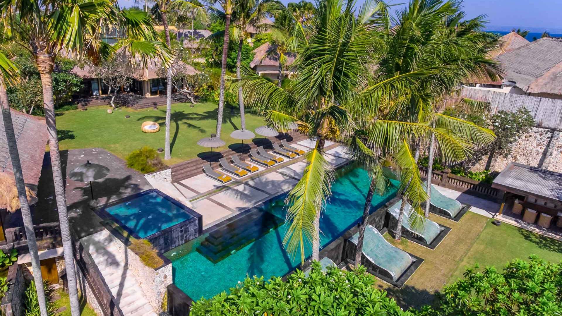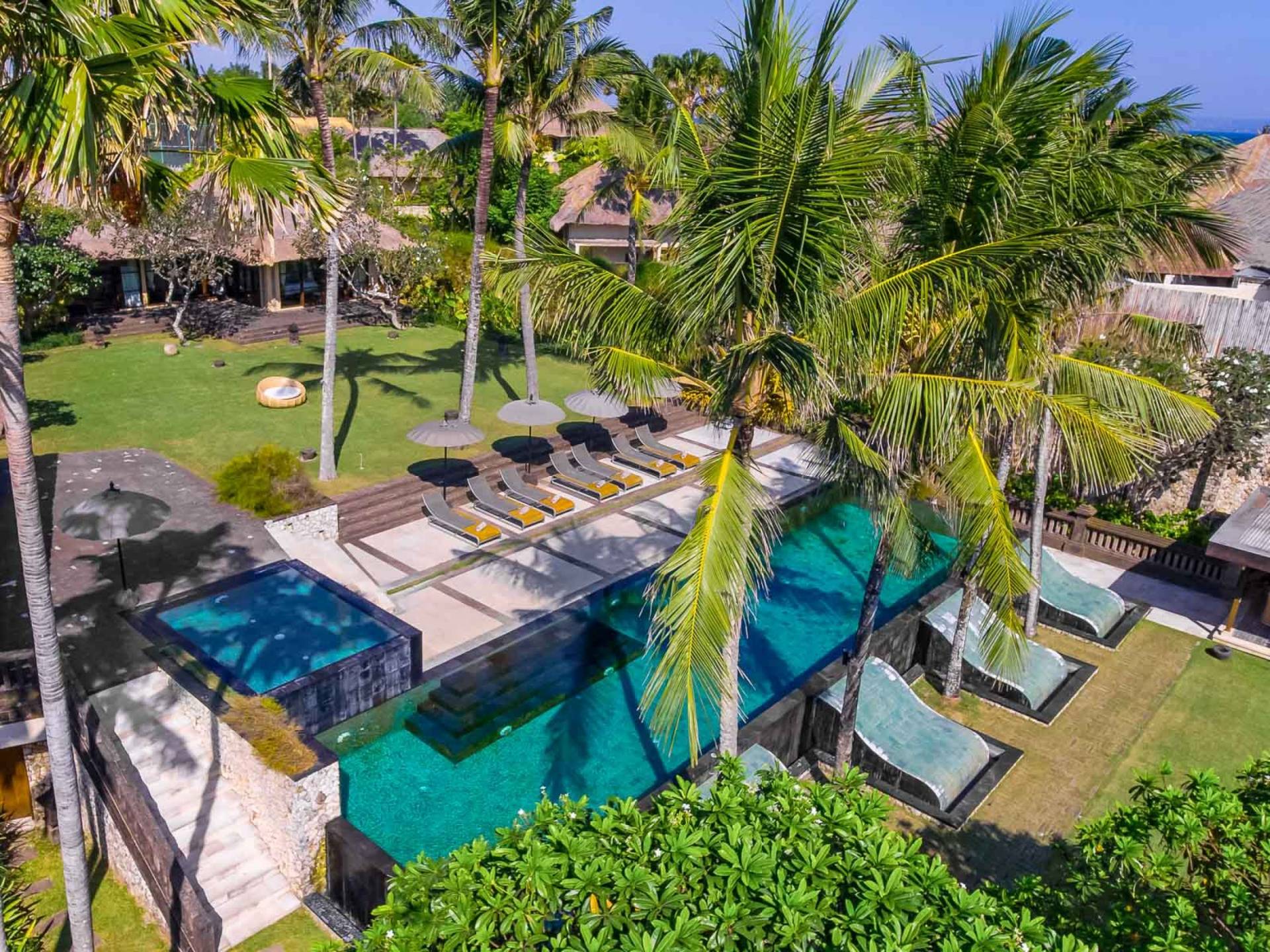 La Villa Mary Canggu comprend deux piscines au design très élégant - une piscine pour enfants de 10 m2 au bout d'une piscine à débordement de 20 mètres. Le tout dans un grand et vaste jardin tropical entouré de grands cocotiers surplombant l'océan. De plus, la terrasse de la piscine dispose de chaises longues et de lits de jour surdimensionnés, y compris une salle à manger extérieure et un jacuzzi