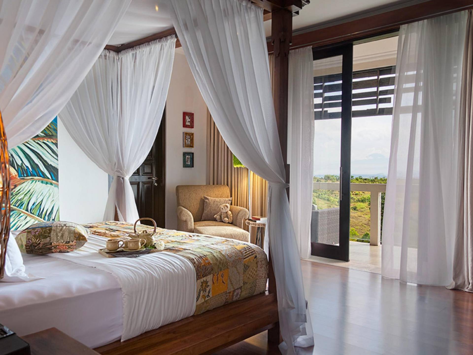 Architecture minimaliste et design tropical moderne, Sky House Villa Bali est une villa de luxe élégamment décorée, nichée dans les contours d'une colline pittoresque sur le point culminant de la péninsule de Bukit à Bali. Il est doté d'une vue grand angle exceptionnelle, qui s'étend jusqu'à l'horizon lointain, qui regorge de plages, de volcans imposants, d'îles au large et des riches plaines fertiles du sud de Bali. C'est comme être au sommet du monde.