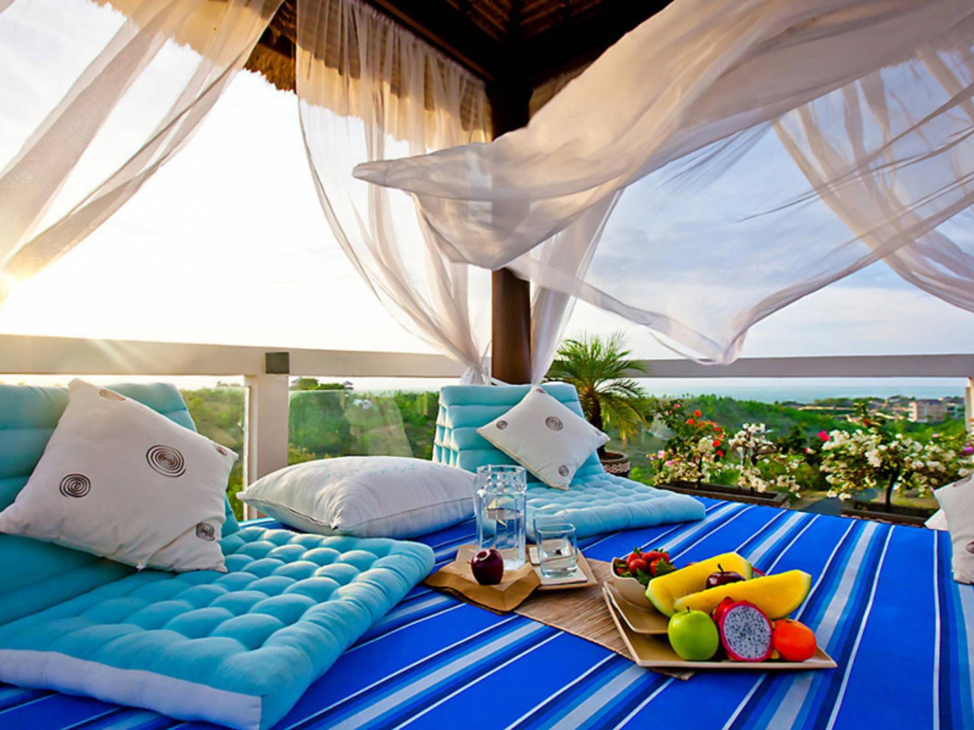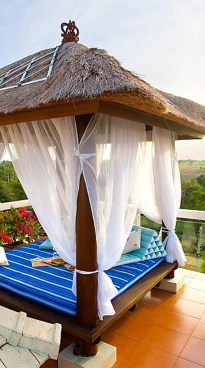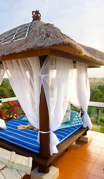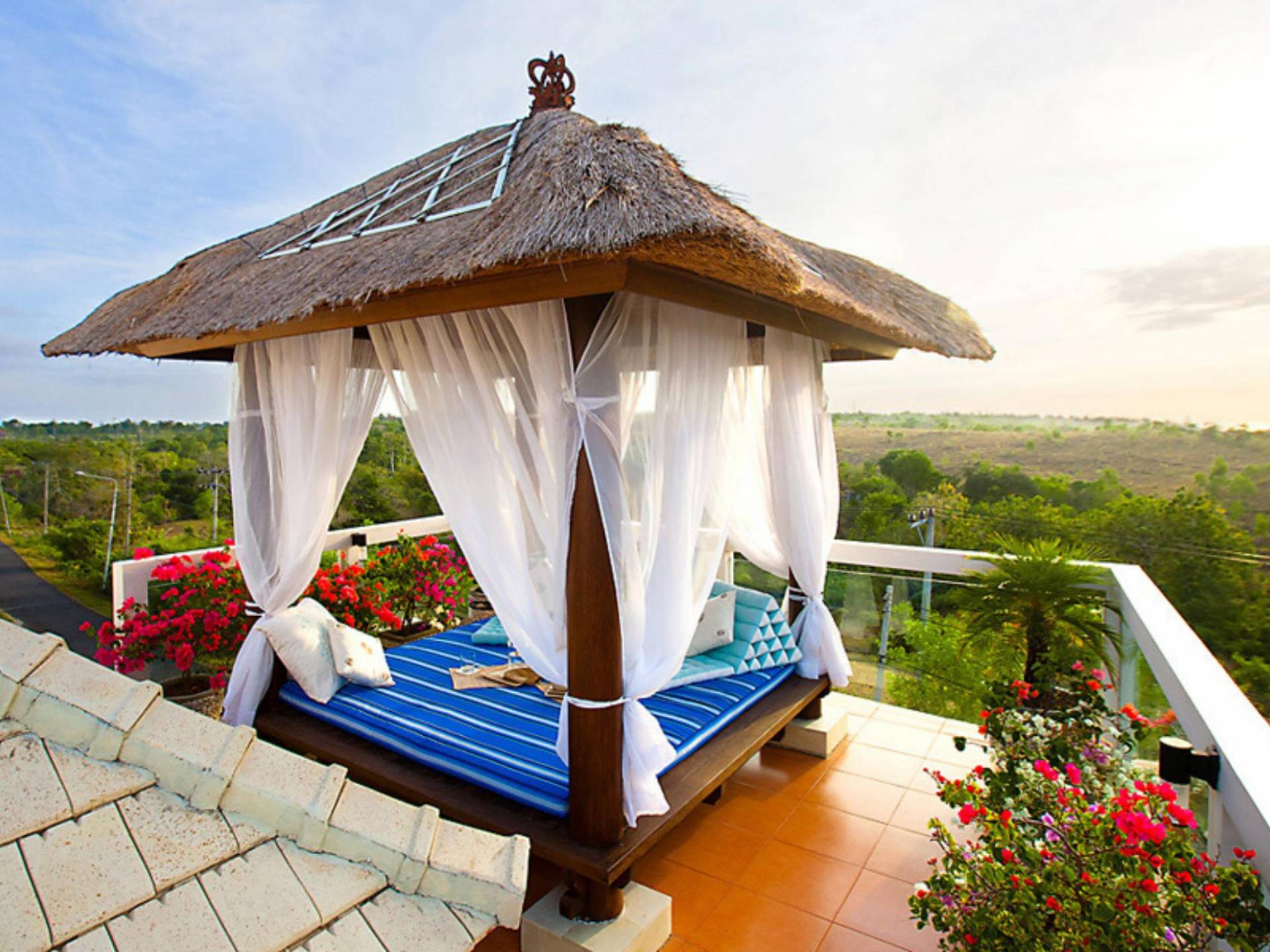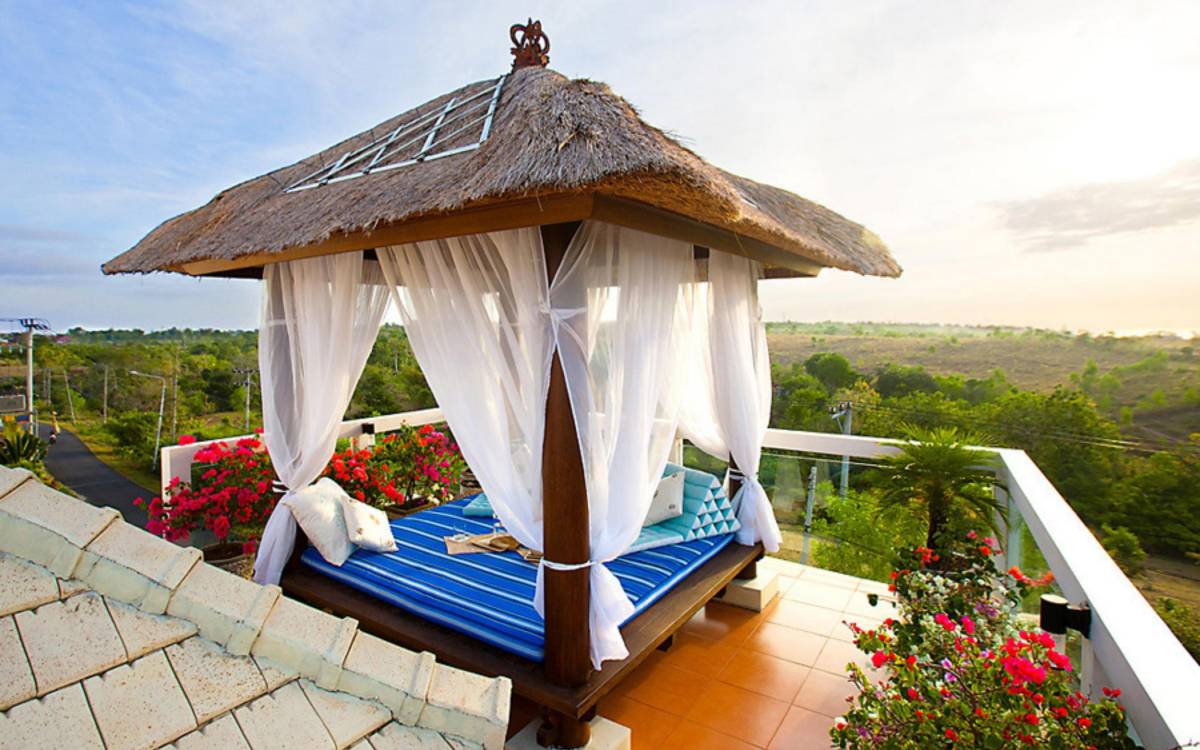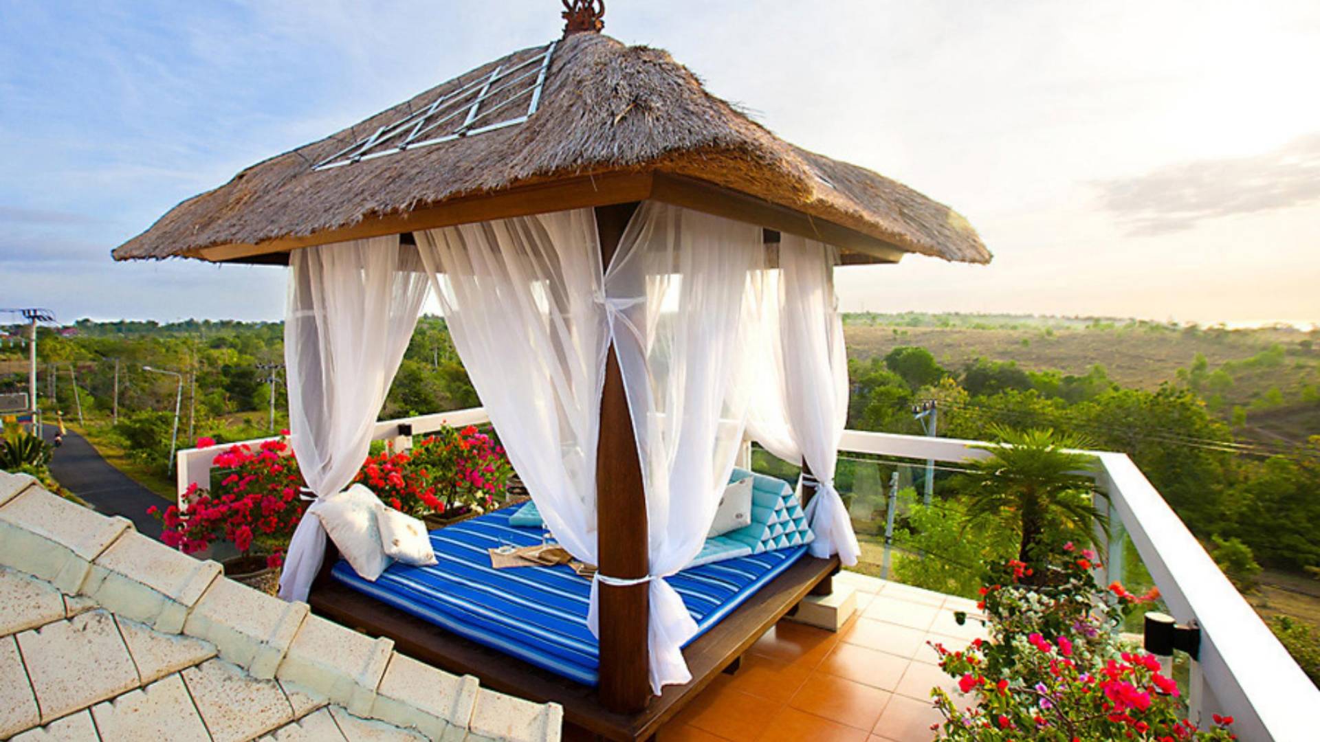 Après être entré dans la Sky House Villa Bali par une porte balinaise traditionnelle, vous serez charmé par les étangs remplis de carpes koï, les meubles confortables, la piscine de 10 mètres et la cuisine européenne entièrement équipée. Mais surtout, vous n'oublierez jamais la vue imprenable depuis la terrasse sur le toit Sky Lounge avec ses chaises berçantes et son gazebo de relaxation rembourré. Voici l'endroit idéal pour des séances de yoga matinales ou simplement pour bronzer. Le coucher du soleil est le moment de profiter d'un barbecue de fruits de mer sous le ciel balinais tout en étant rafraîchi par la brise de l'océan alors que la journée se termine et que l'île se glisse dans le calme d'une nuit tropicale.